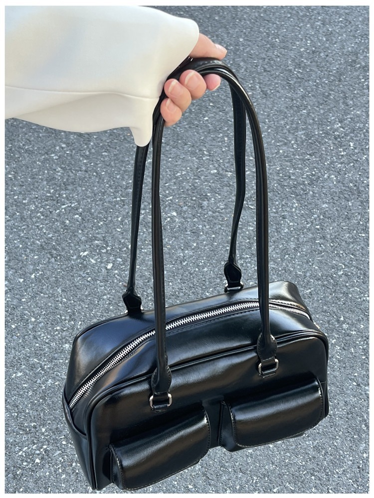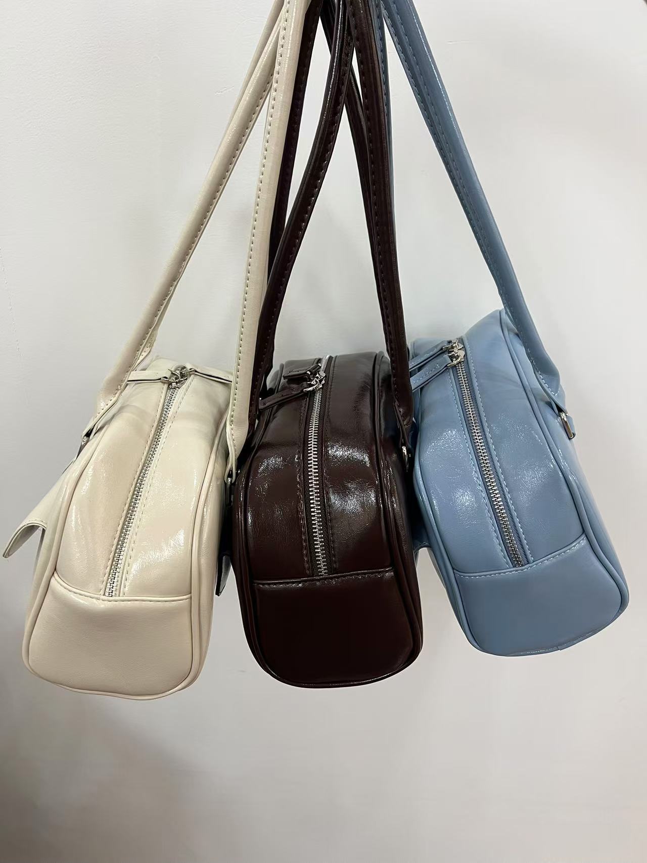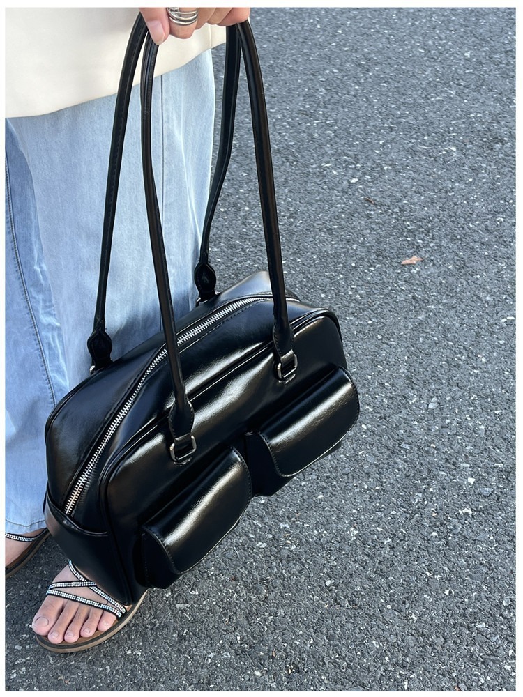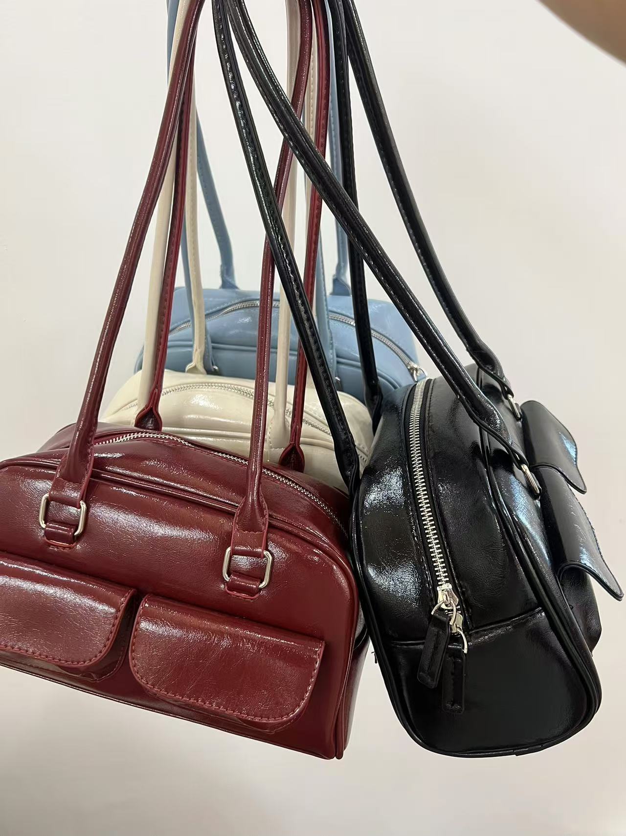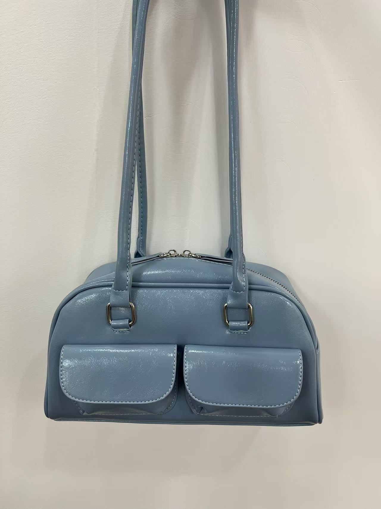 韩国晕针许允真同款油蜡皮保龄球包多口袋腋下包通勤手提单肩包包