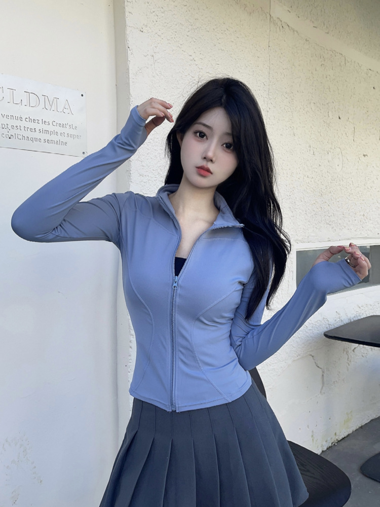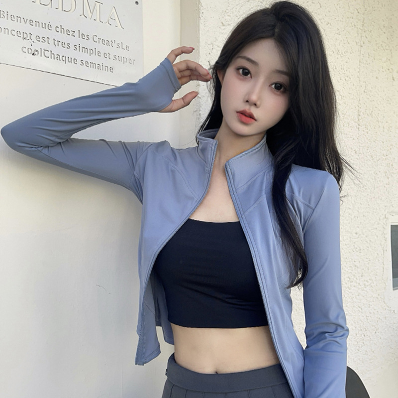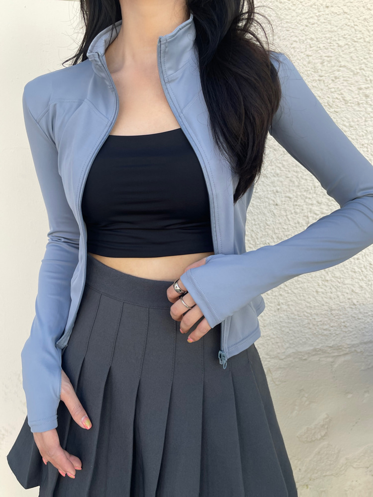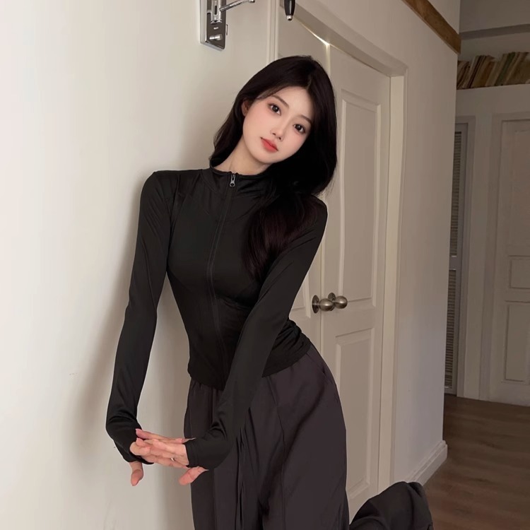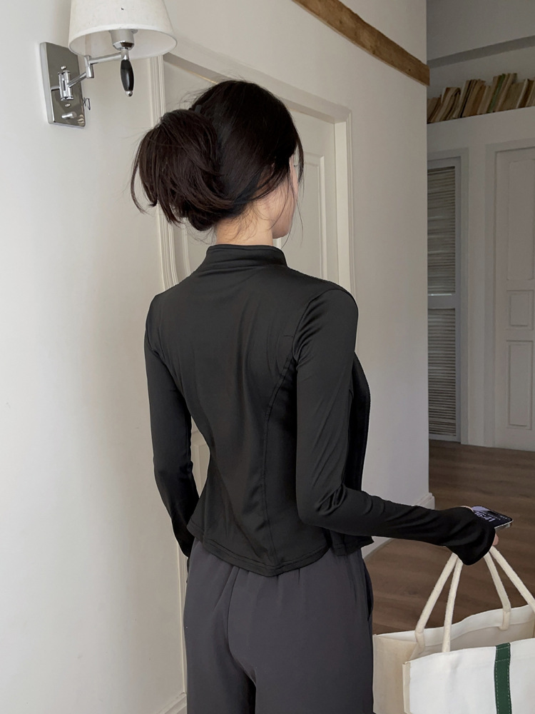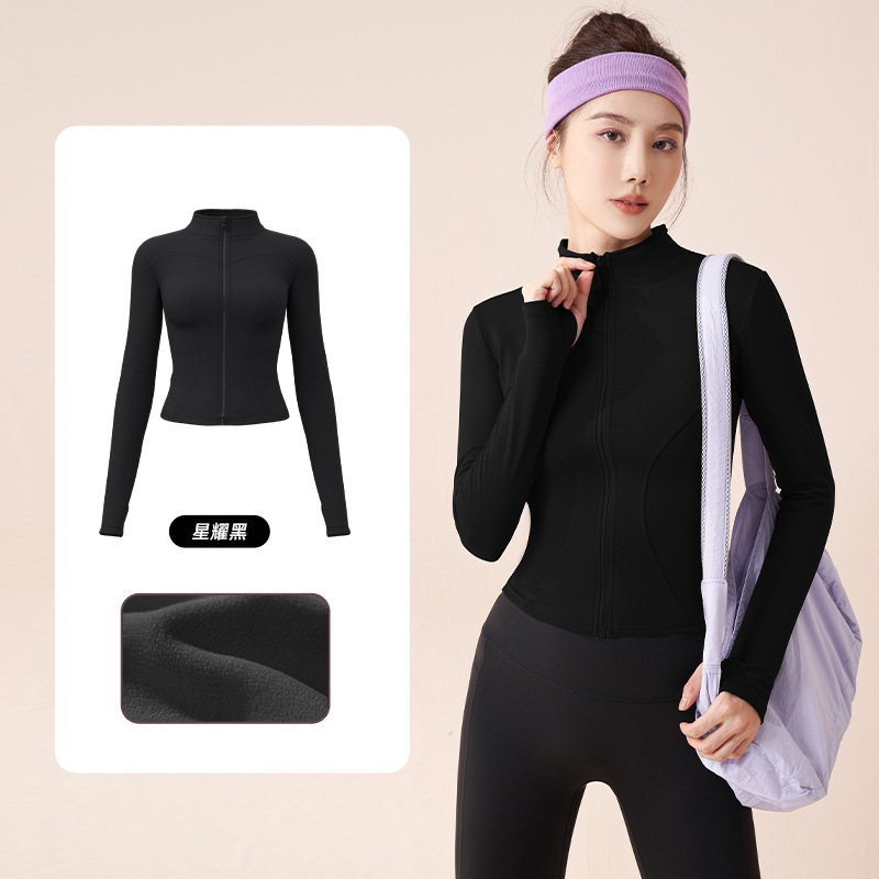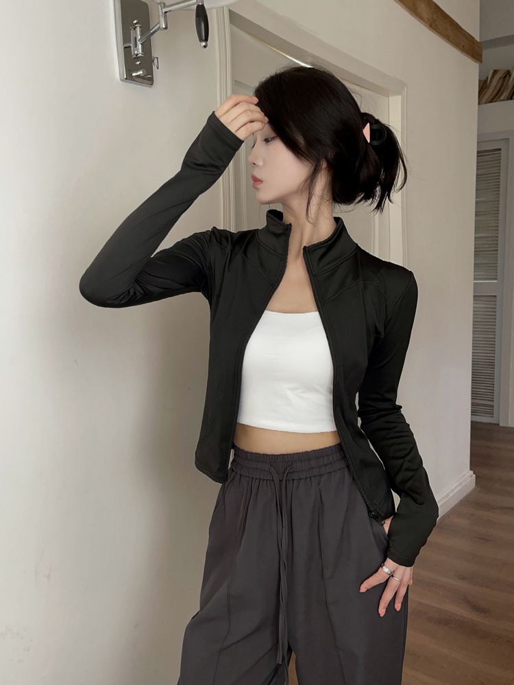 立领瑜伽服外套高弹紧身速干运动外套修身显瘦运动上衣跑步健身服