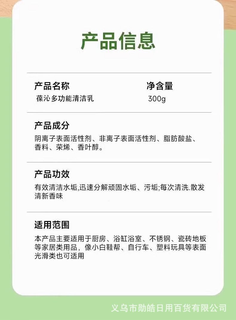 葆沁多功能清洁乳玻璃水垢浴室瓷砖深层污渍家用强力去污清洁剂