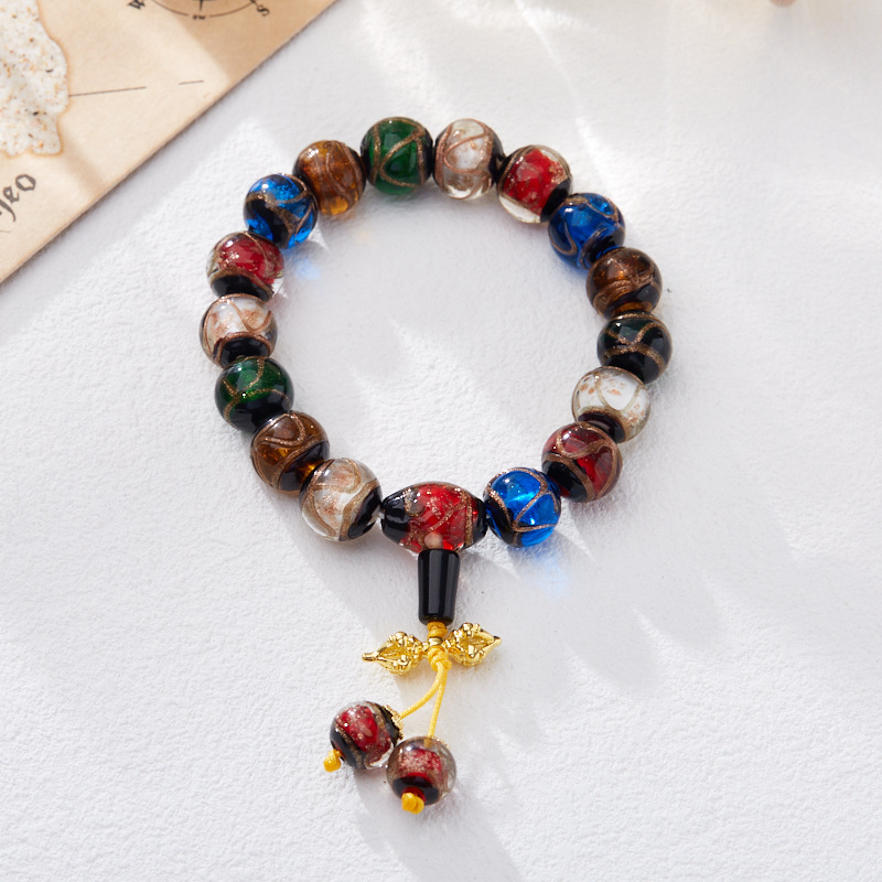 雍老秦同款香灰琉璃手串五彩香灰一家三口十全十美吞金兽宫廷手链