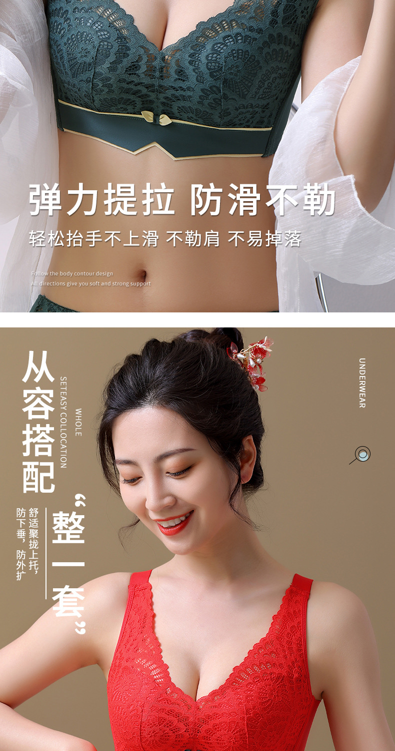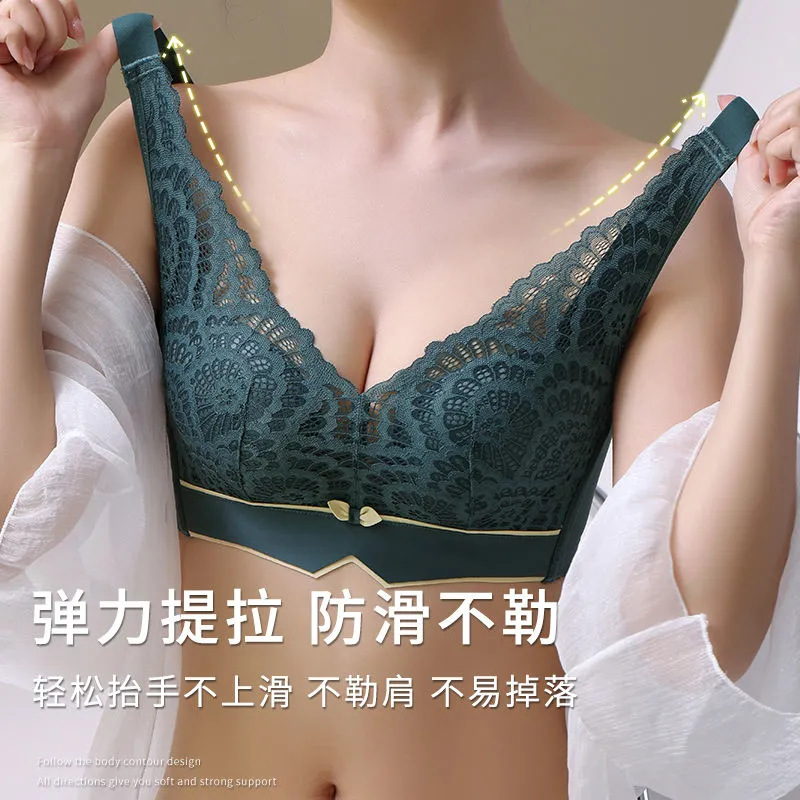 乳胶内衣女小胸聚拢上托防下垂矫正无钢圈收副乳调整型文胸罩套装