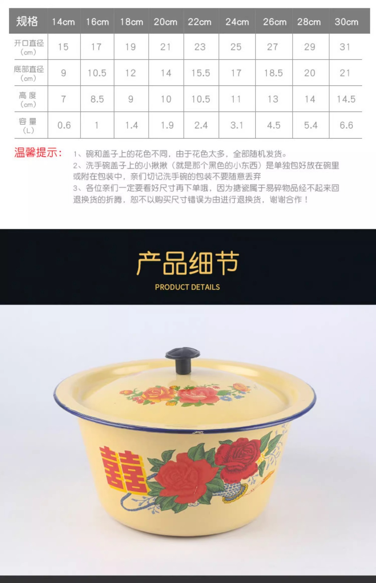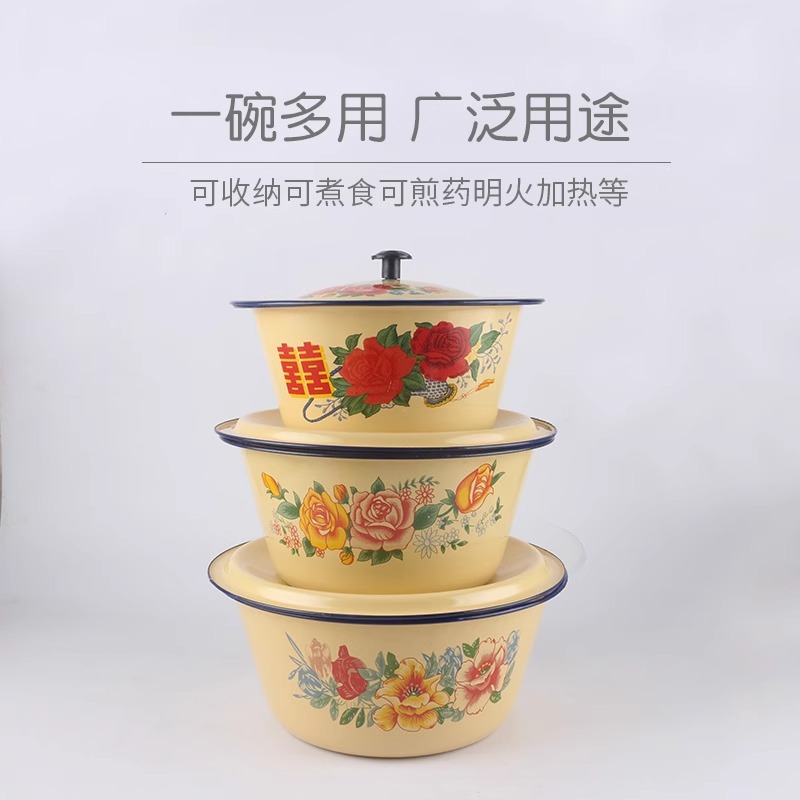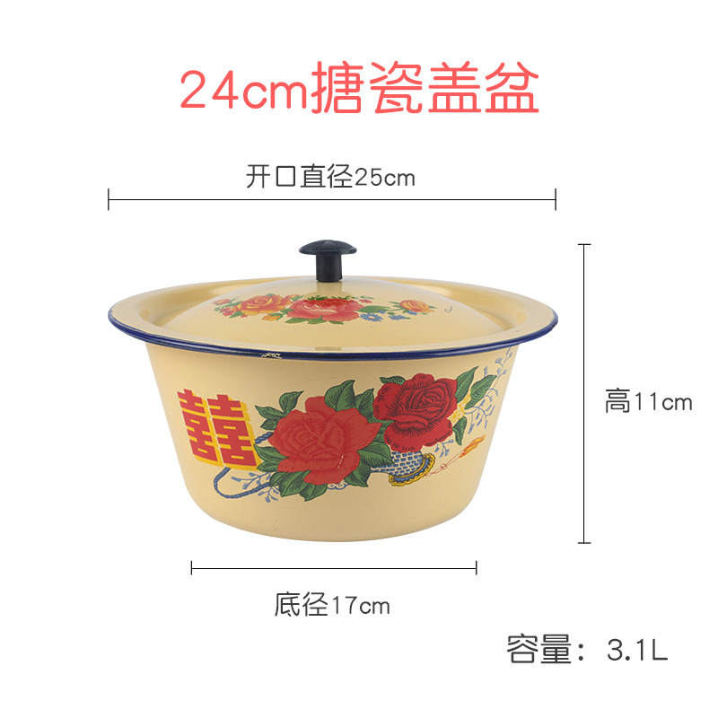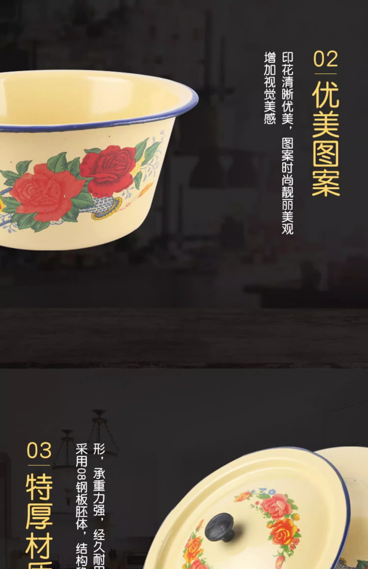 网红草莓蛋糕老式搪瓷盆猪油盆汤盖盆子家用厨房打蛋和面盆带盖