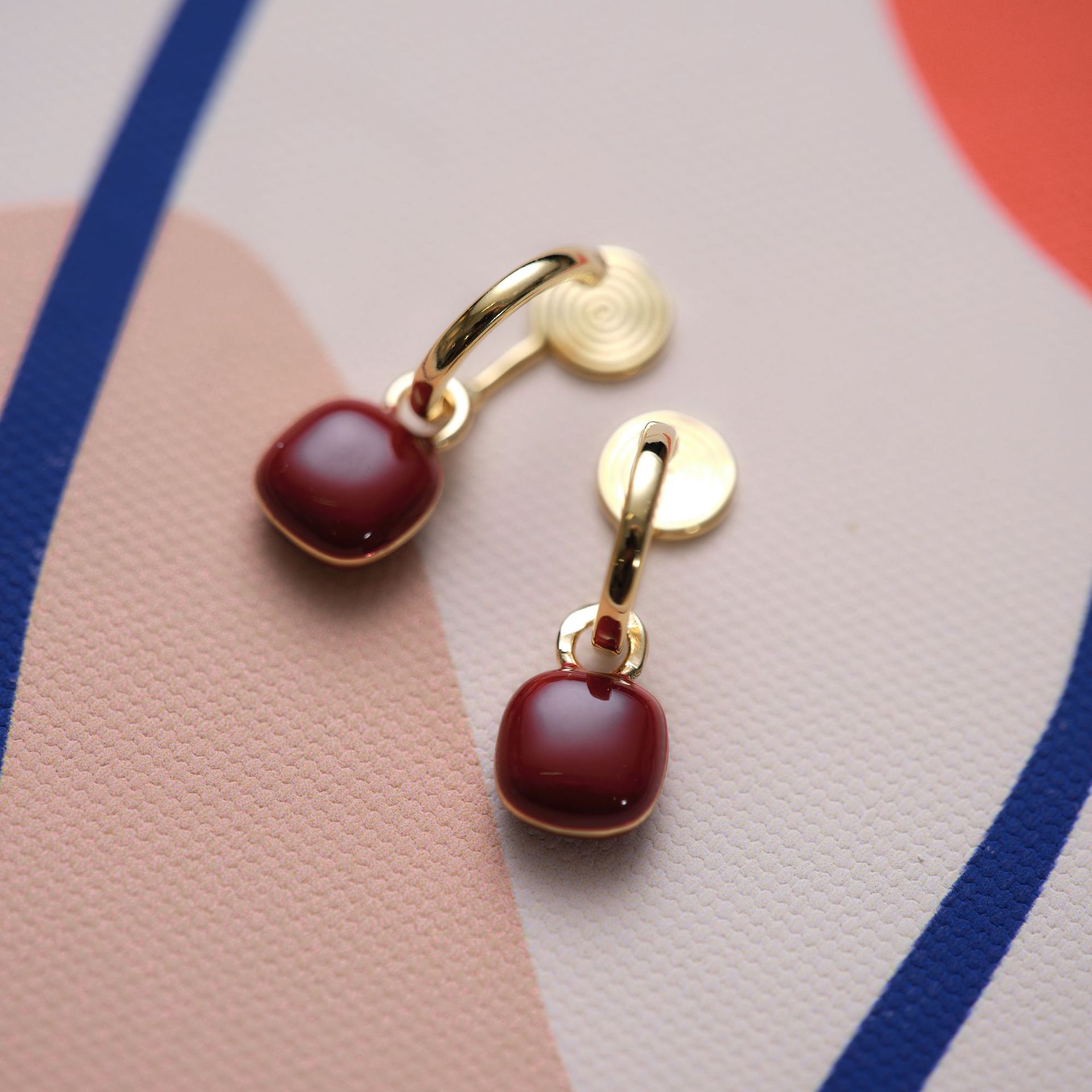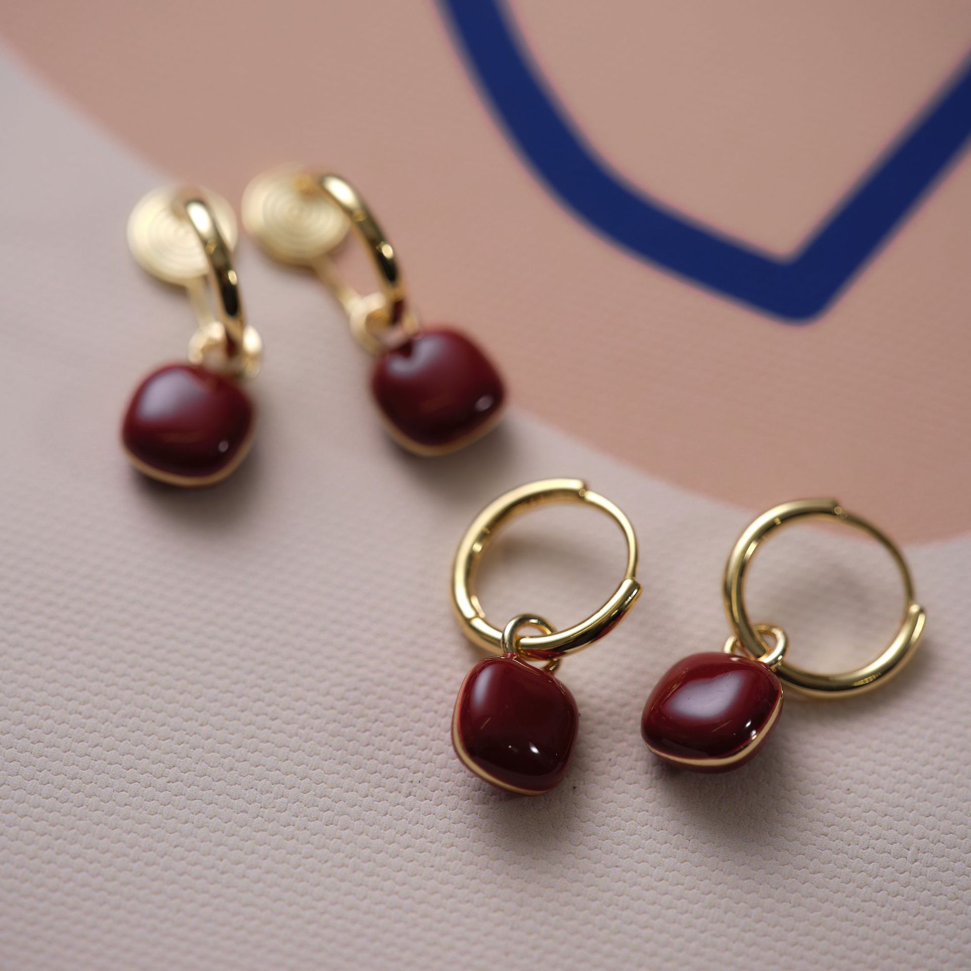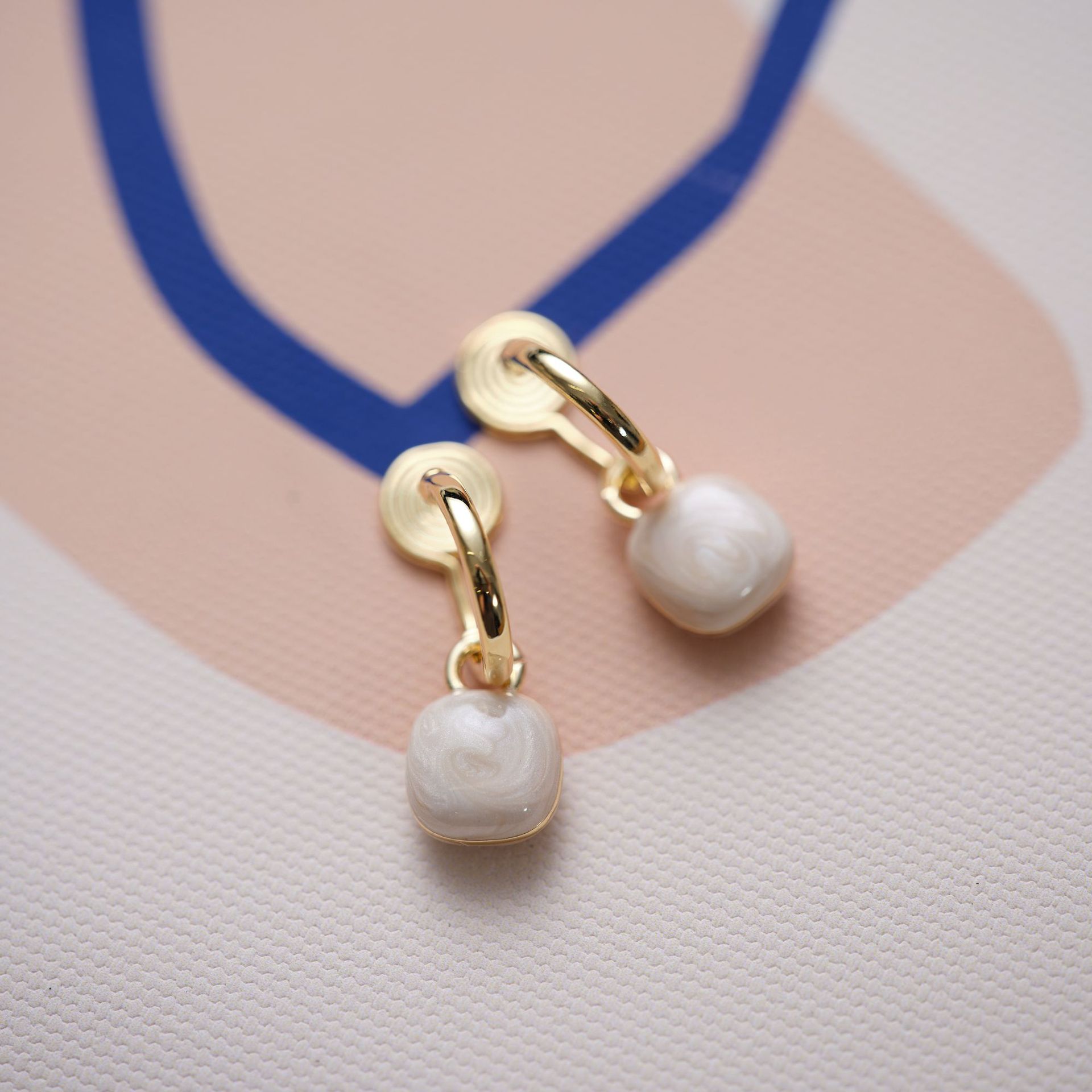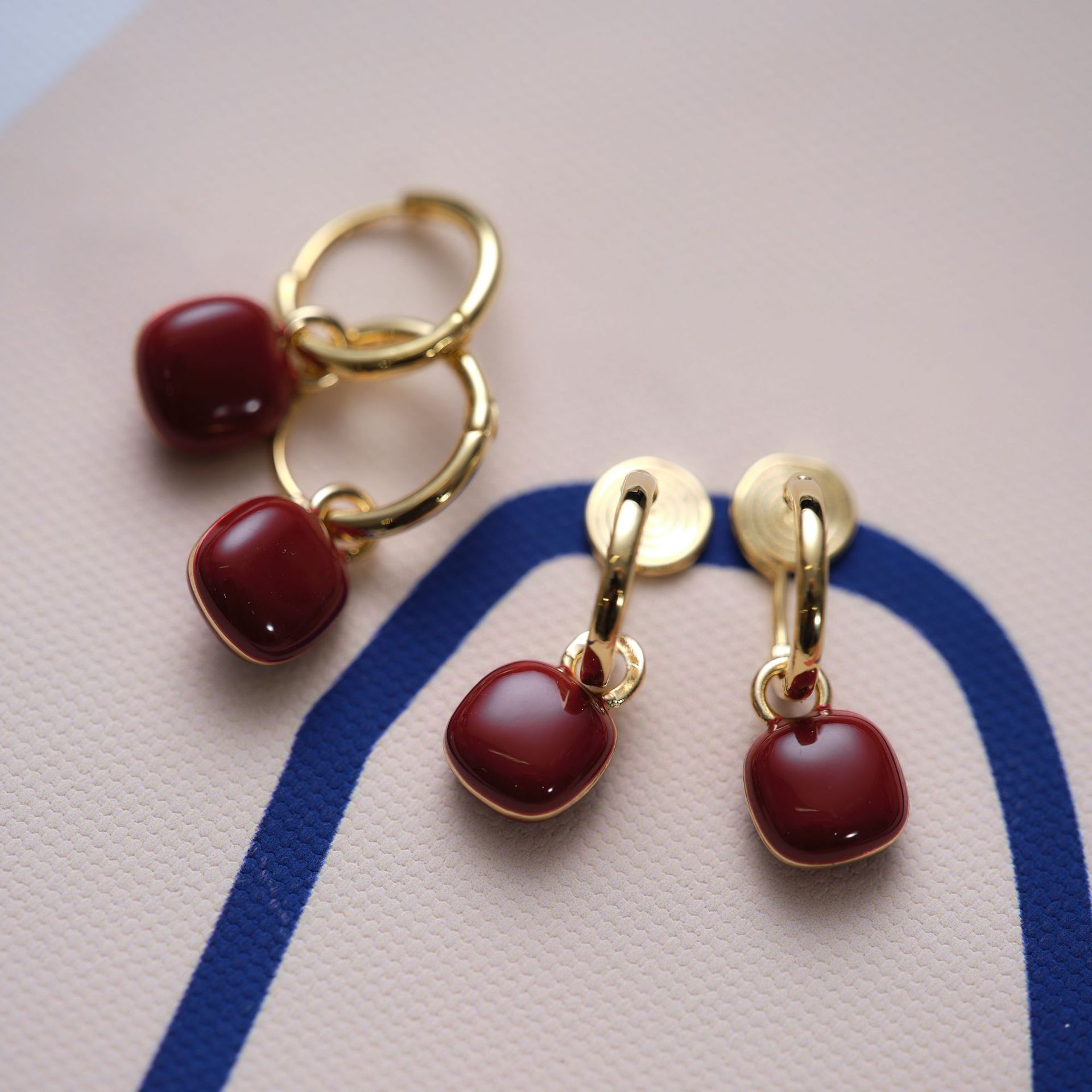 【小方糖】法式复古方形双面珐琅釉耳环耳扣耳夹蚊香盘无耳洞