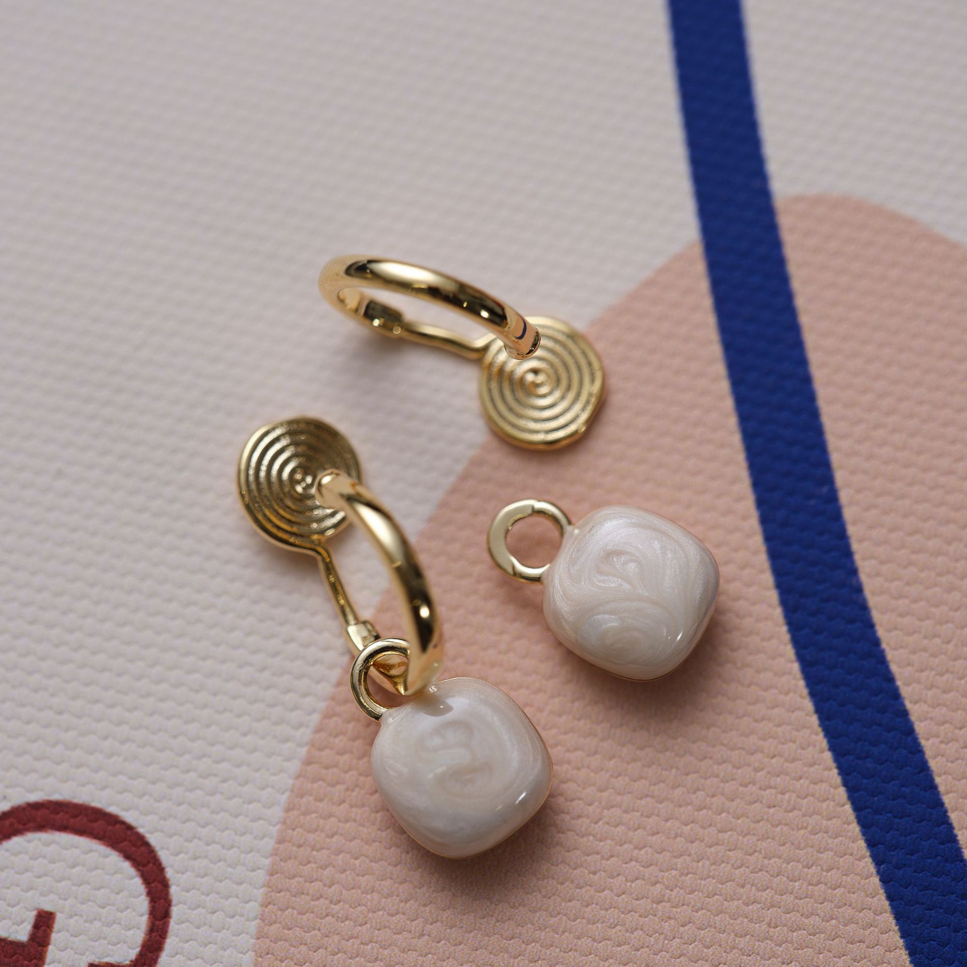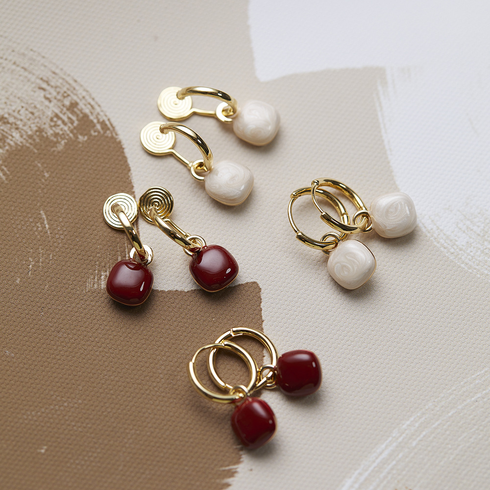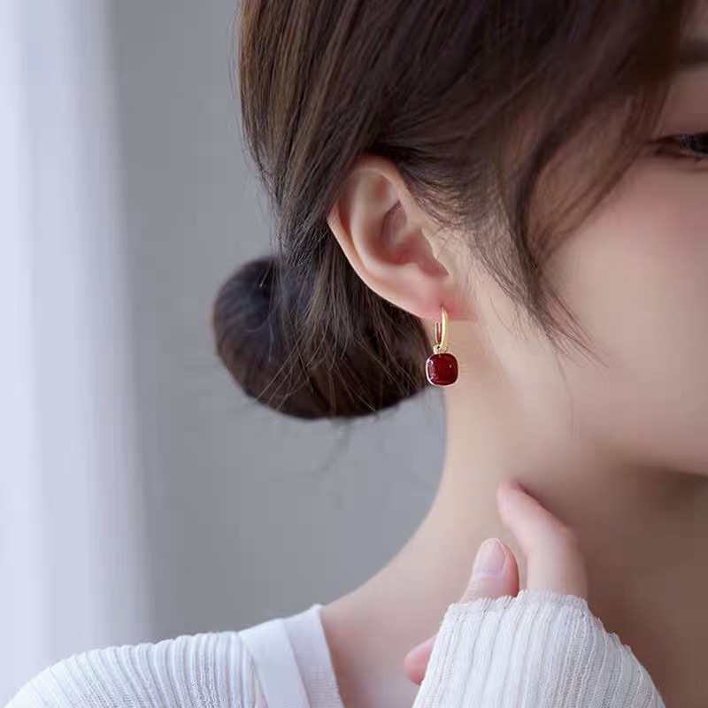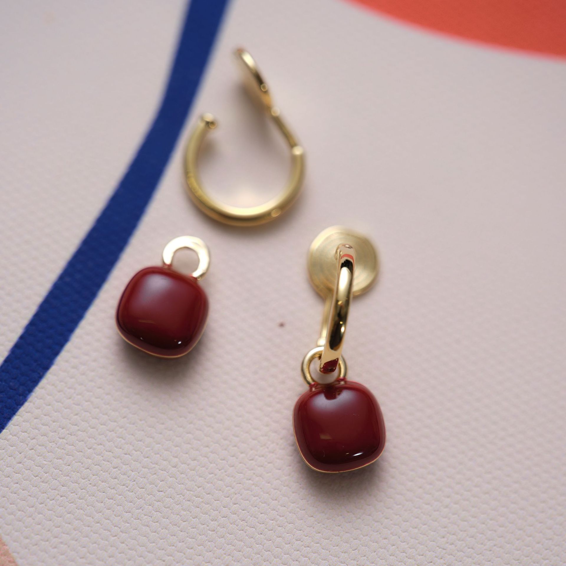 【小方糖】法式复古方形双面珐琅釉耳环耳扣耳夹蚊香盘无耳洞