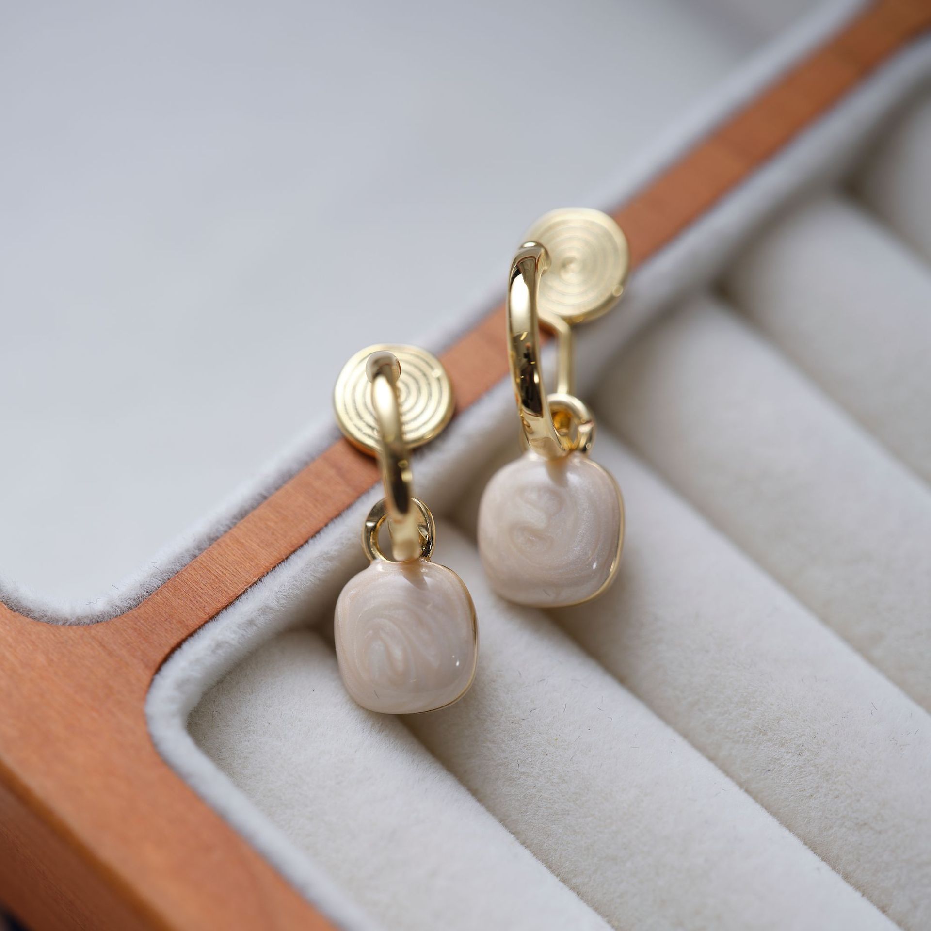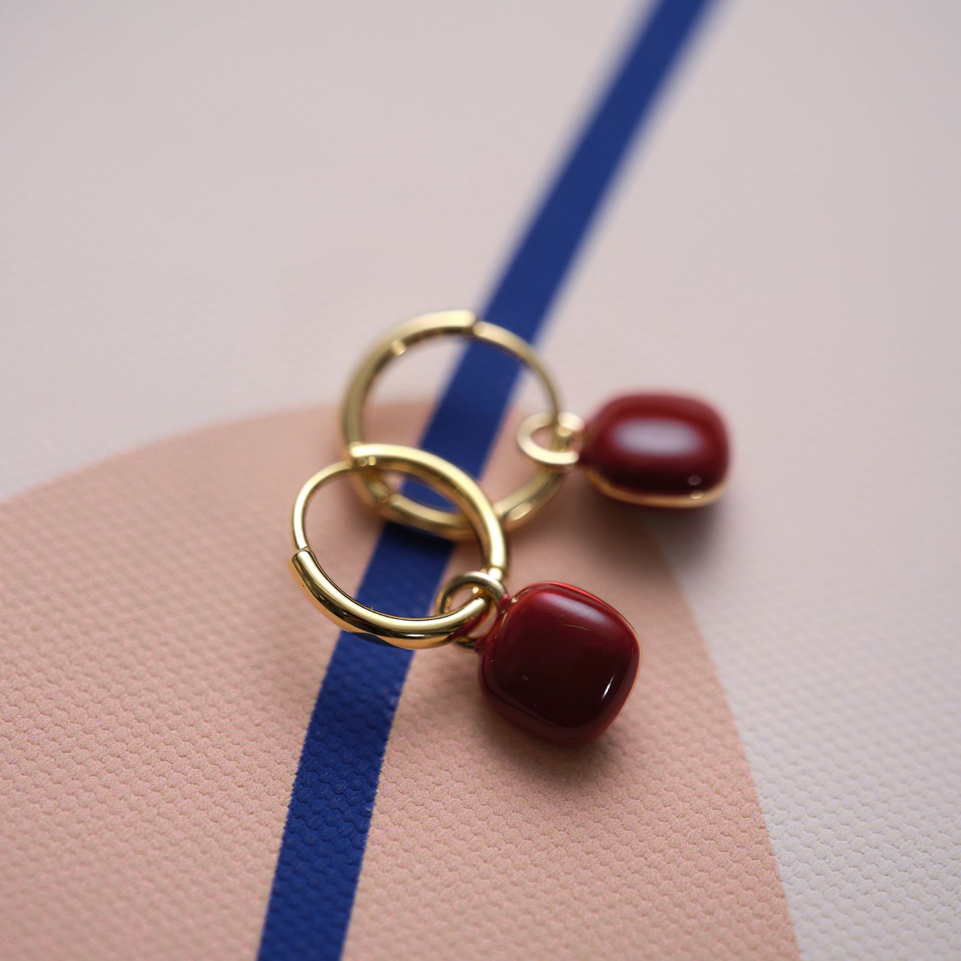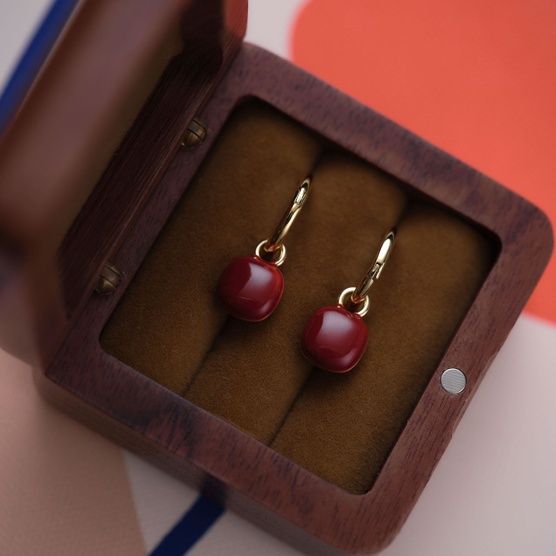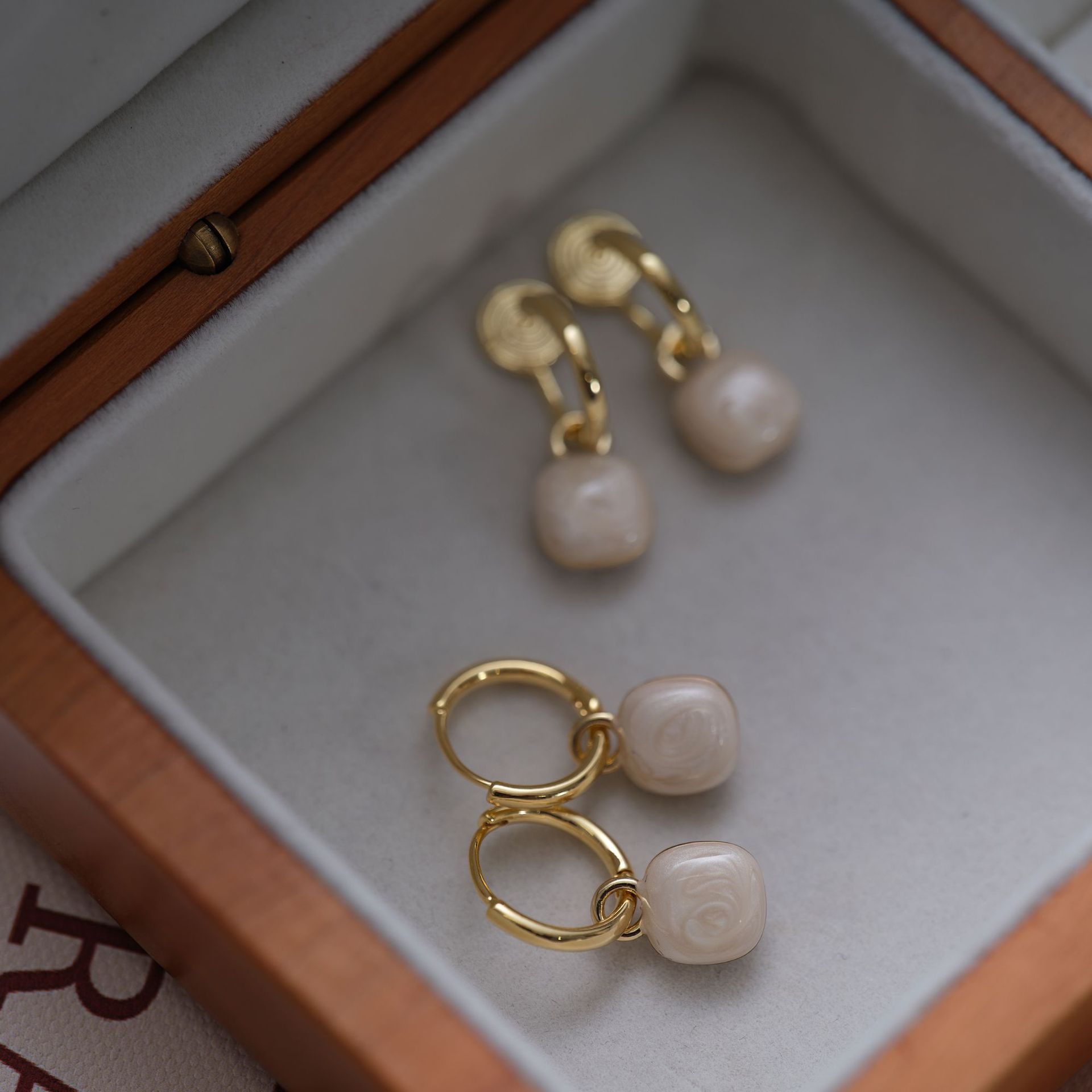 【小方糖】法式复古方形双面珐琅釉耳环耳扣耳夹蚊香盘无耳洞
