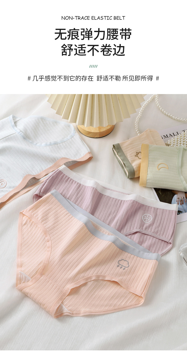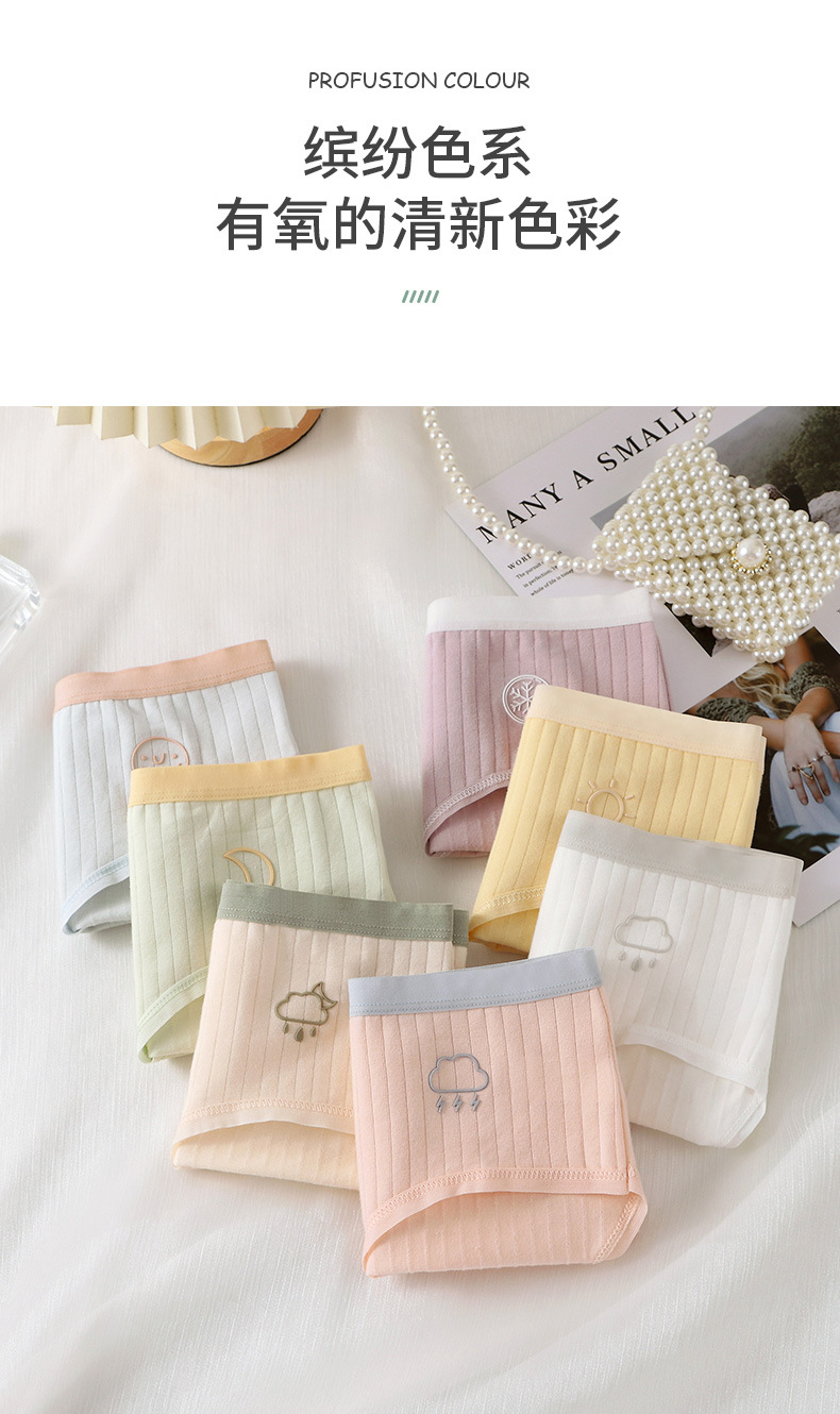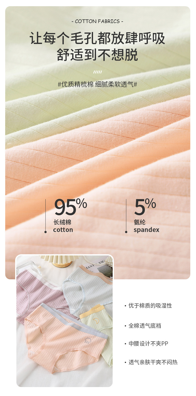 马卡龙色系女士内裤中腰简约内裤女日系少女透气薄款三角纯棉内裤