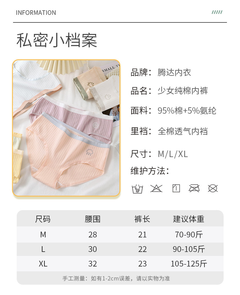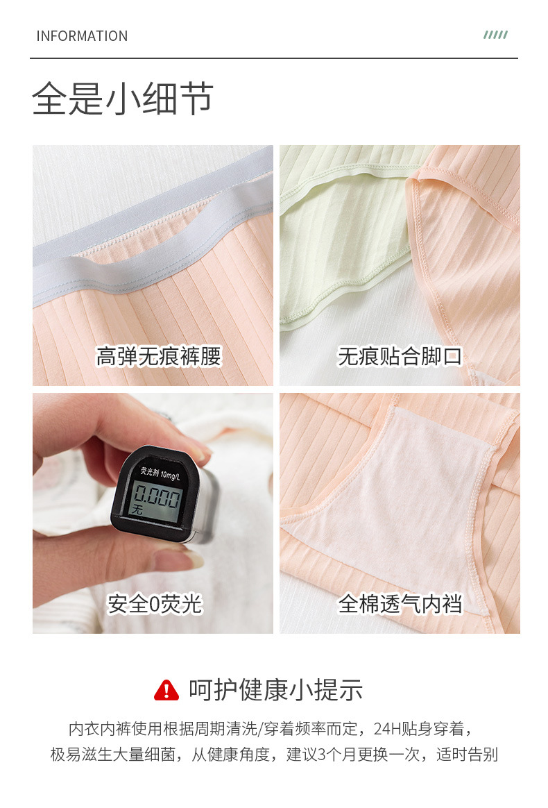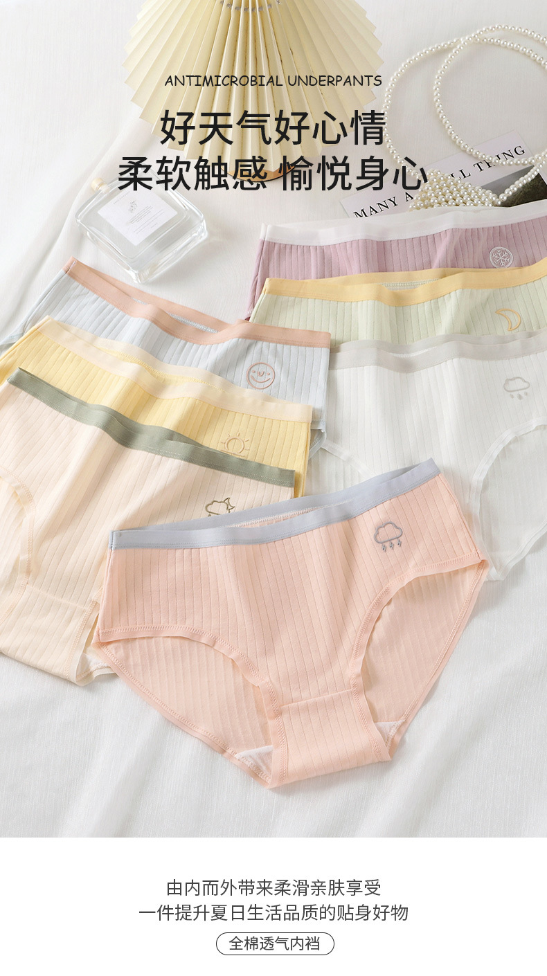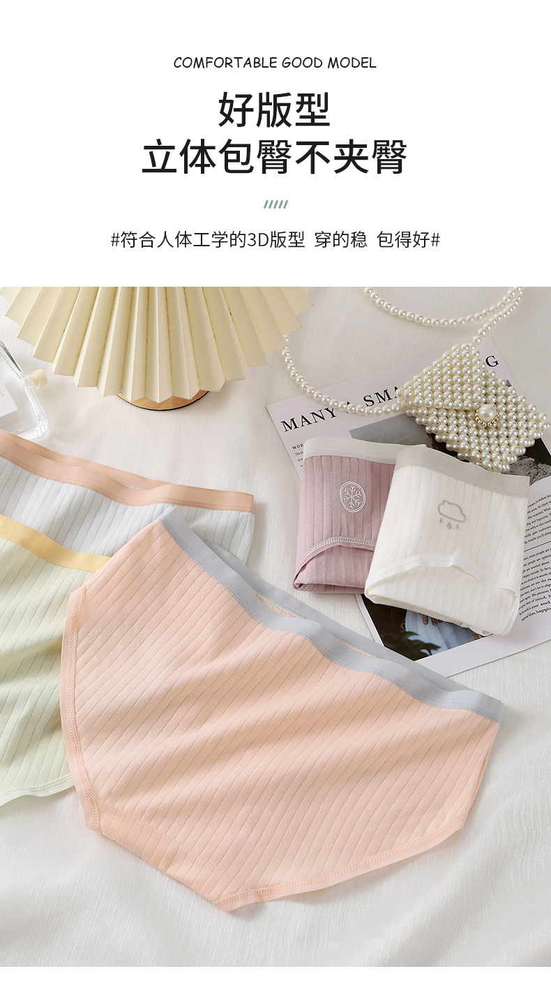 马卡龙色系女士内裤中腰简约内裤女日系少女透气薄款三角纯棉内裤