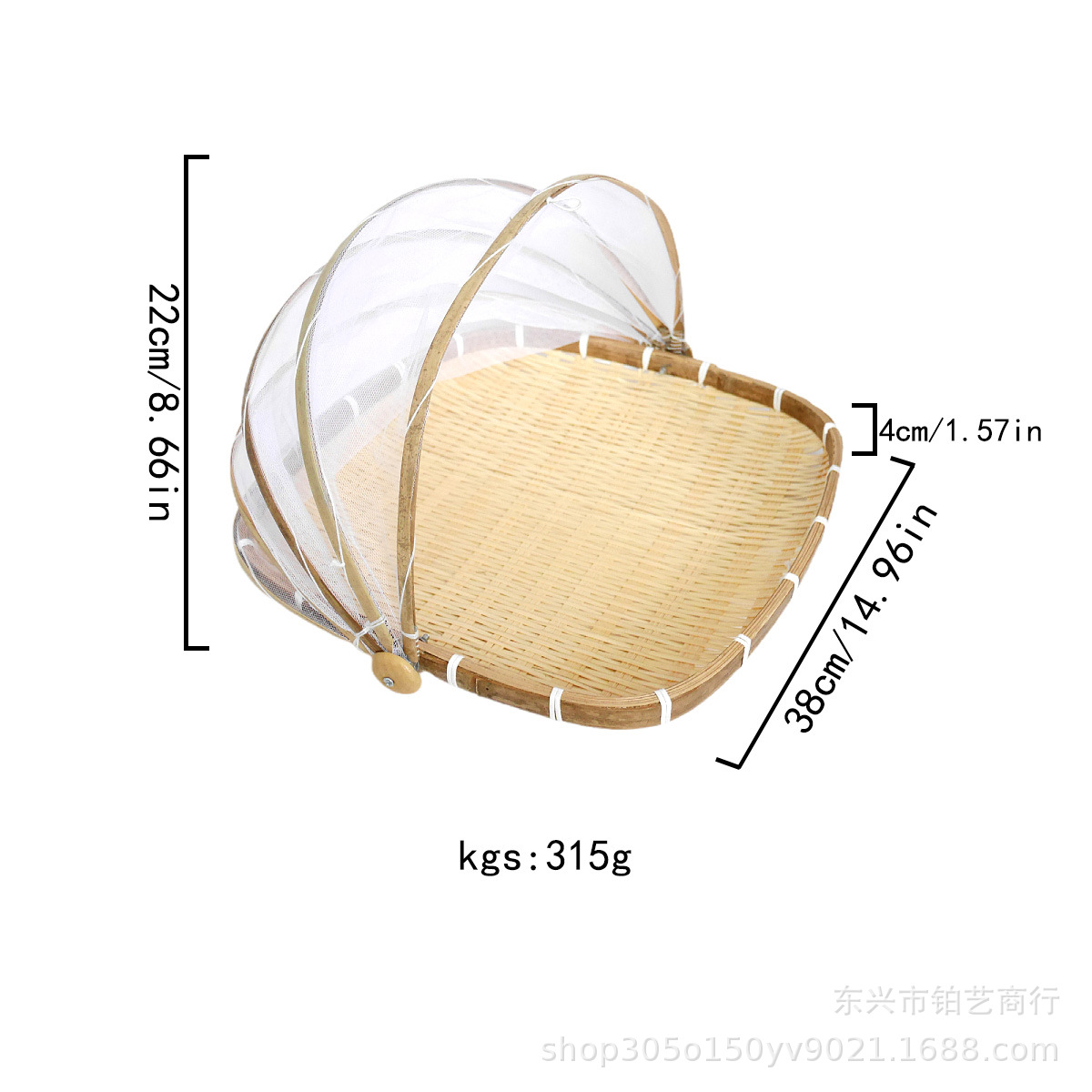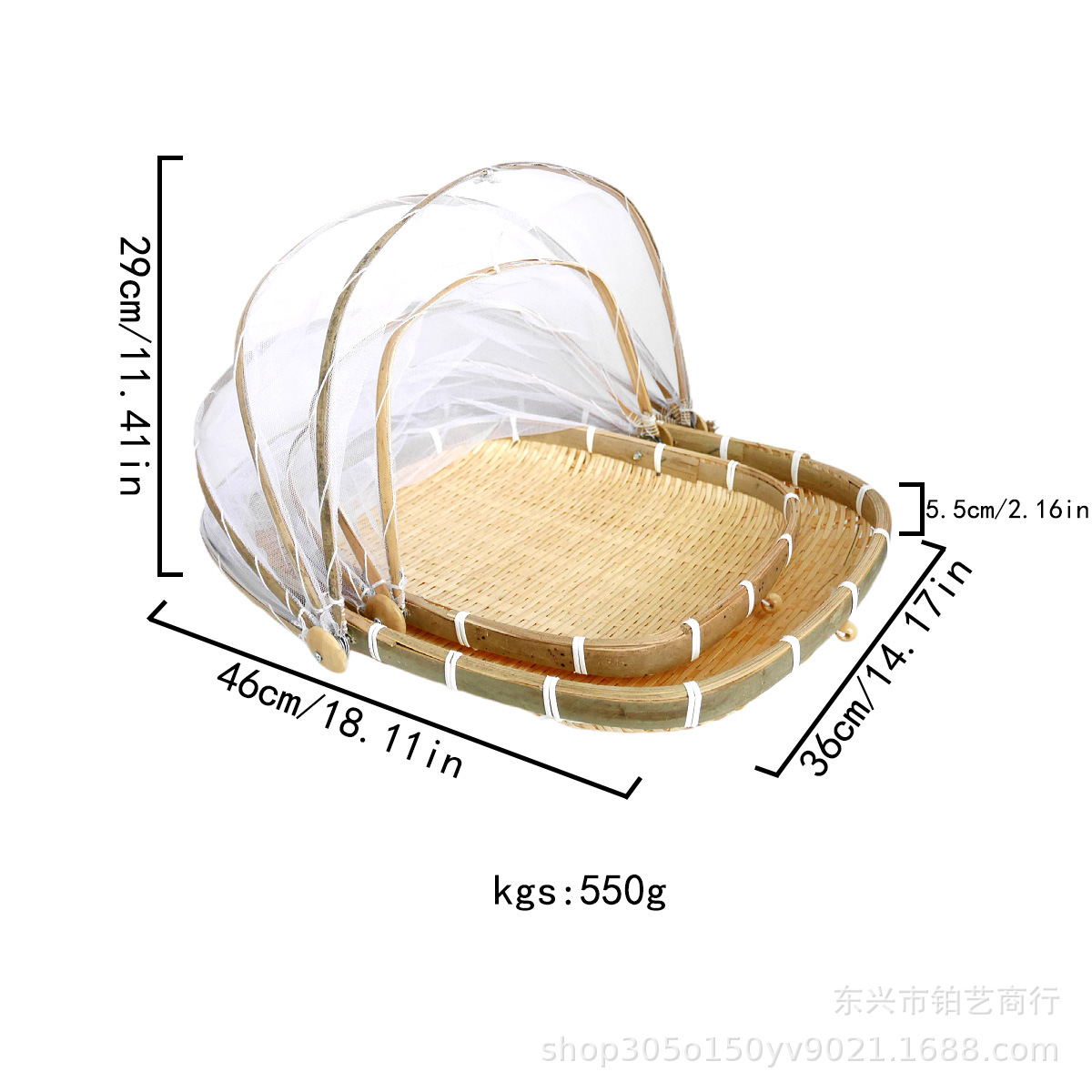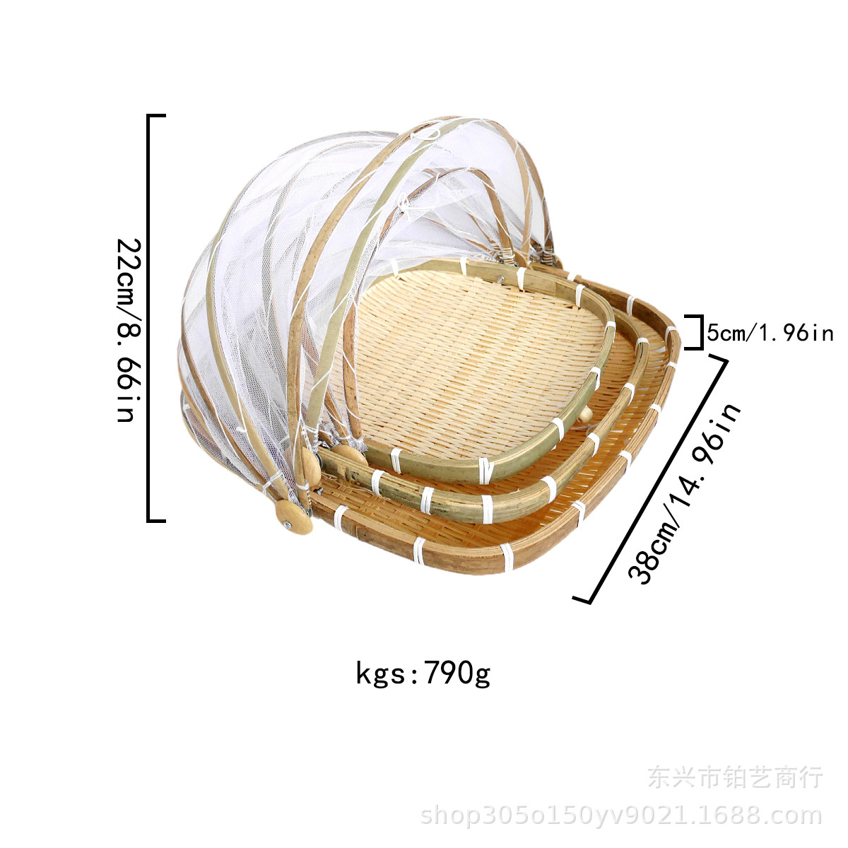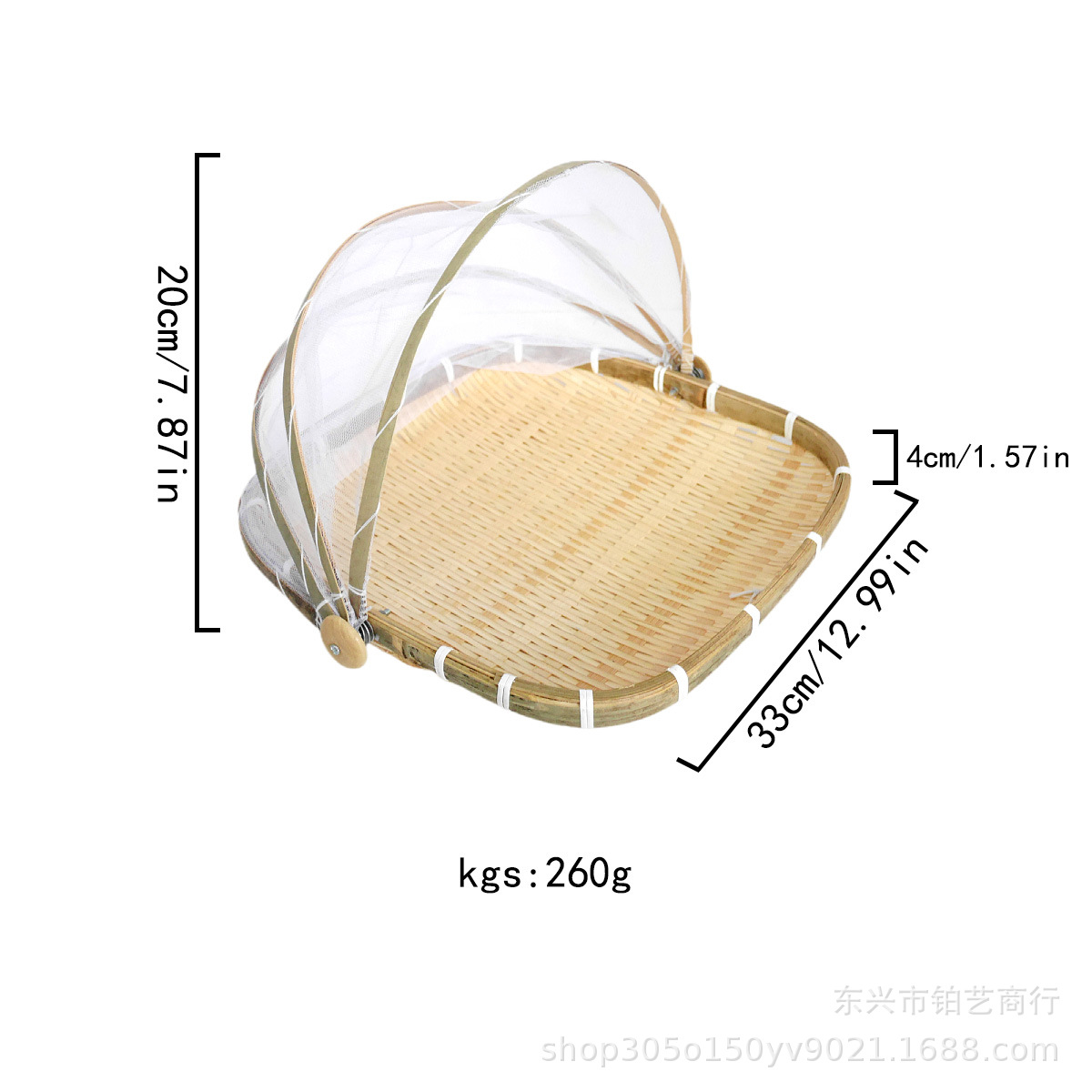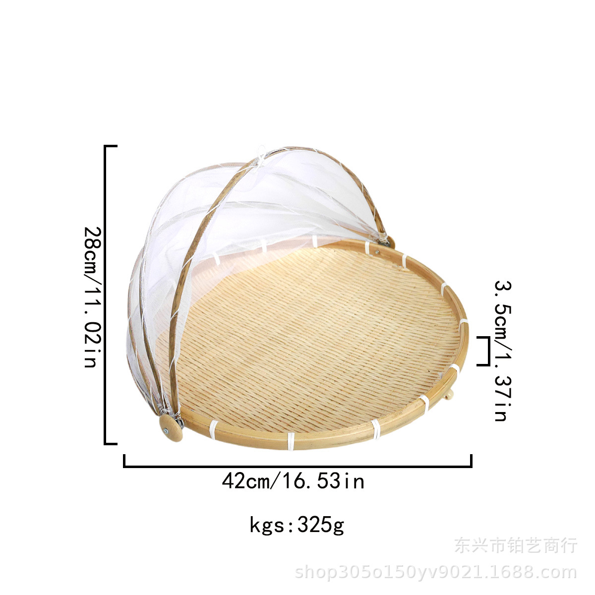 竹编晾晒竹筛子带纱网罩簸箕家用防虫竹编制品馒头筐竹篮子