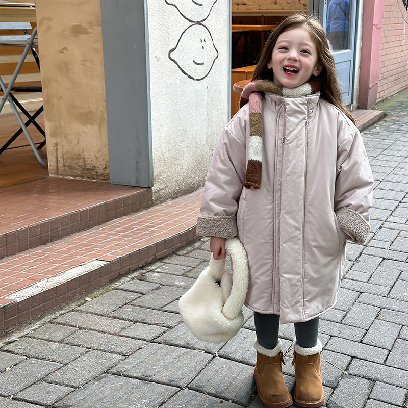 艾摩贝贝女童韩版洋气中长款被子棉服儿童立领保暖加绒风衣外套冬
