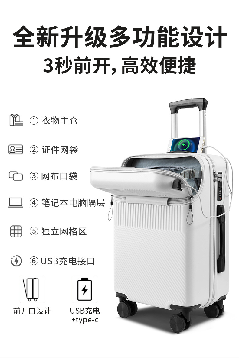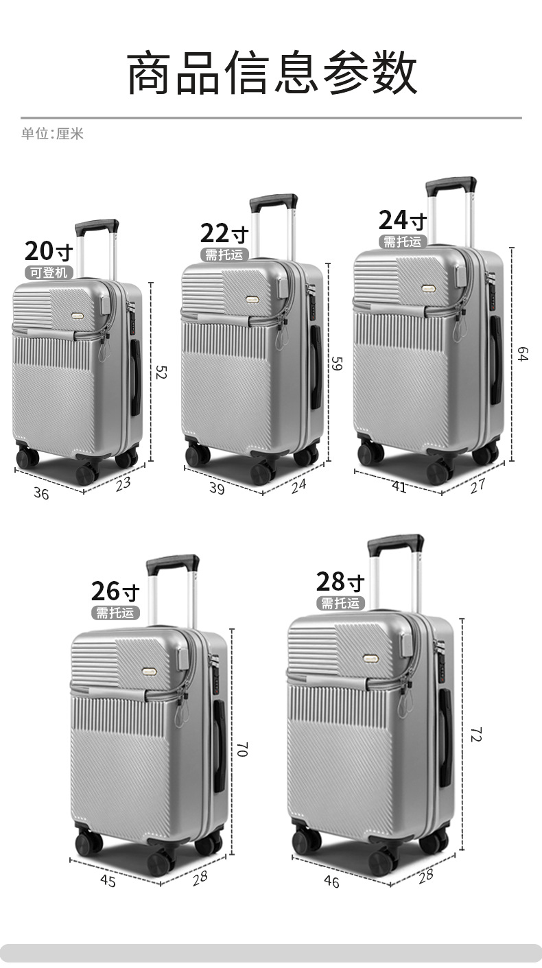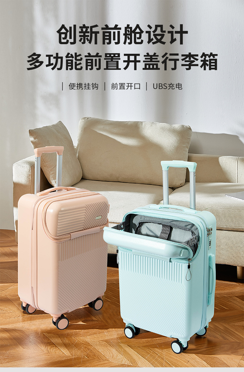 多功能前置开20寸登机箱行李箱小型轻便拉杆箱皮箱24寸韩版旅行箱