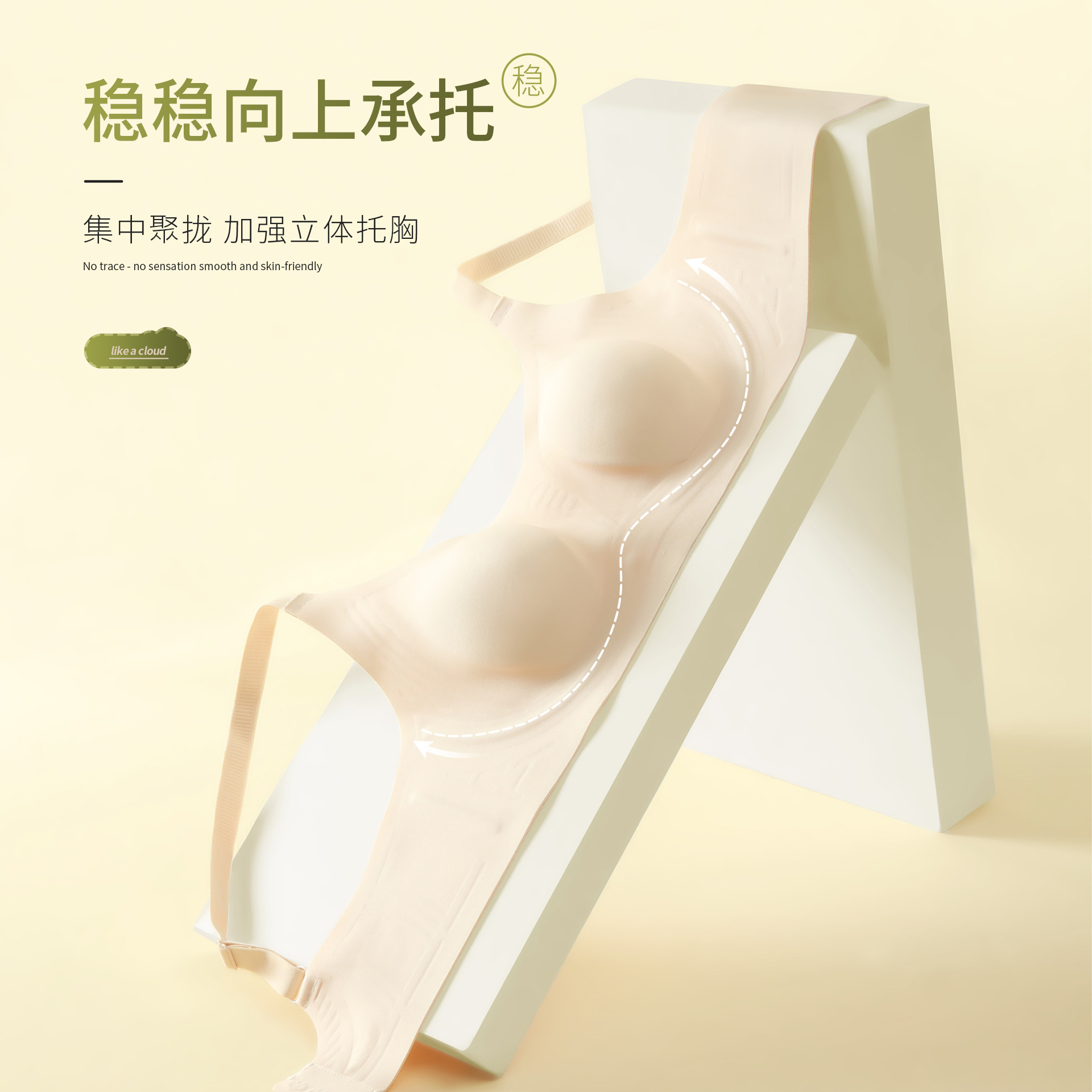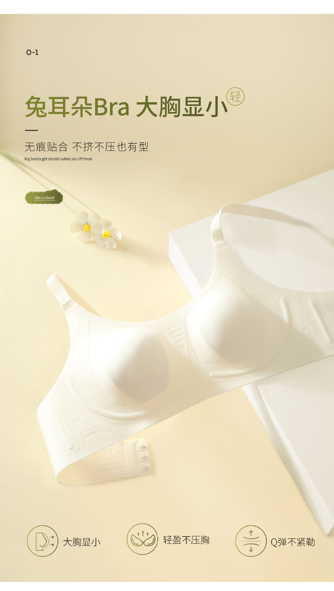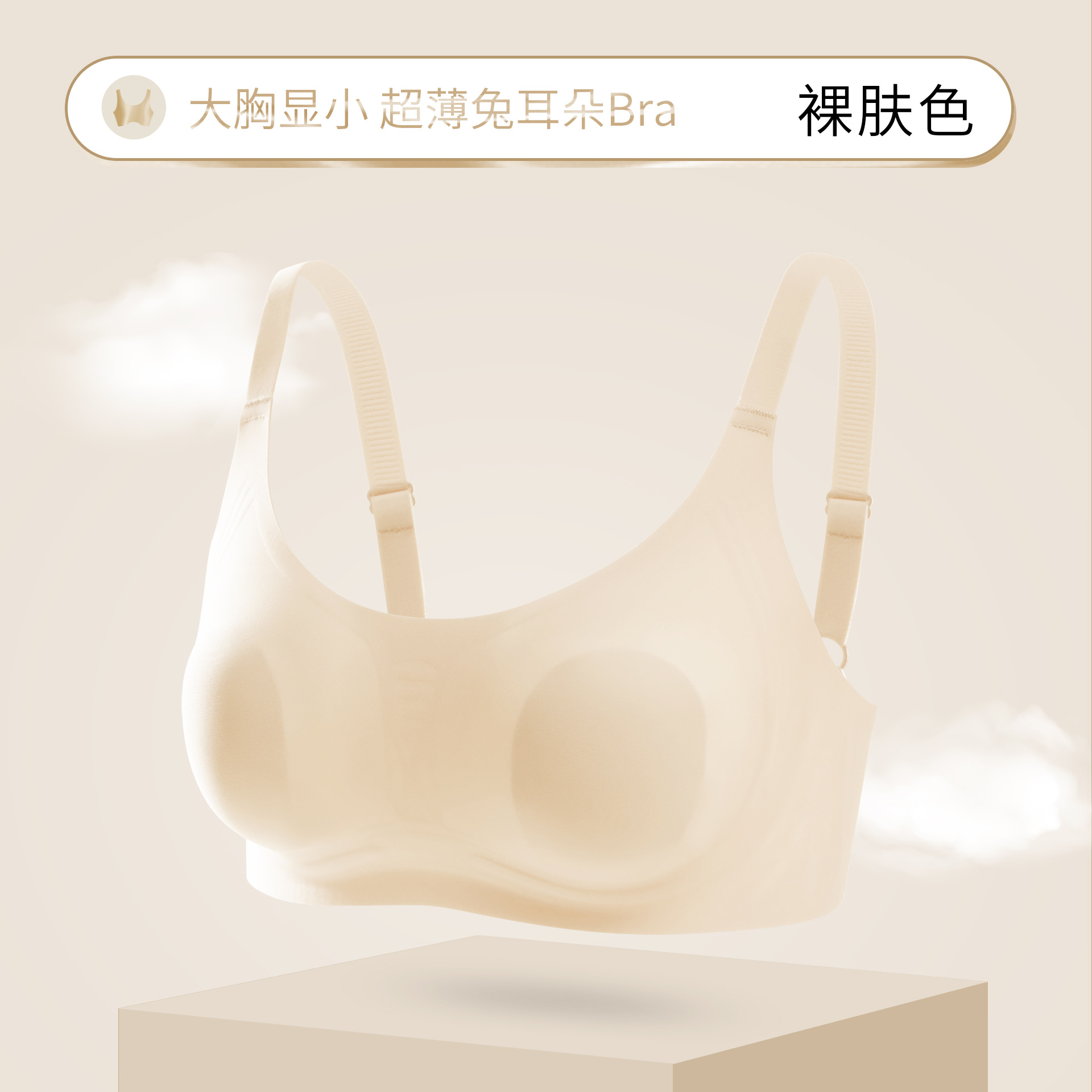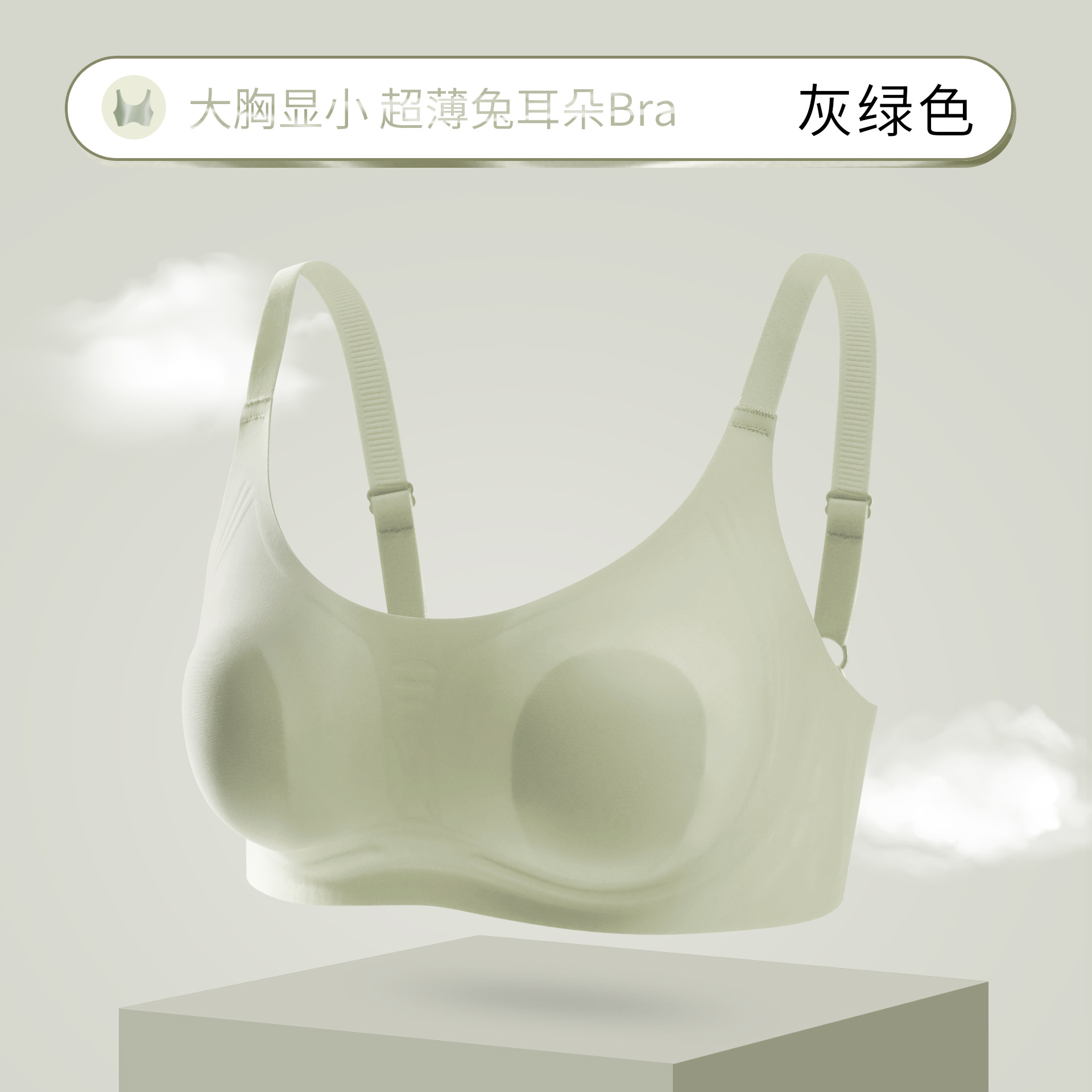 超薄大胸显小无痕兔耳朵内衣聚拢提胸女防凸隐形胸罩显瘦美背文胸