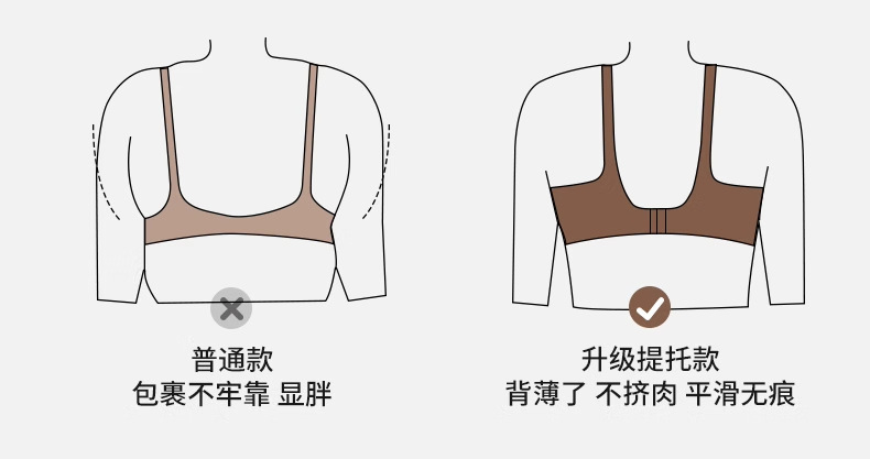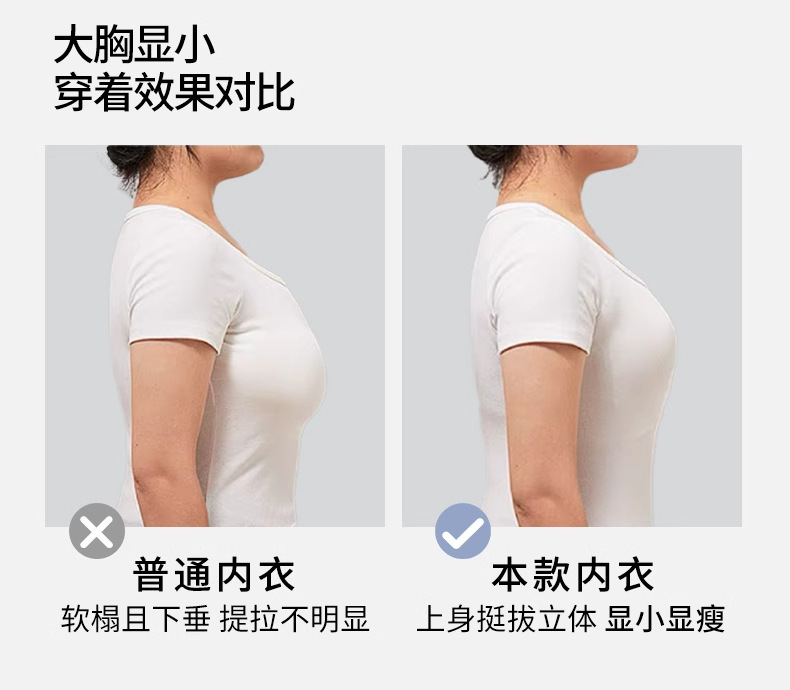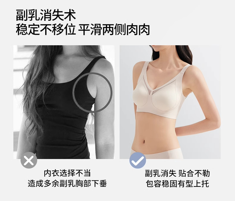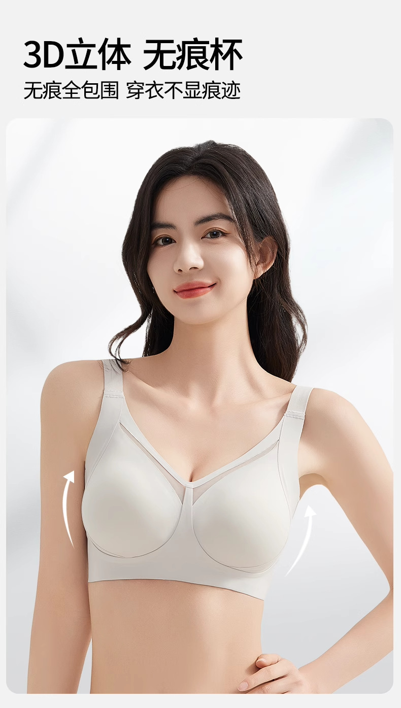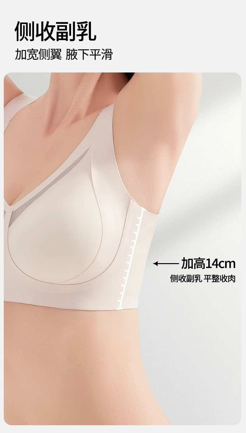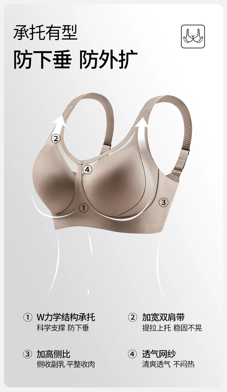 无痕内衣女大胸显小薄款 美背调整型提拉防下垂全罩杯收副乳文胸.