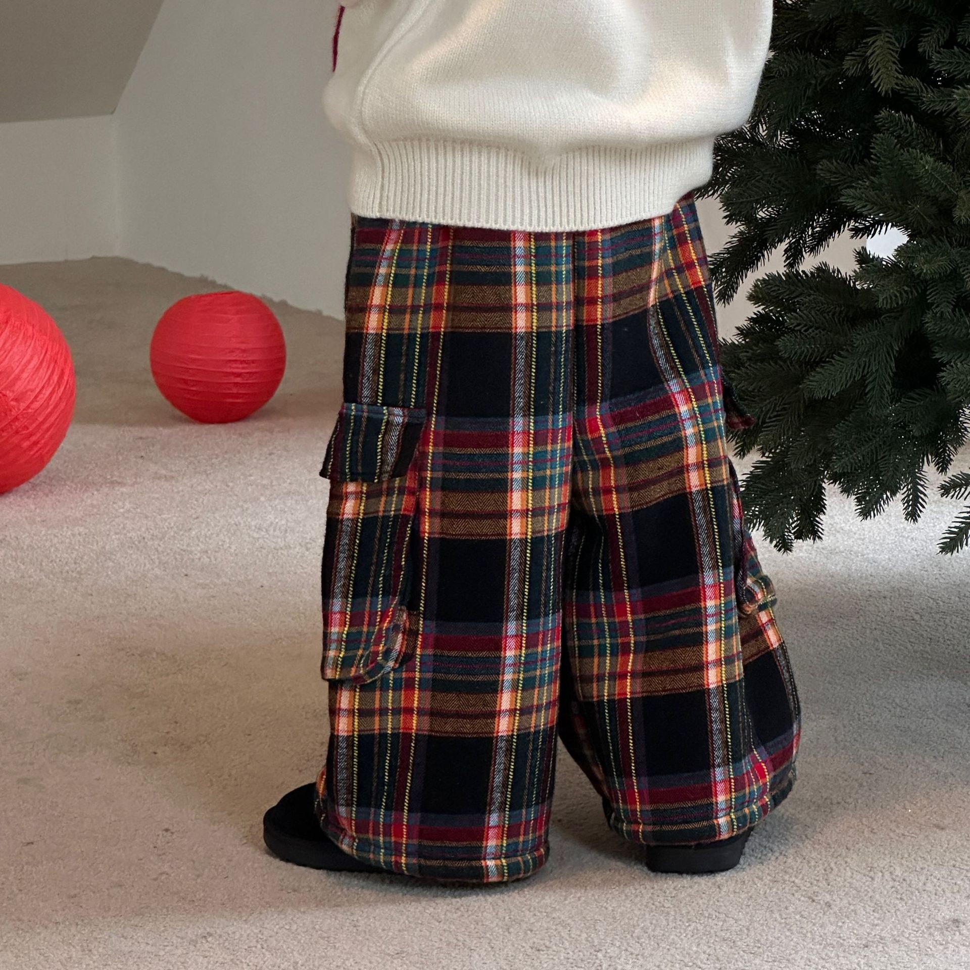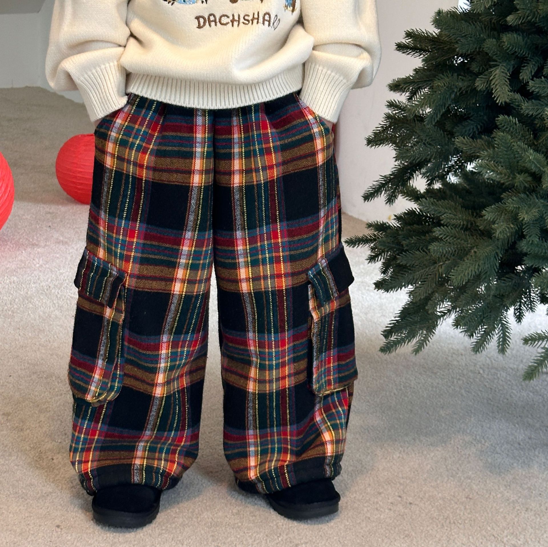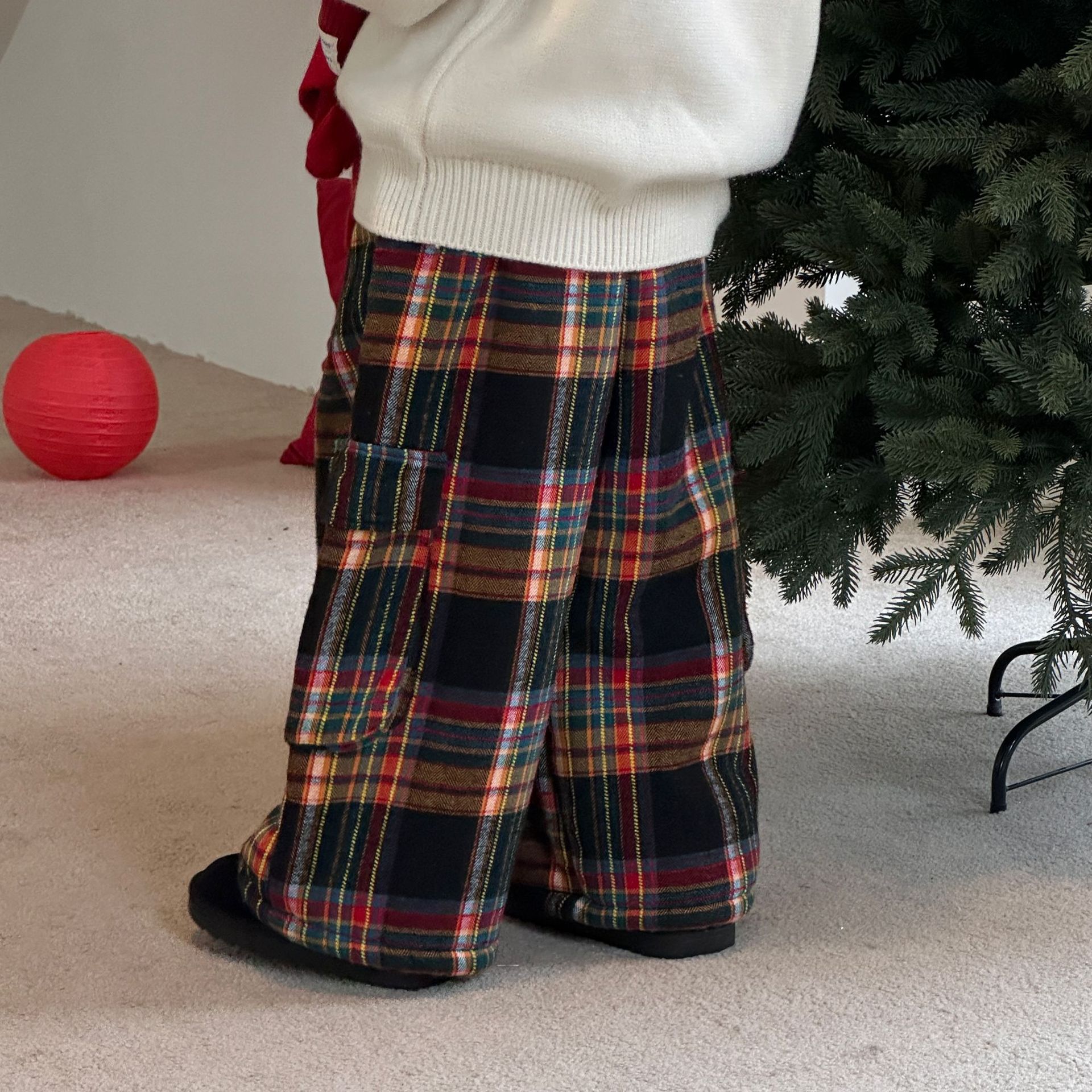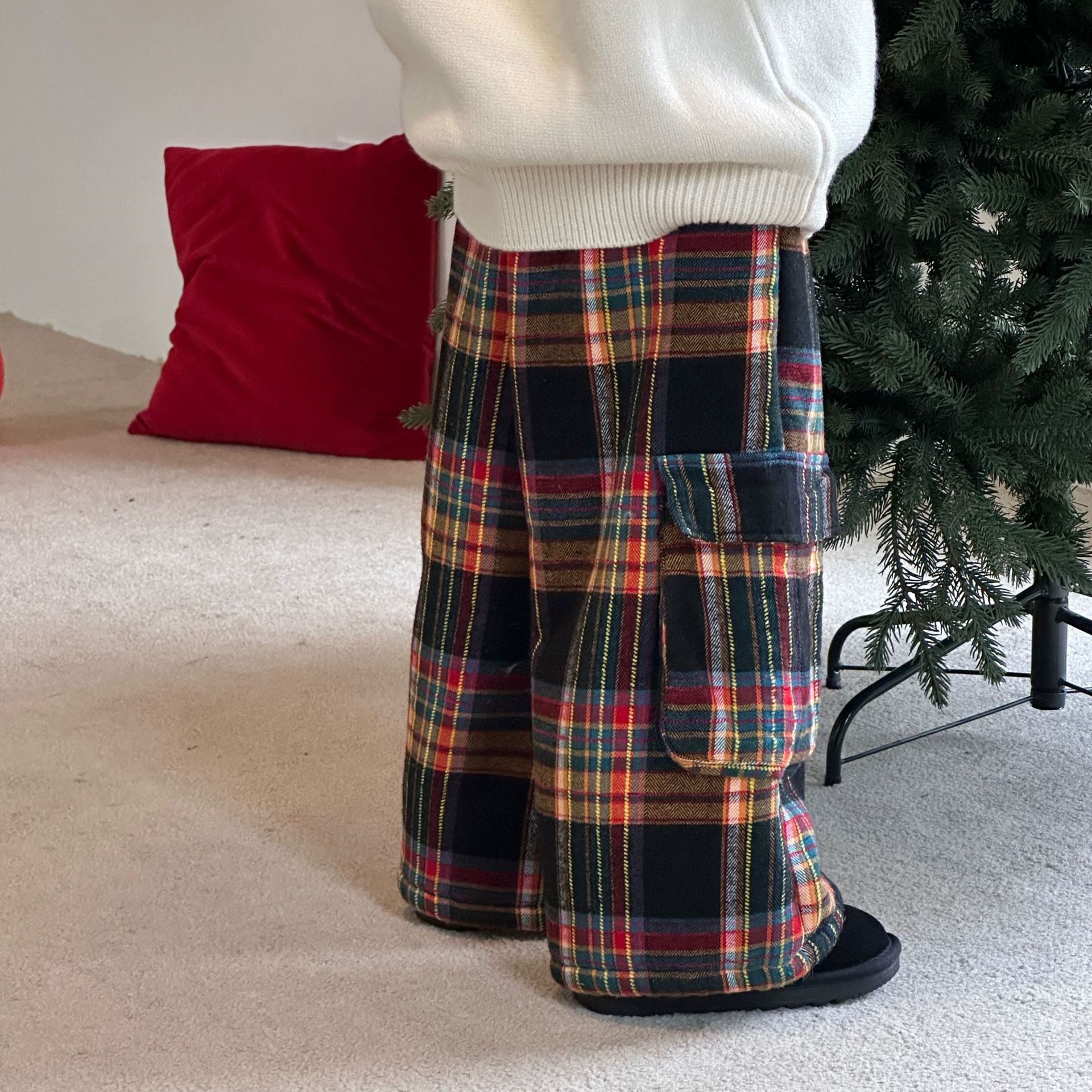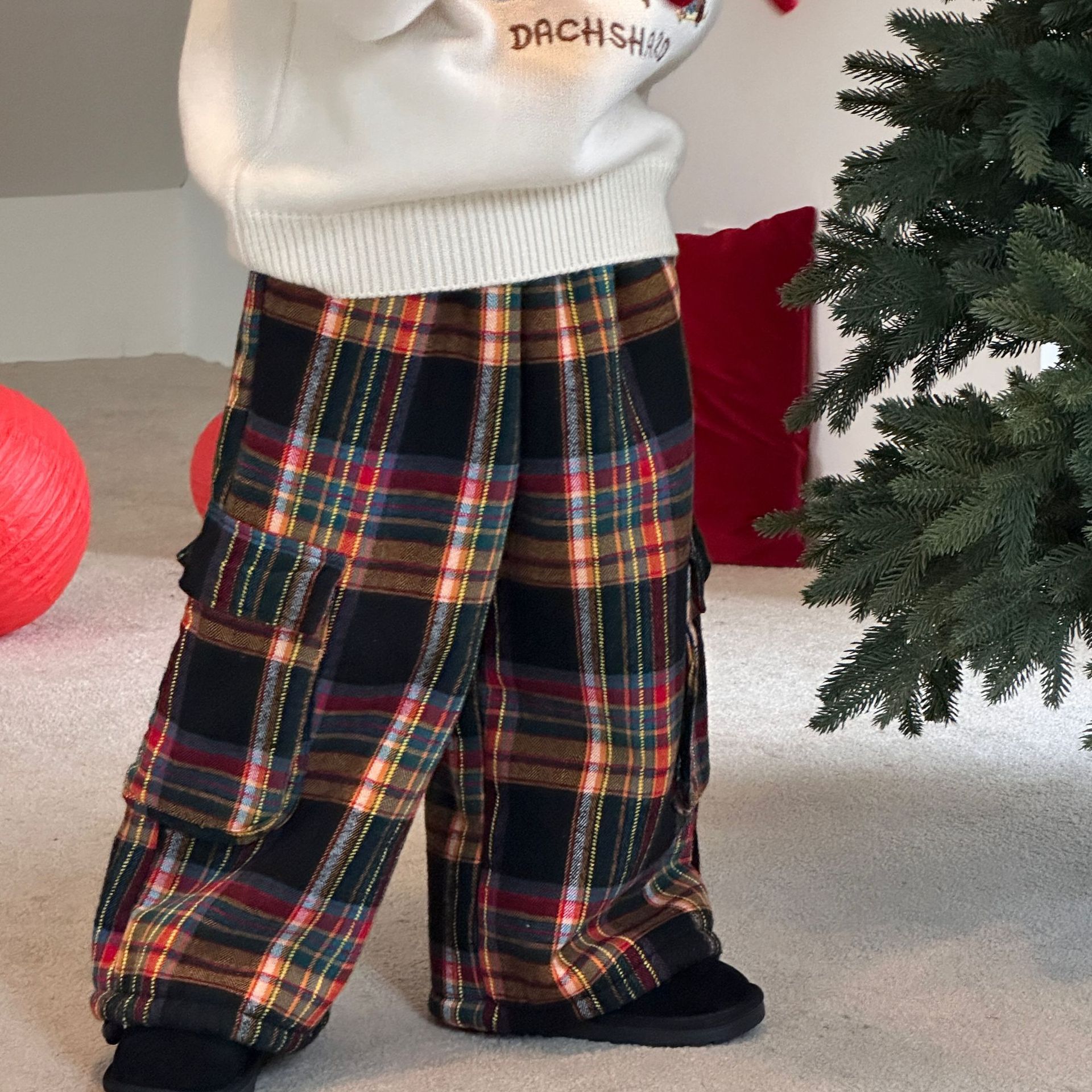 泰如2024冬季新款男童韩版加绒加厚格子裤男童洋气新年保暖长裤潮