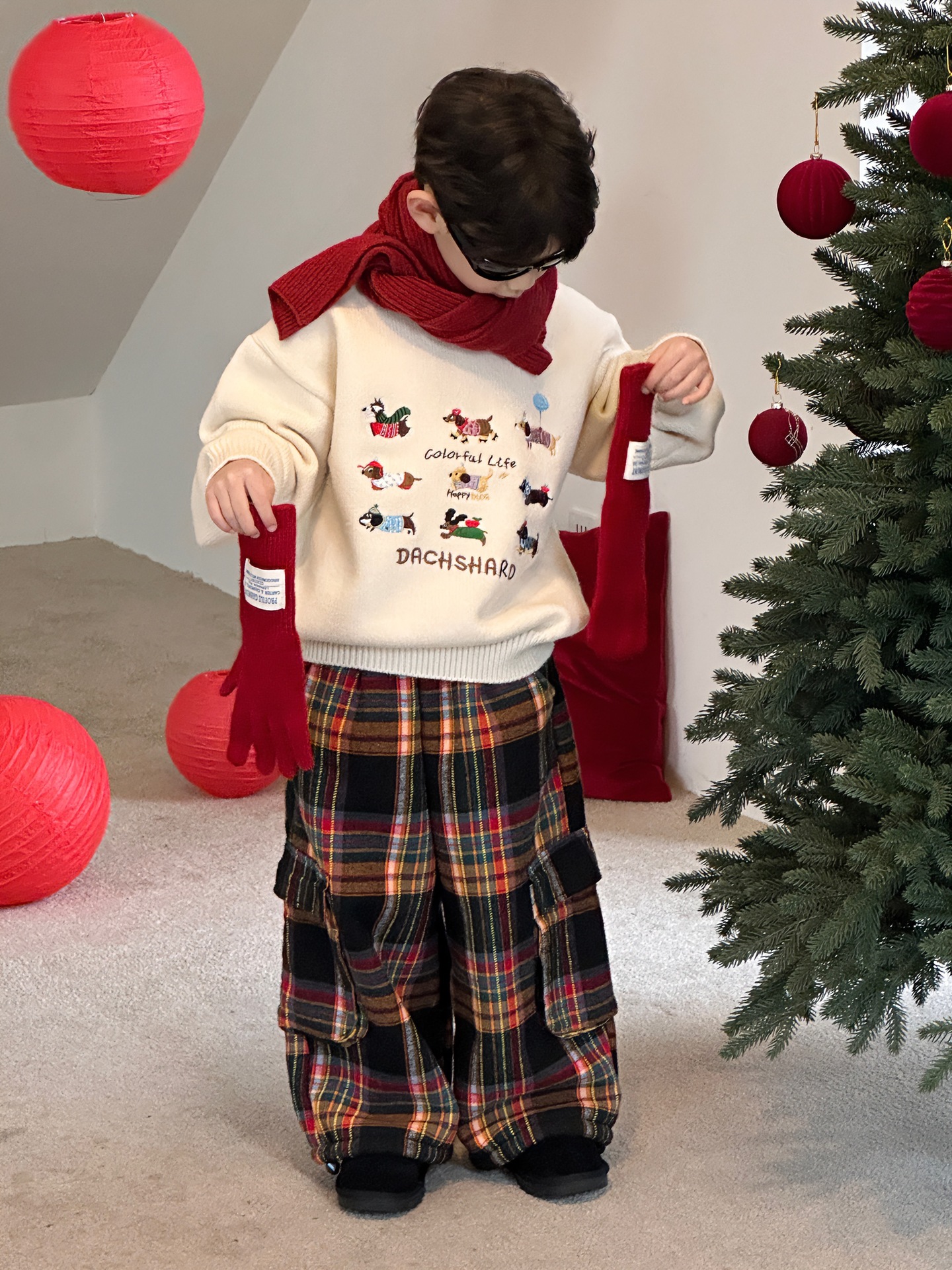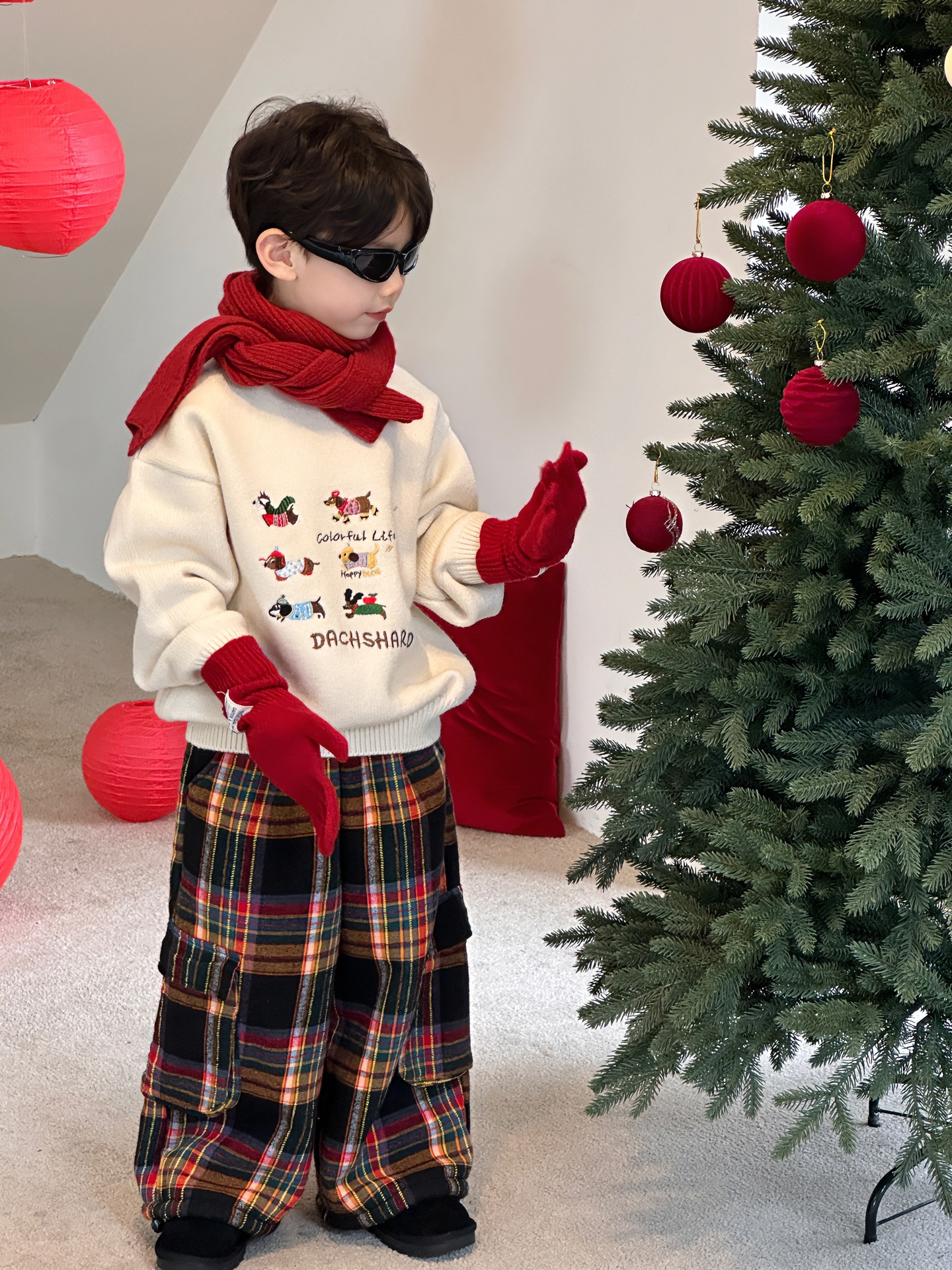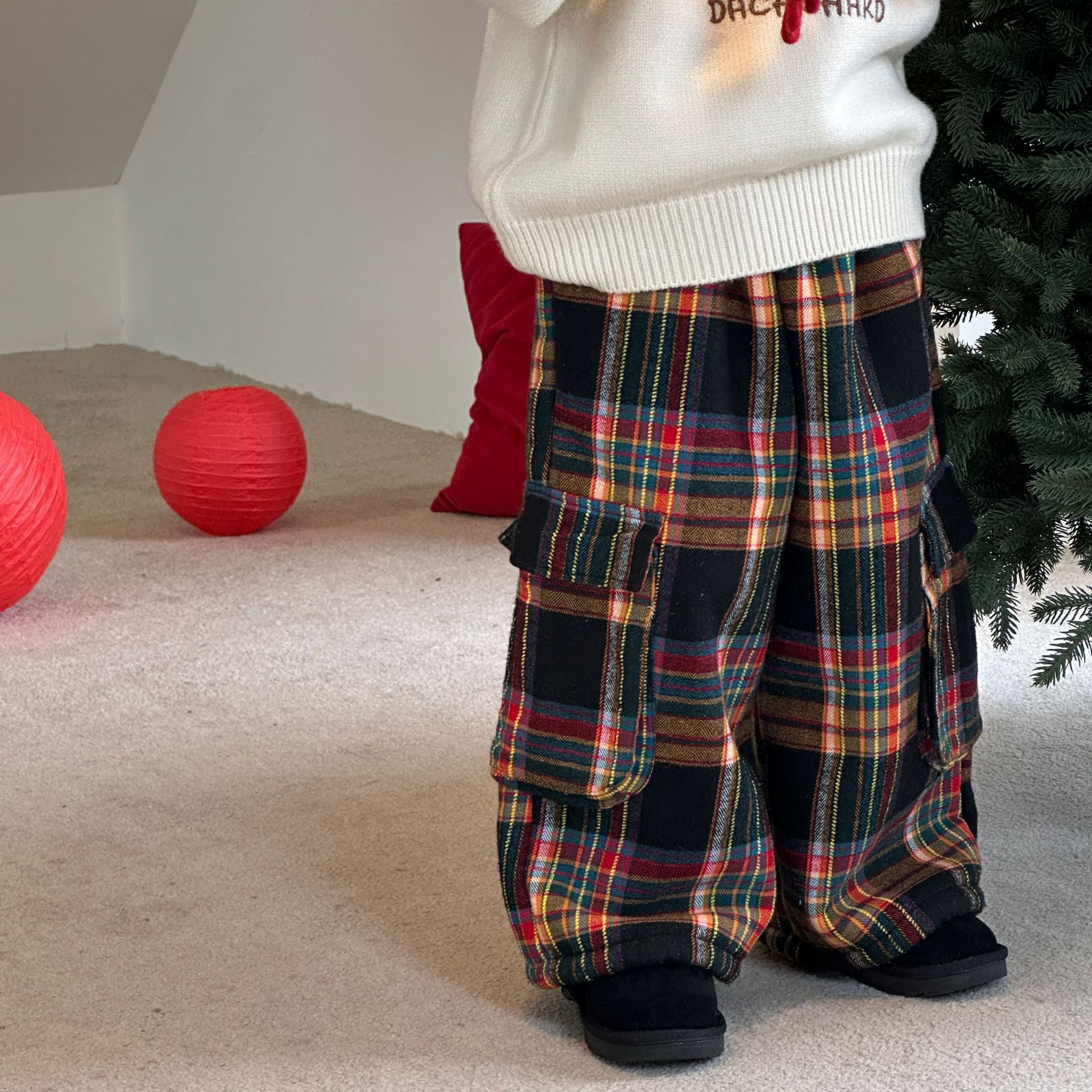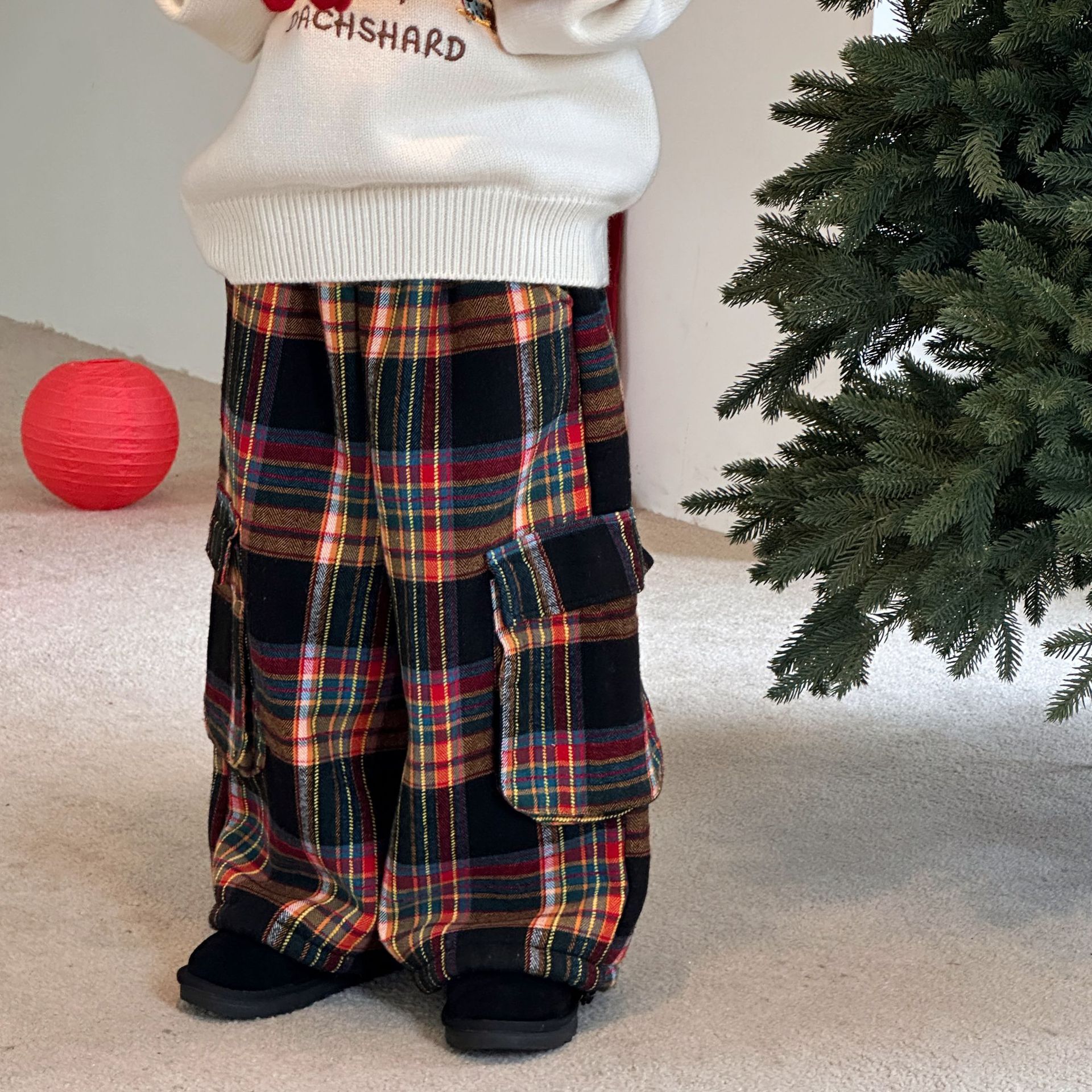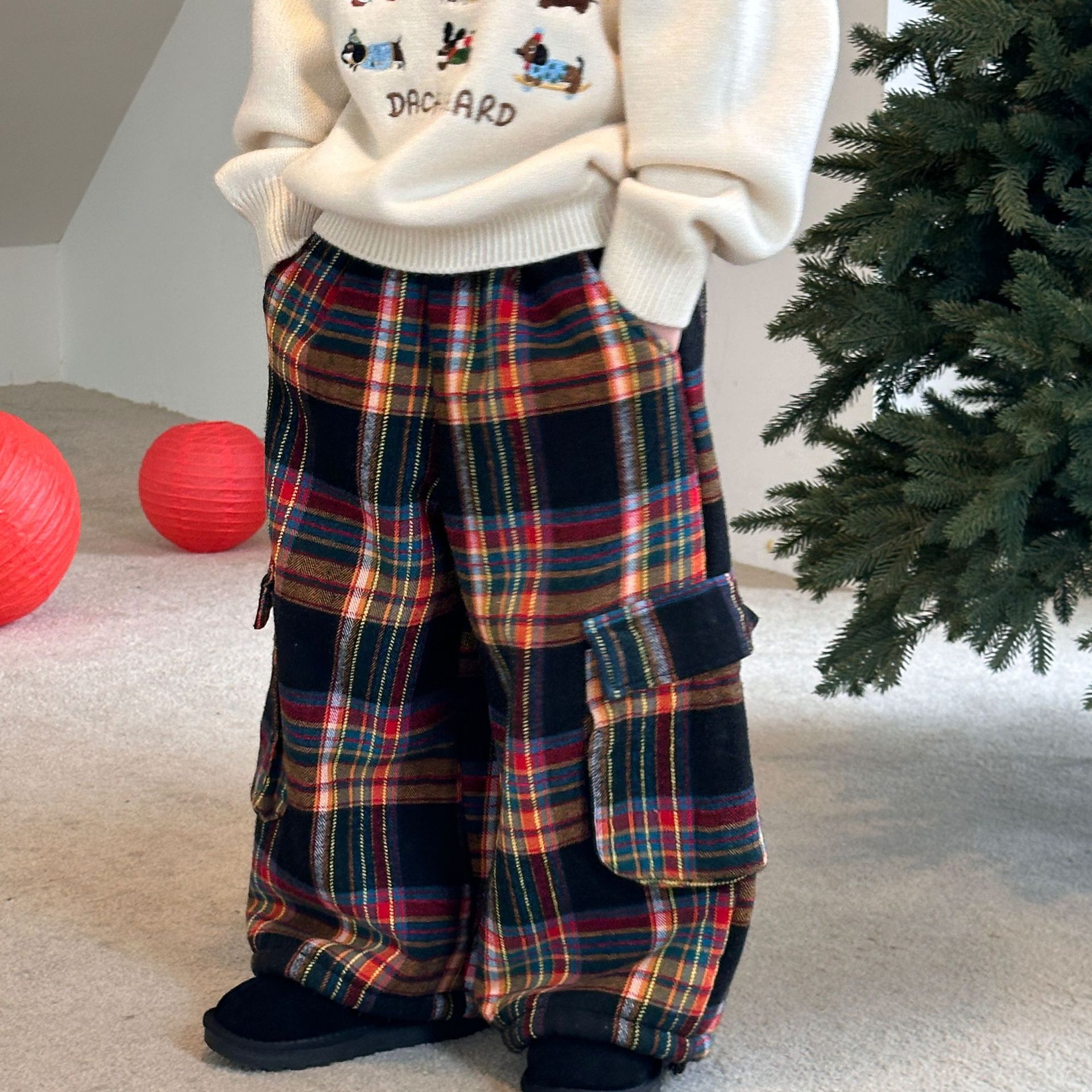 泰如2024冬季新款男童韩版加绒加厚格子裤男童洋气新年保暖长裤潮