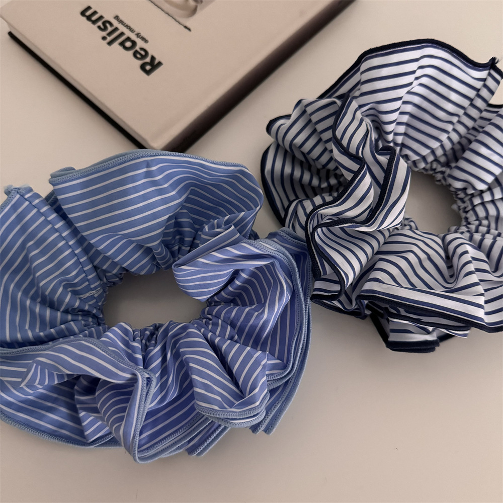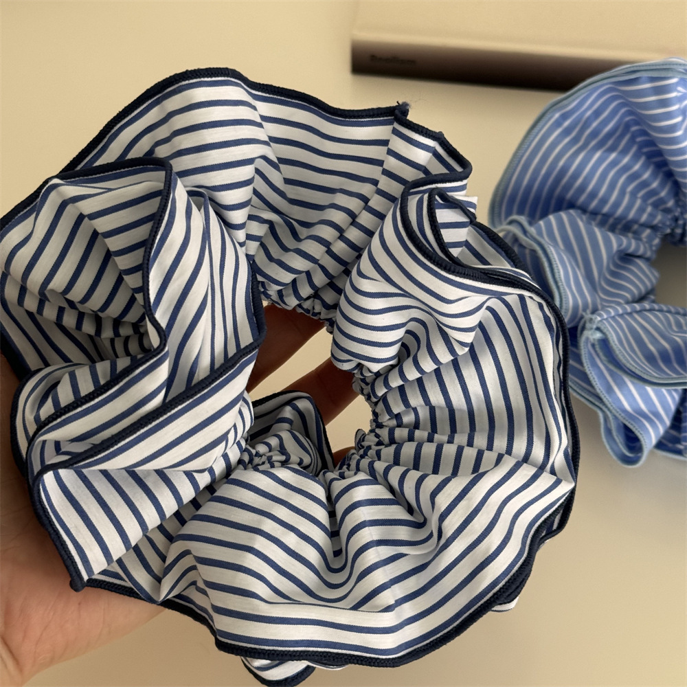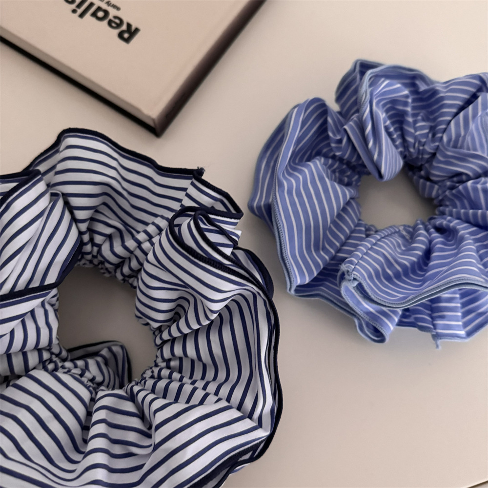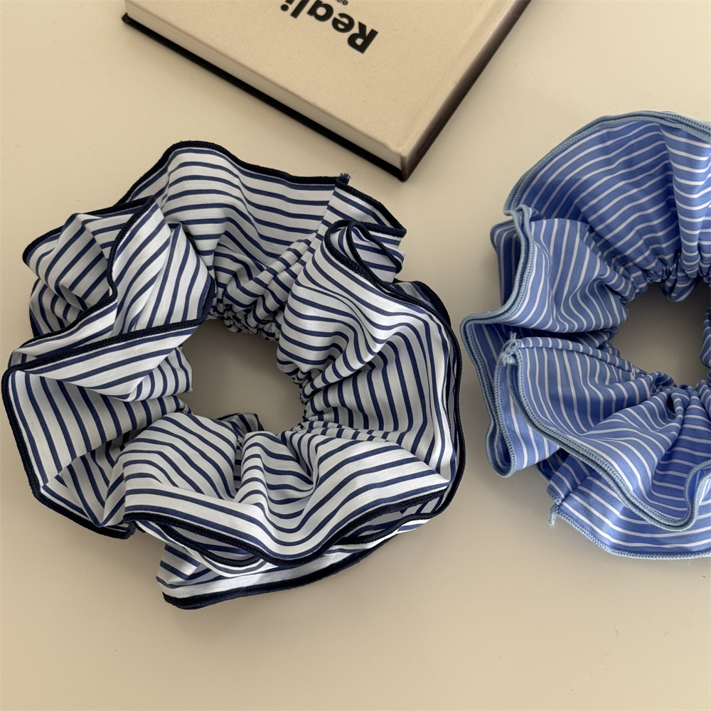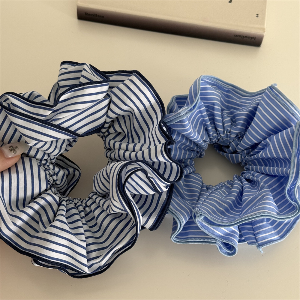 质感高级时髦条纹布艺大肠圈发圈清爽蓝色气质低马尾发绳发饰新款