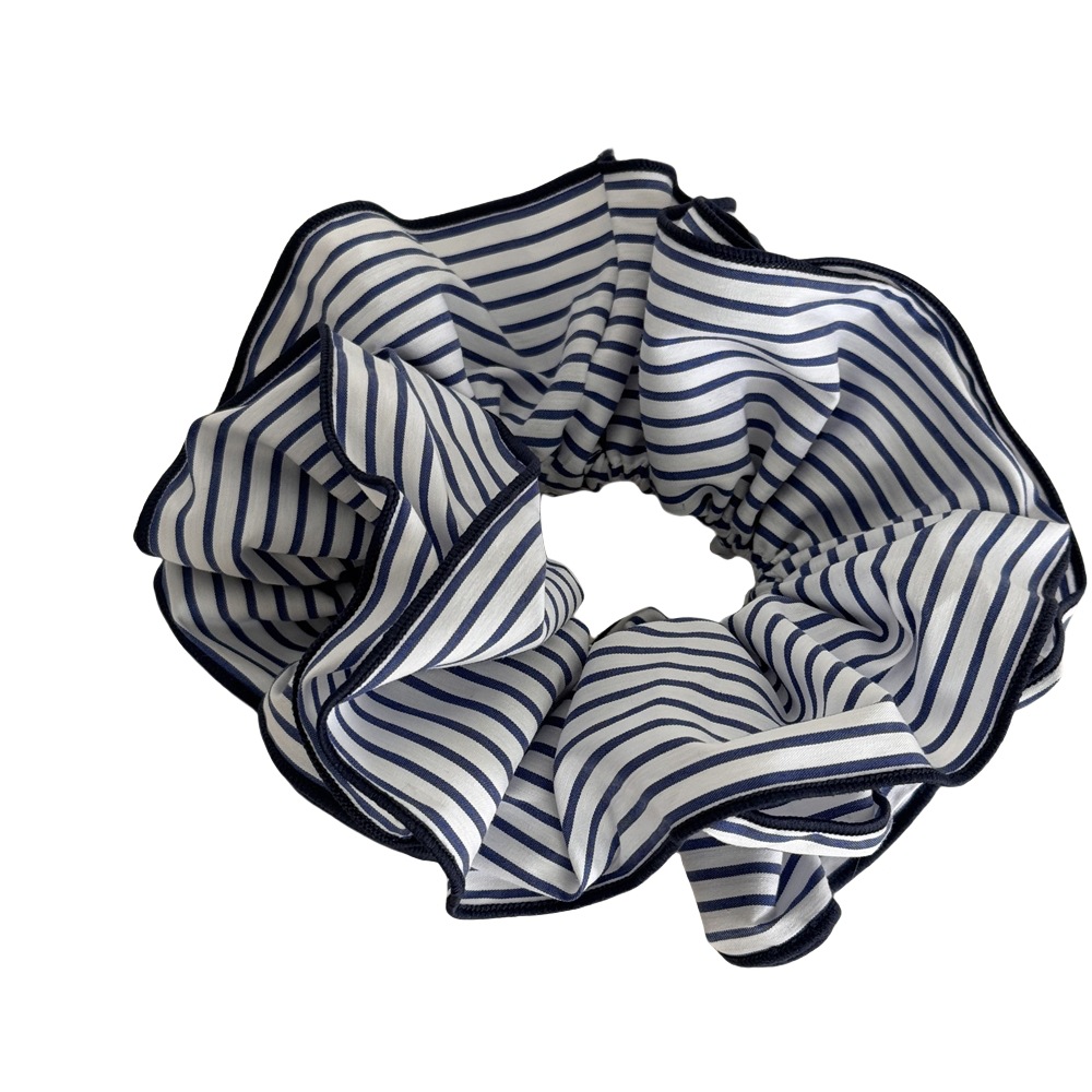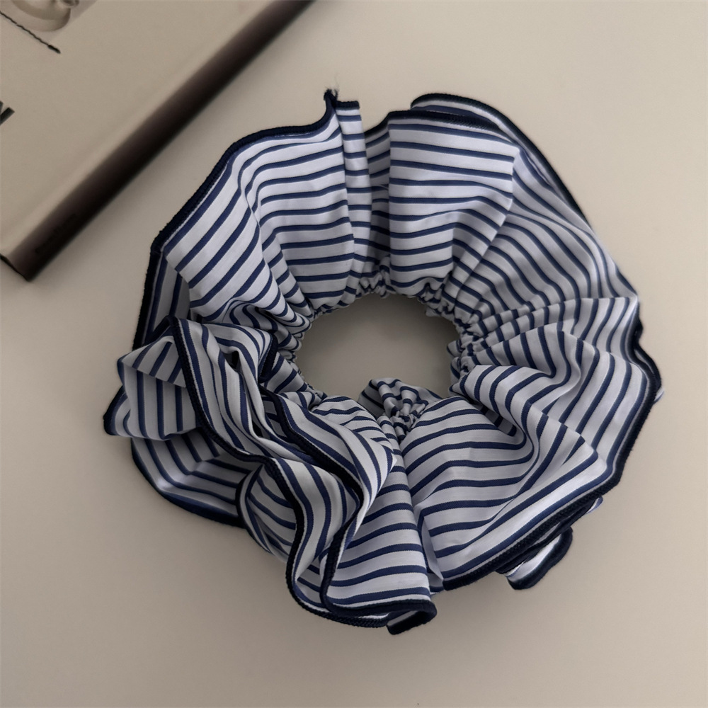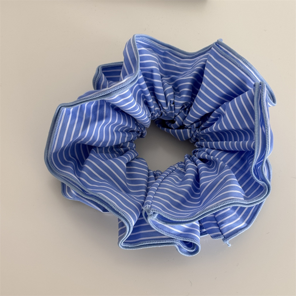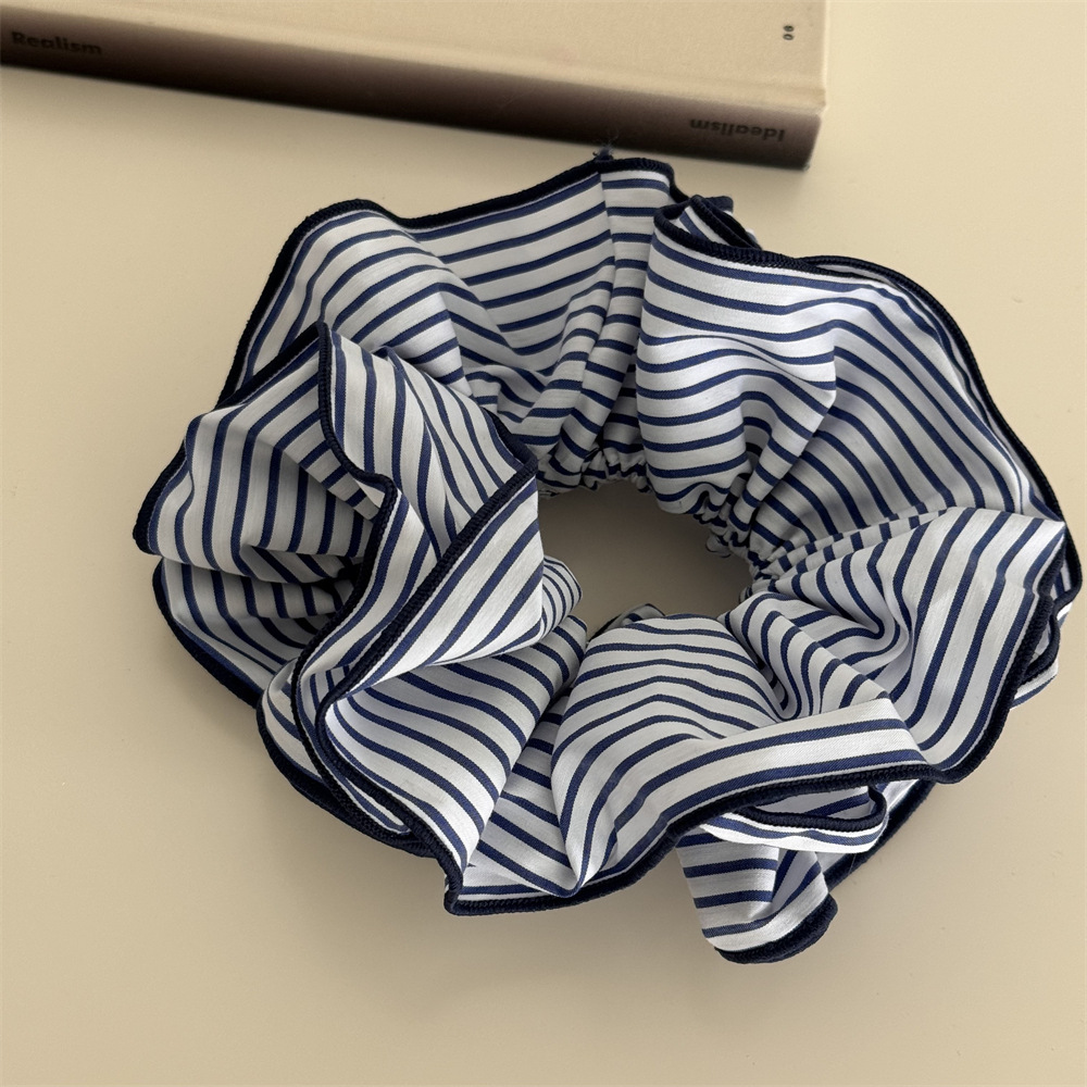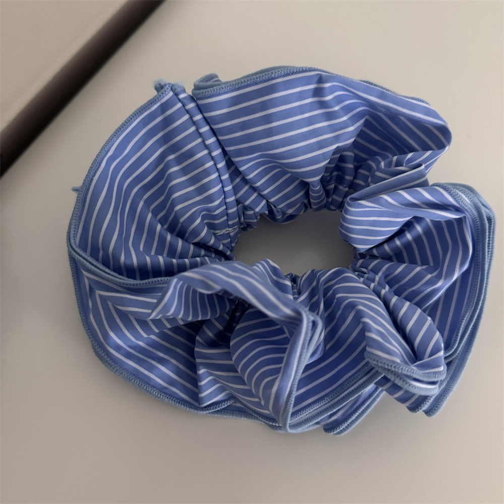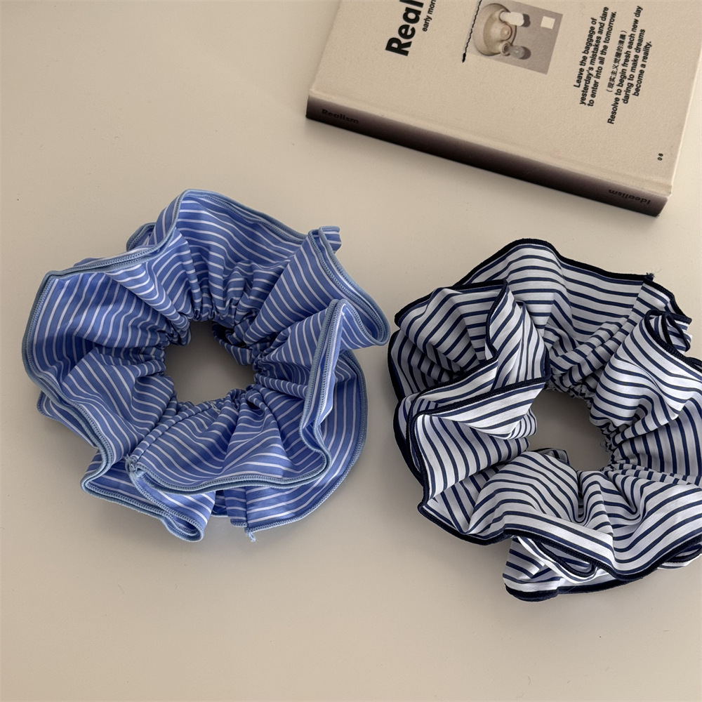 质感高级时髦条纹布艺大肠圈发圈清爽蓝色气质低马尾发绳发饰新款