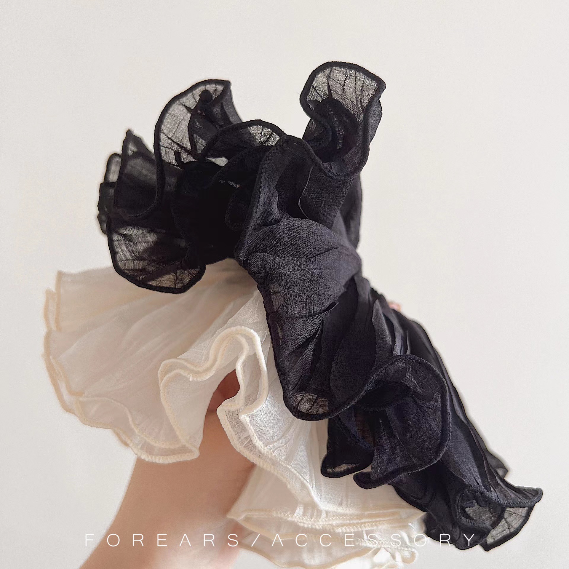 韩国褶皱超大发圈高级感大肠圈黑白头绳头花百搭发饰简约大肠头绳