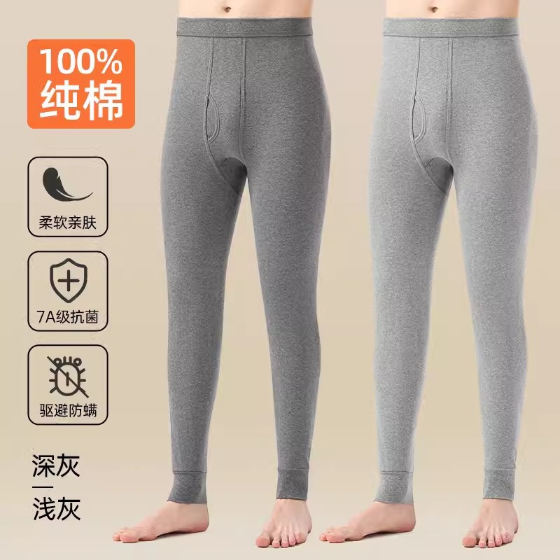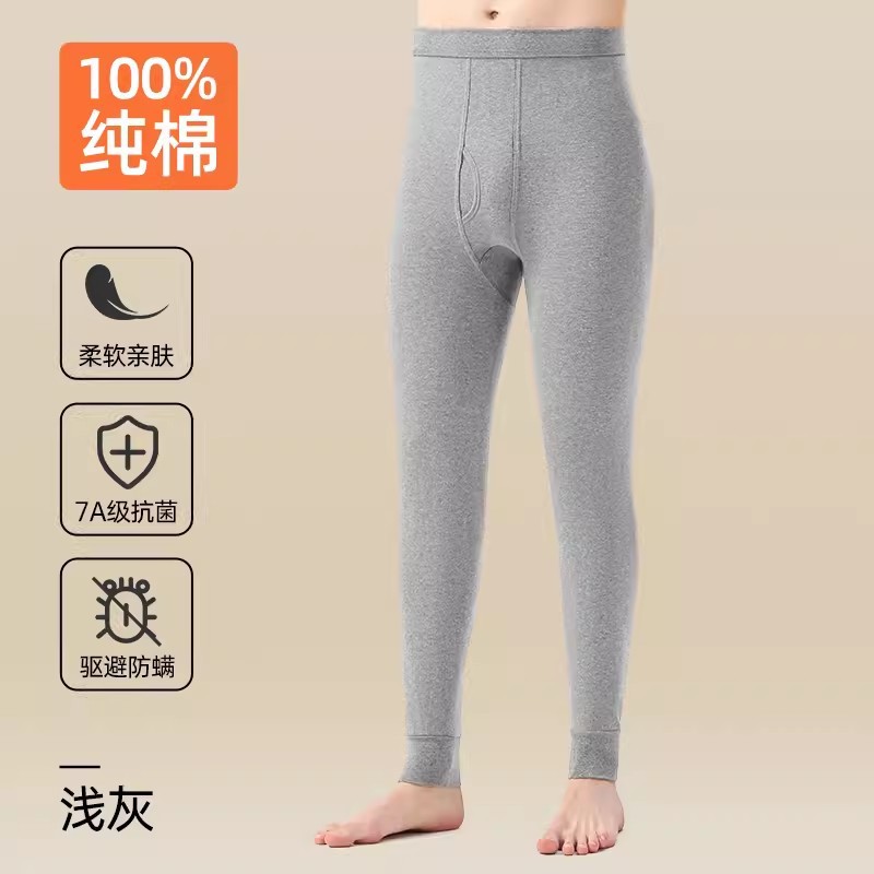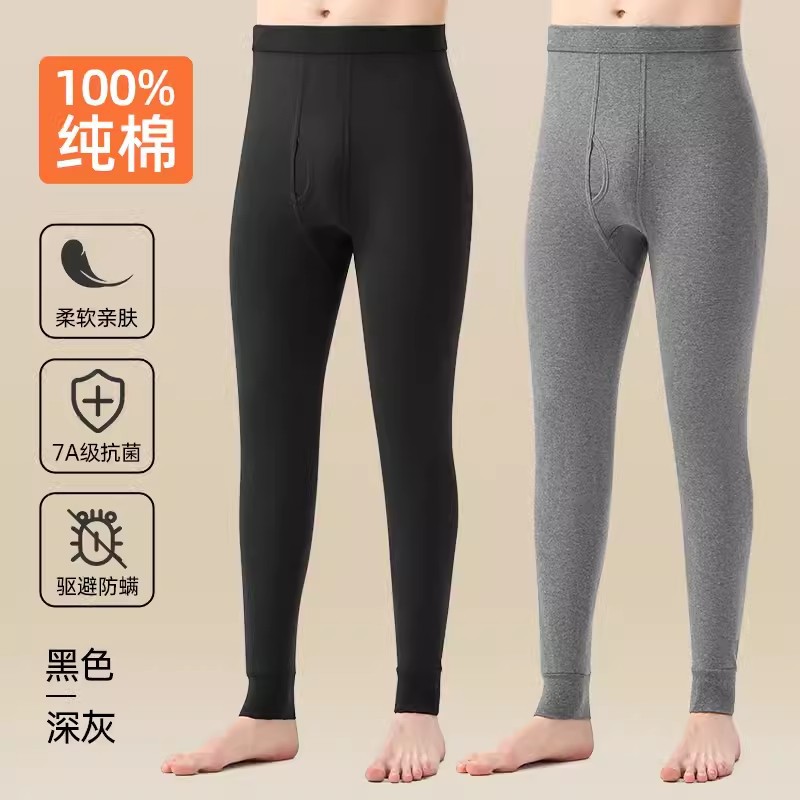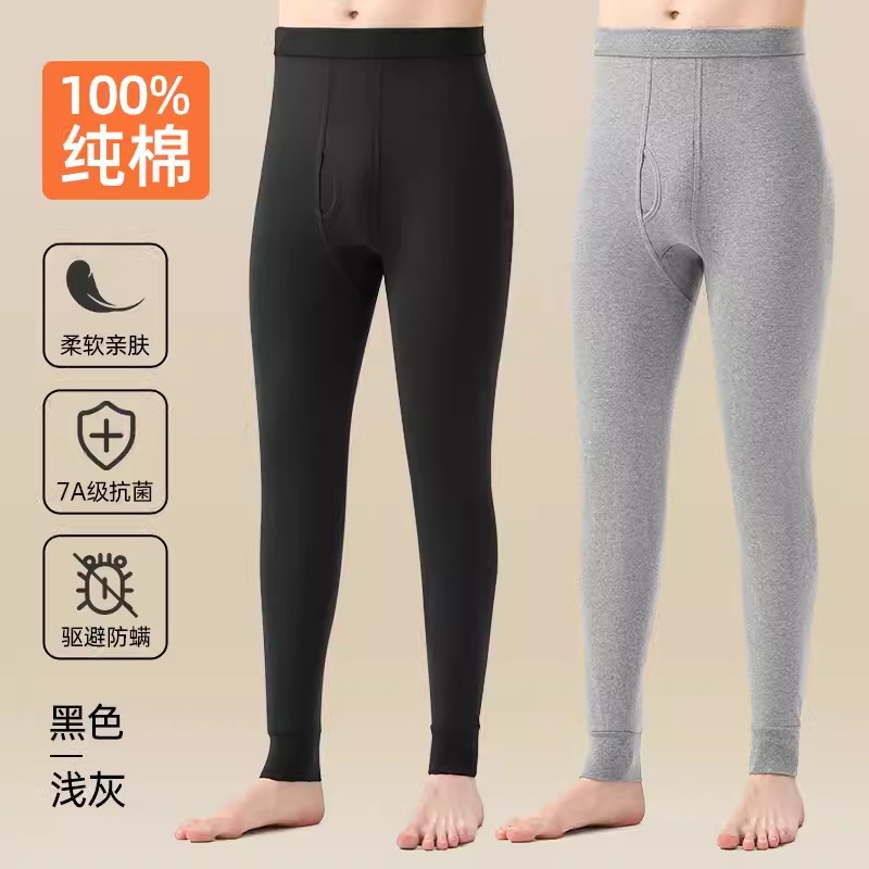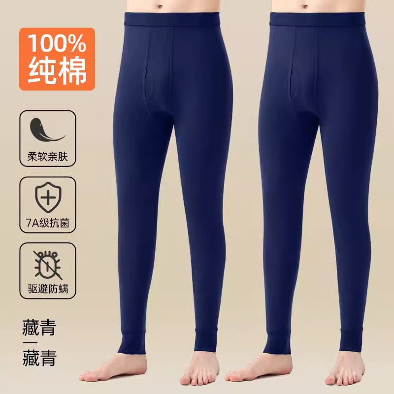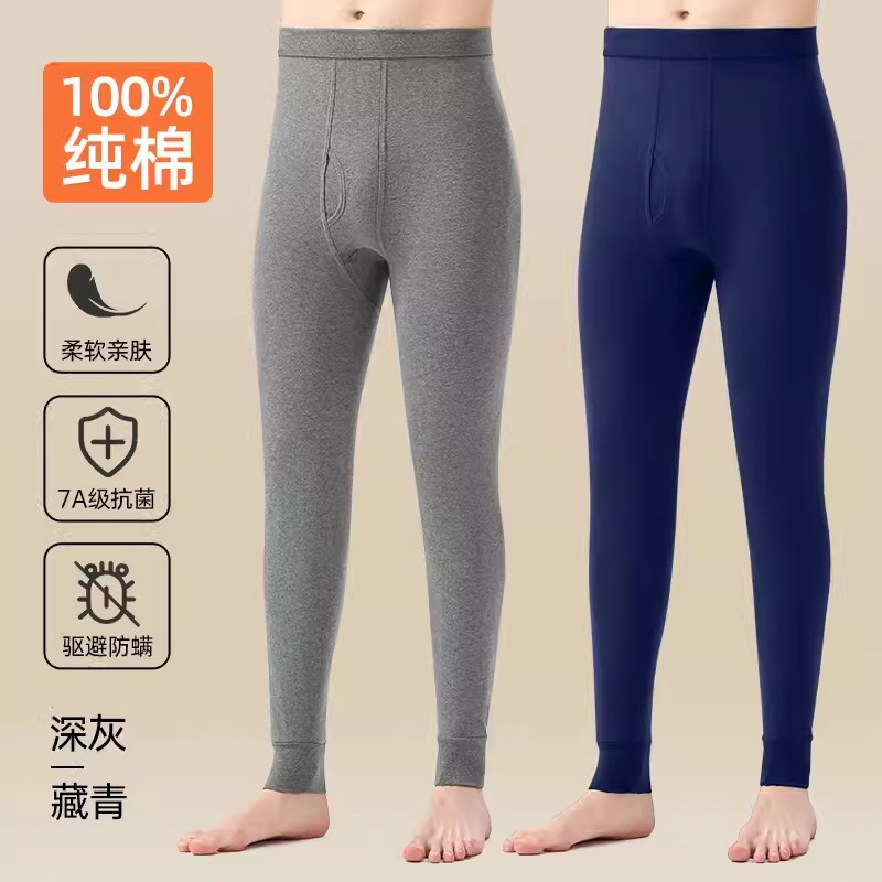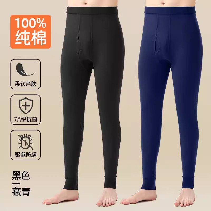 男士秋裤男单件纯棉修身纯色保暖裤中青年全棉衬裤薄款棉毛线裤