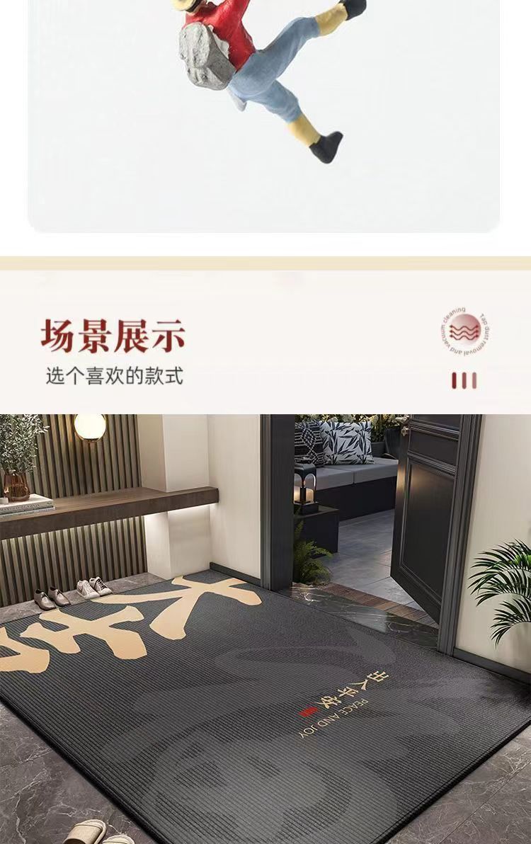 简约入户地垫灰色进门玄关耐脏脚垫中式大门口除尘耐脏门垫免洗垫