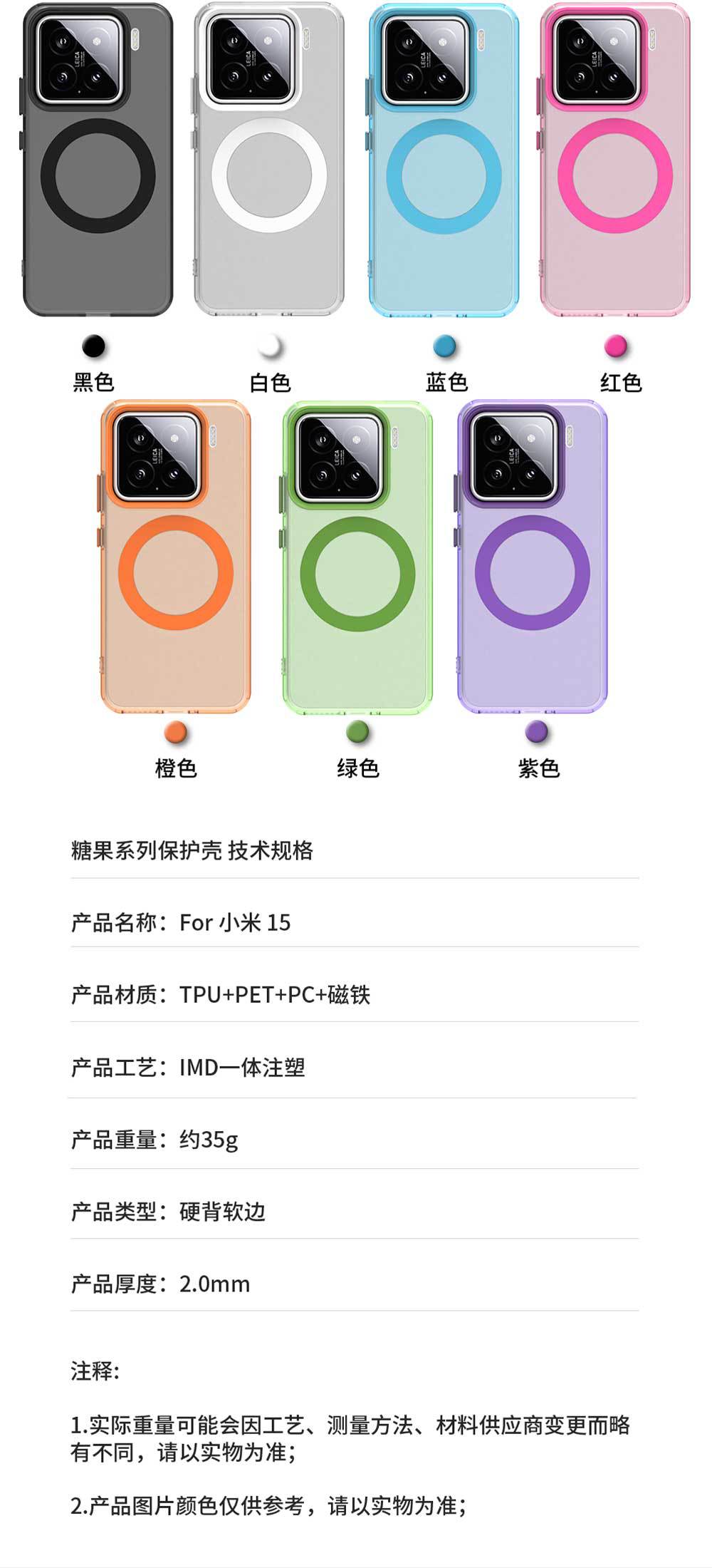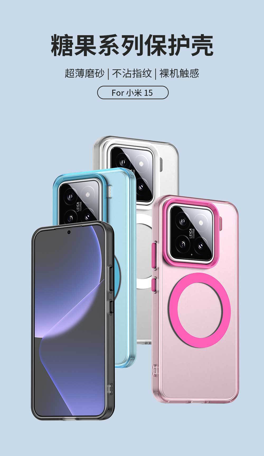 适用小米15磁吸手机壳小米15肤感磨砂防摔新品时尚保护套工厂批发