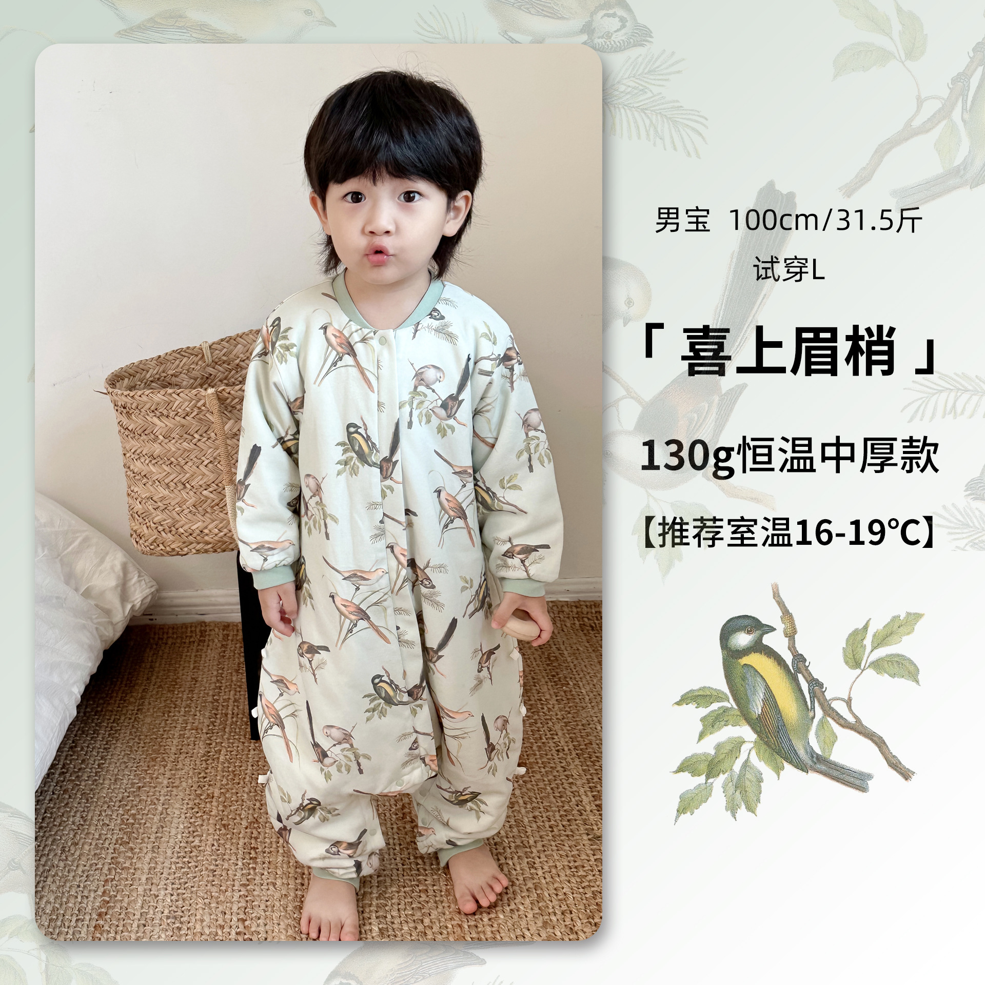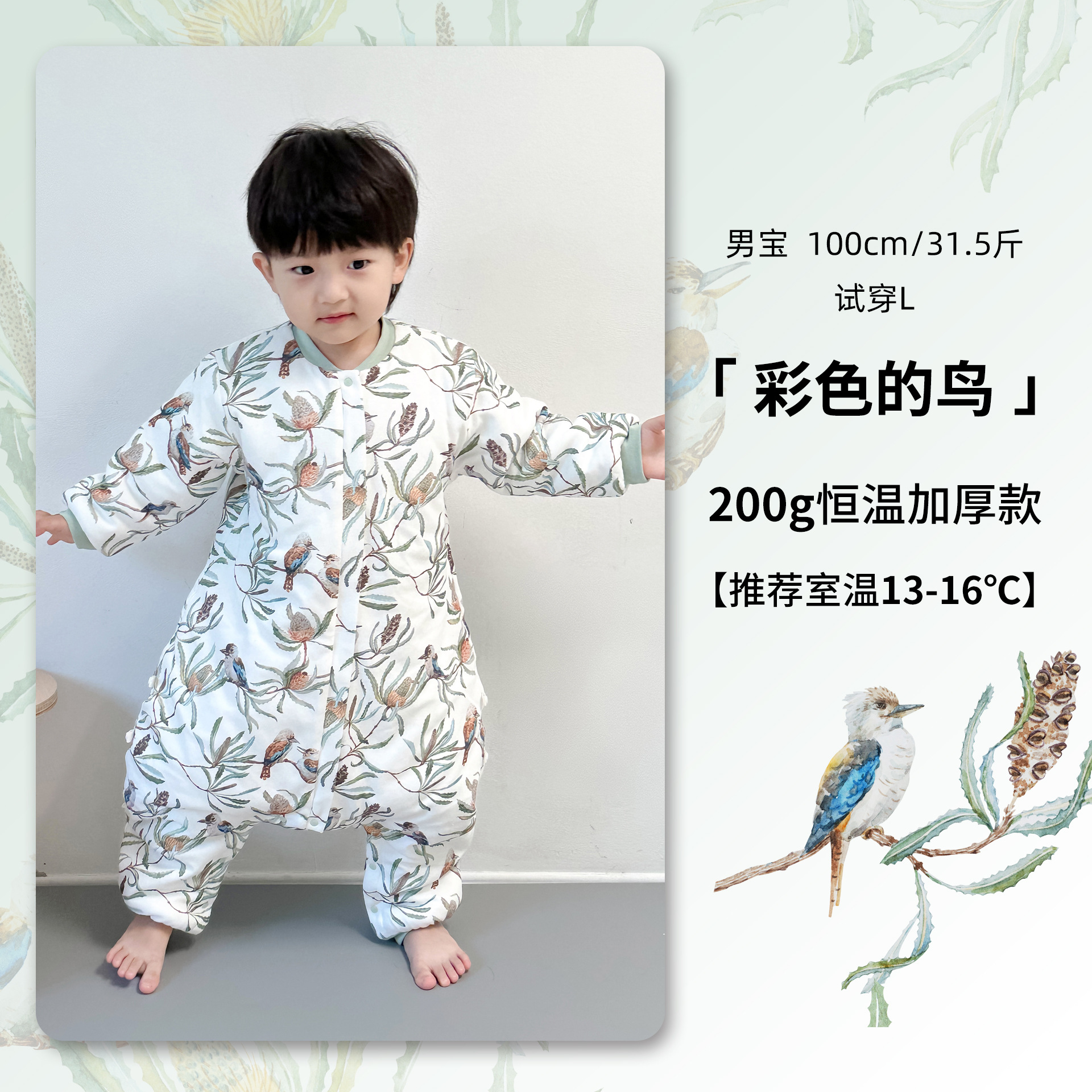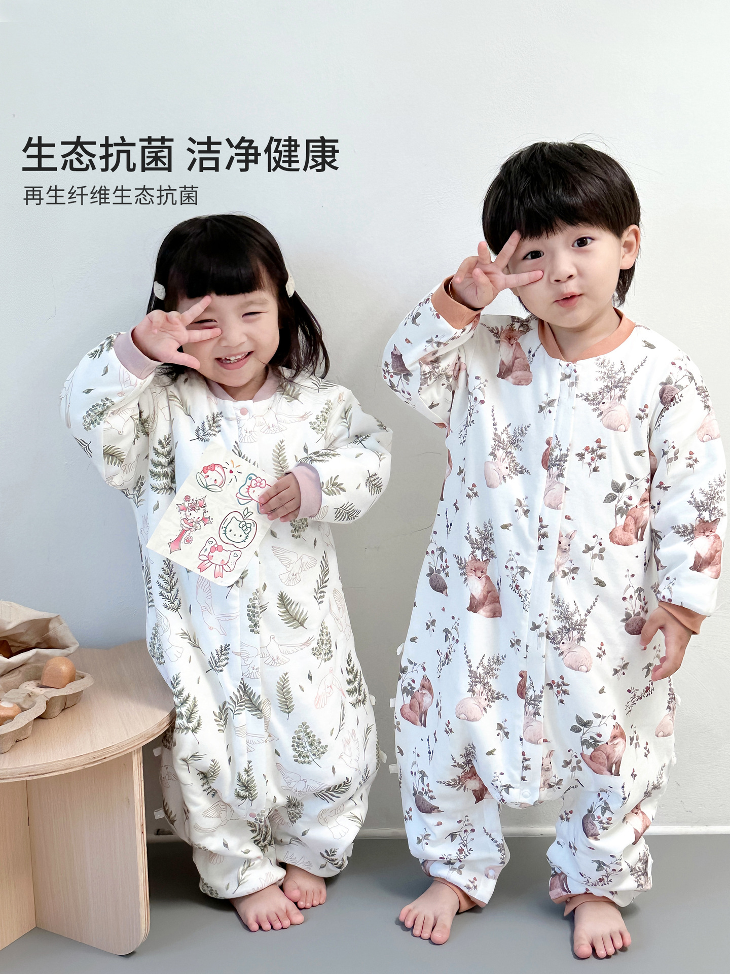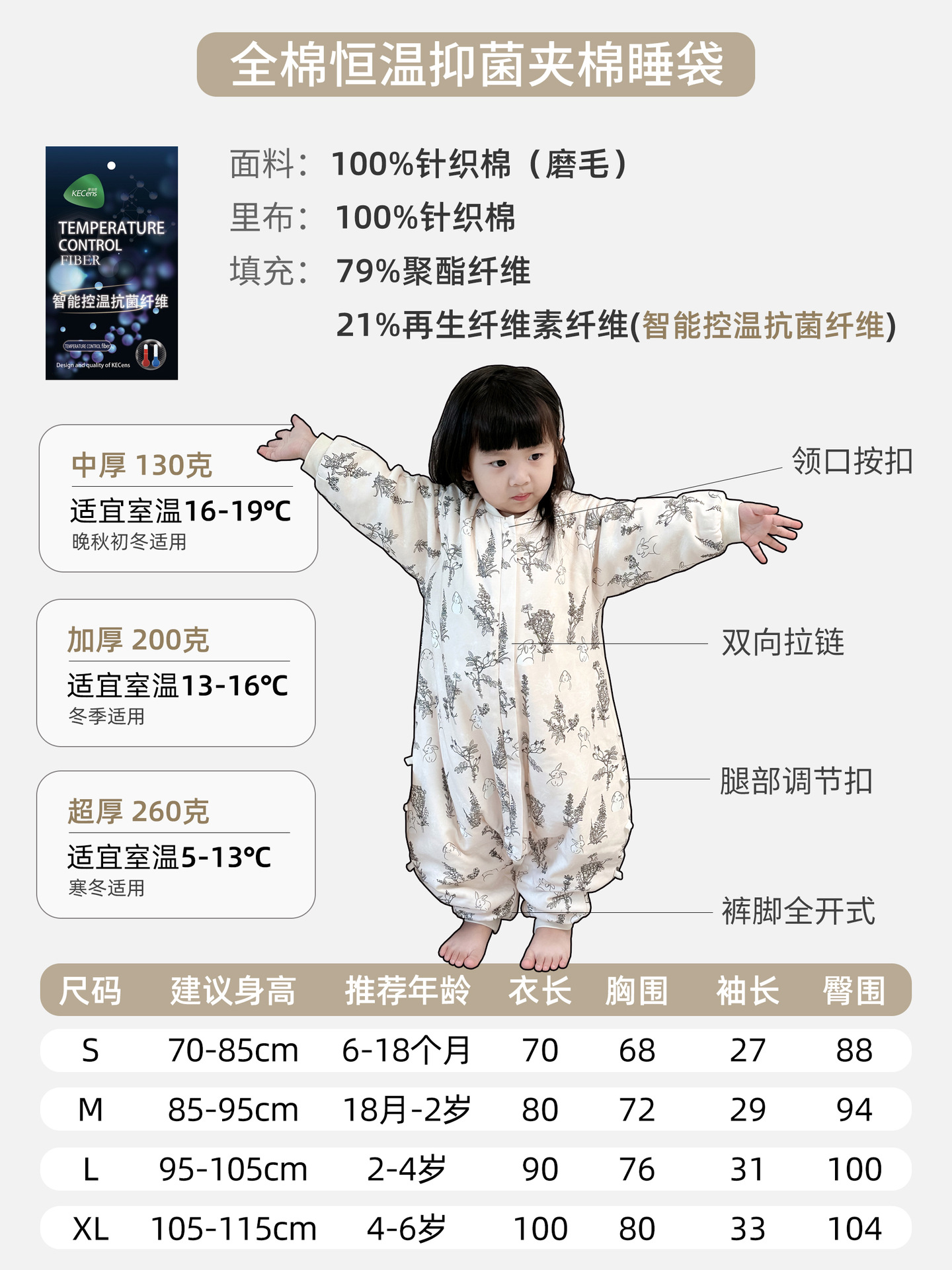婴儿恒温睡袋纯棉厚款 婴幼儿女童夹棉秋冬a类儿童宝宝分腿防踢被