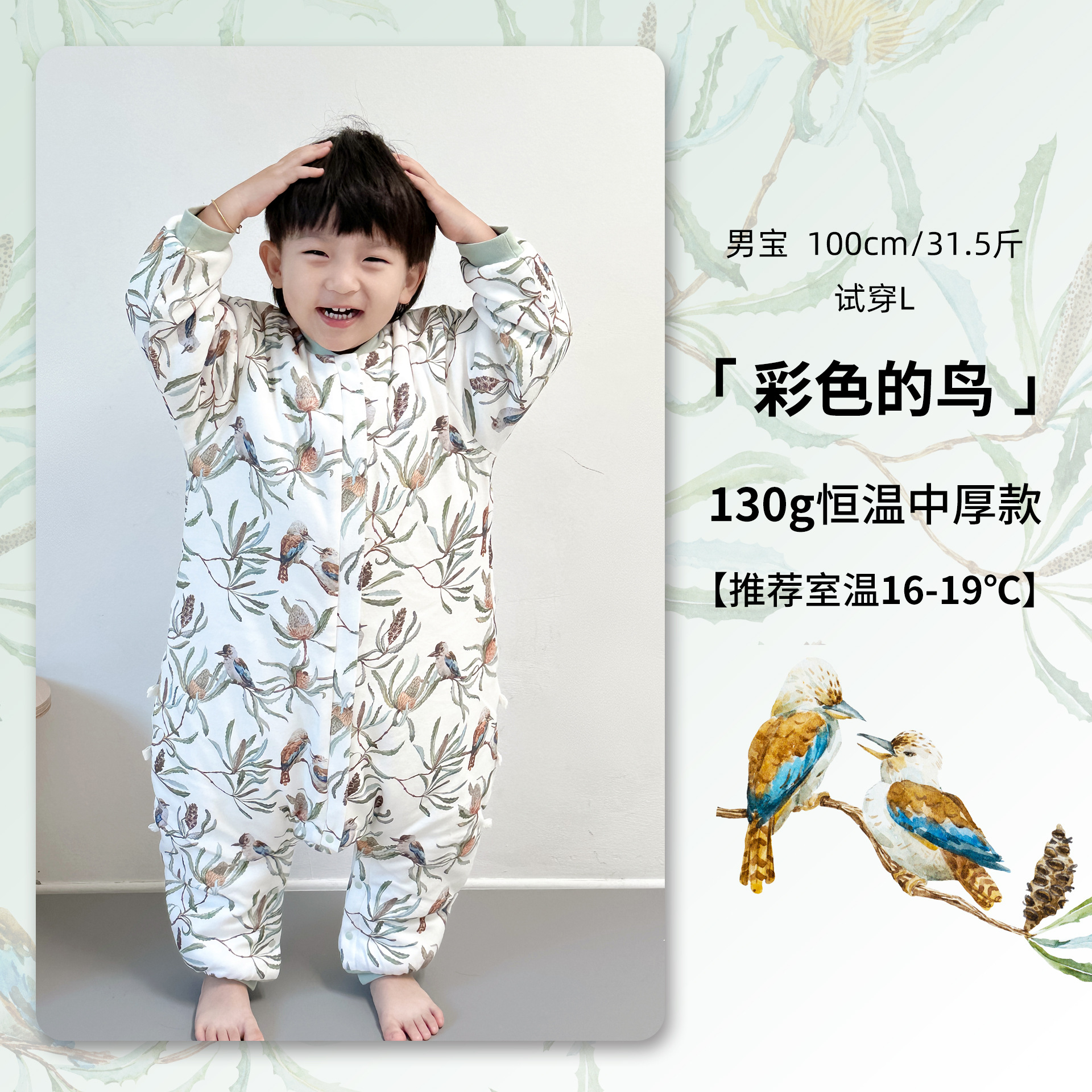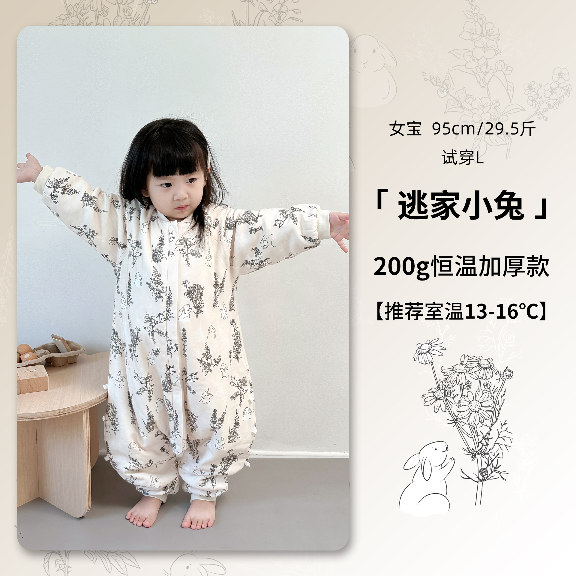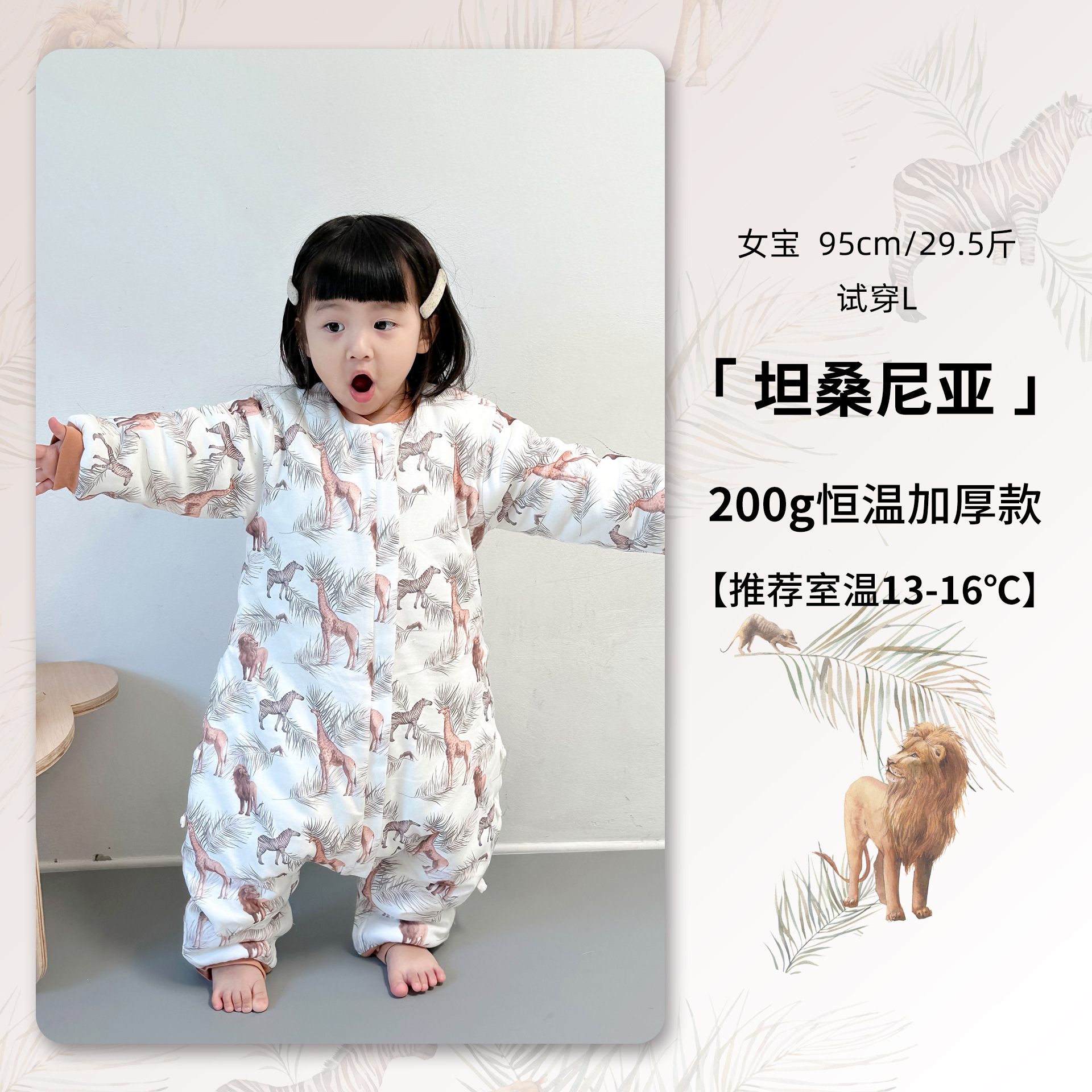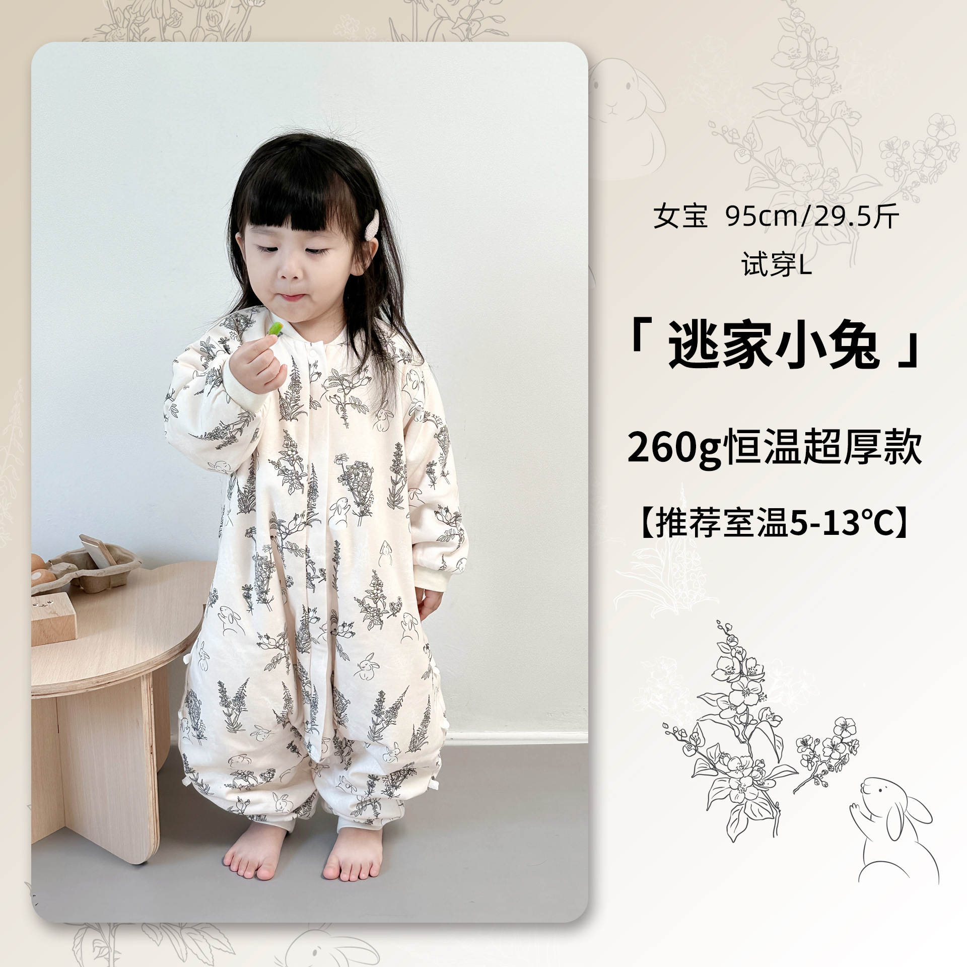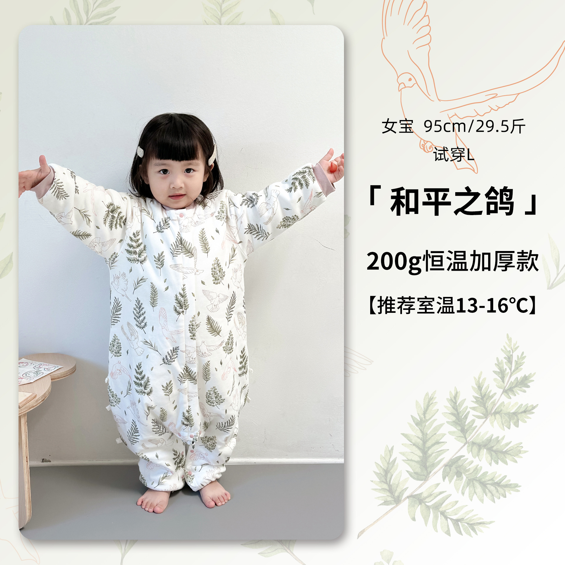 婴儿恒温睡袋纯棉厚款 婴幼儿女童夹棉秋冬a类儿童宝宝分腿防踢被