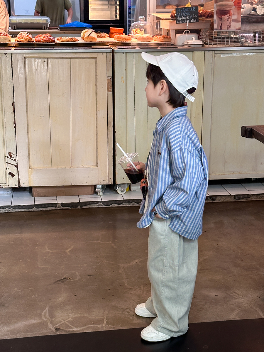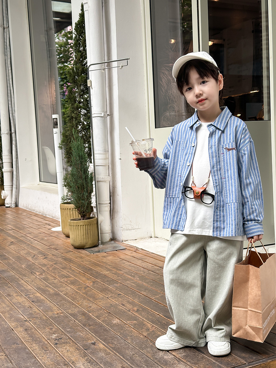 艾摩贝贝儿童衬衫2024秋男童帅气竖条纹刺绣翻领上衣中大童衬衣潮