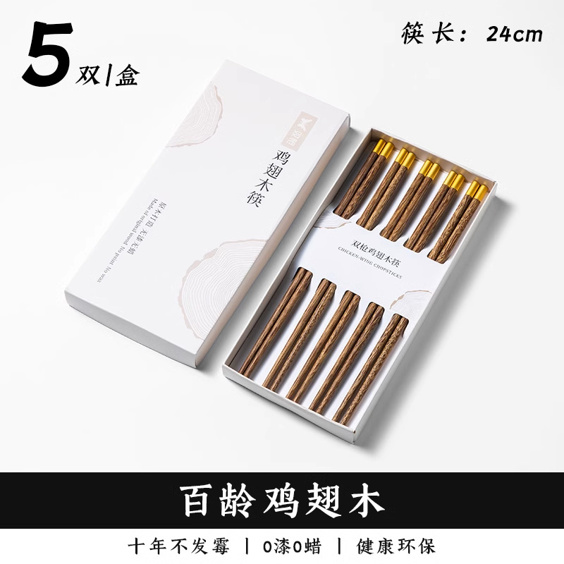 双枪鸡翅木套装筷子家用无漆无蜡实木餐具礼品木筷子10双LOGO木筷