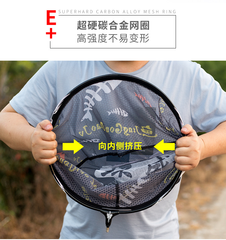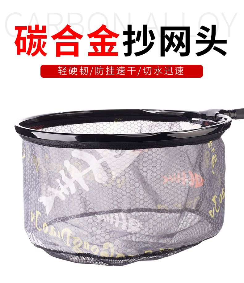 竞技碳素抄网头碳素不挂钩黑坑纳米超轻钛合金实心加深钓鱼网兜