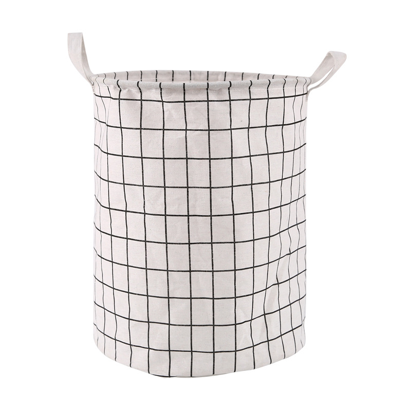 家用布艺脏衣篓收纳筐圆形棉麻脏衣篮玩具杂物格子储物可折叠洗衣