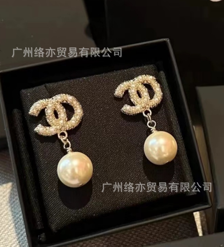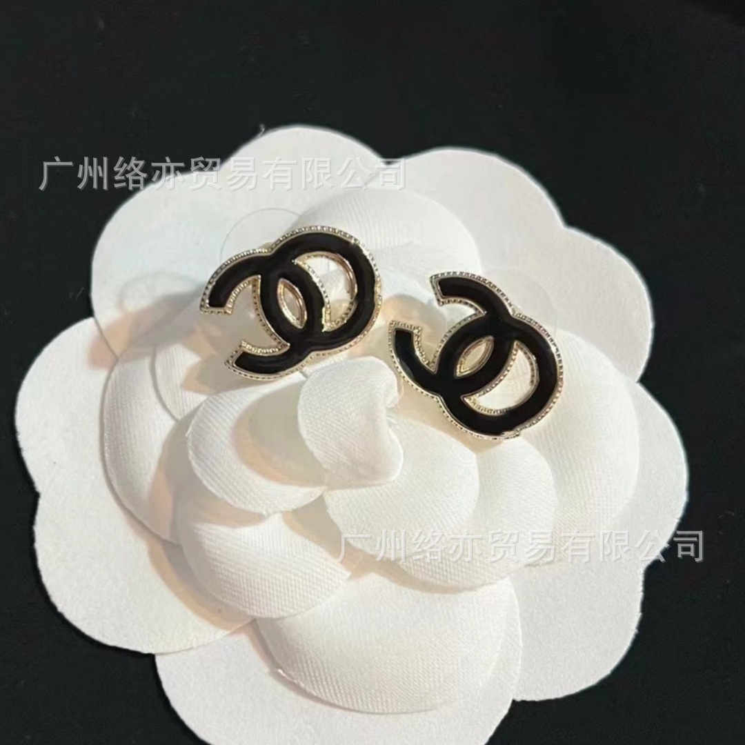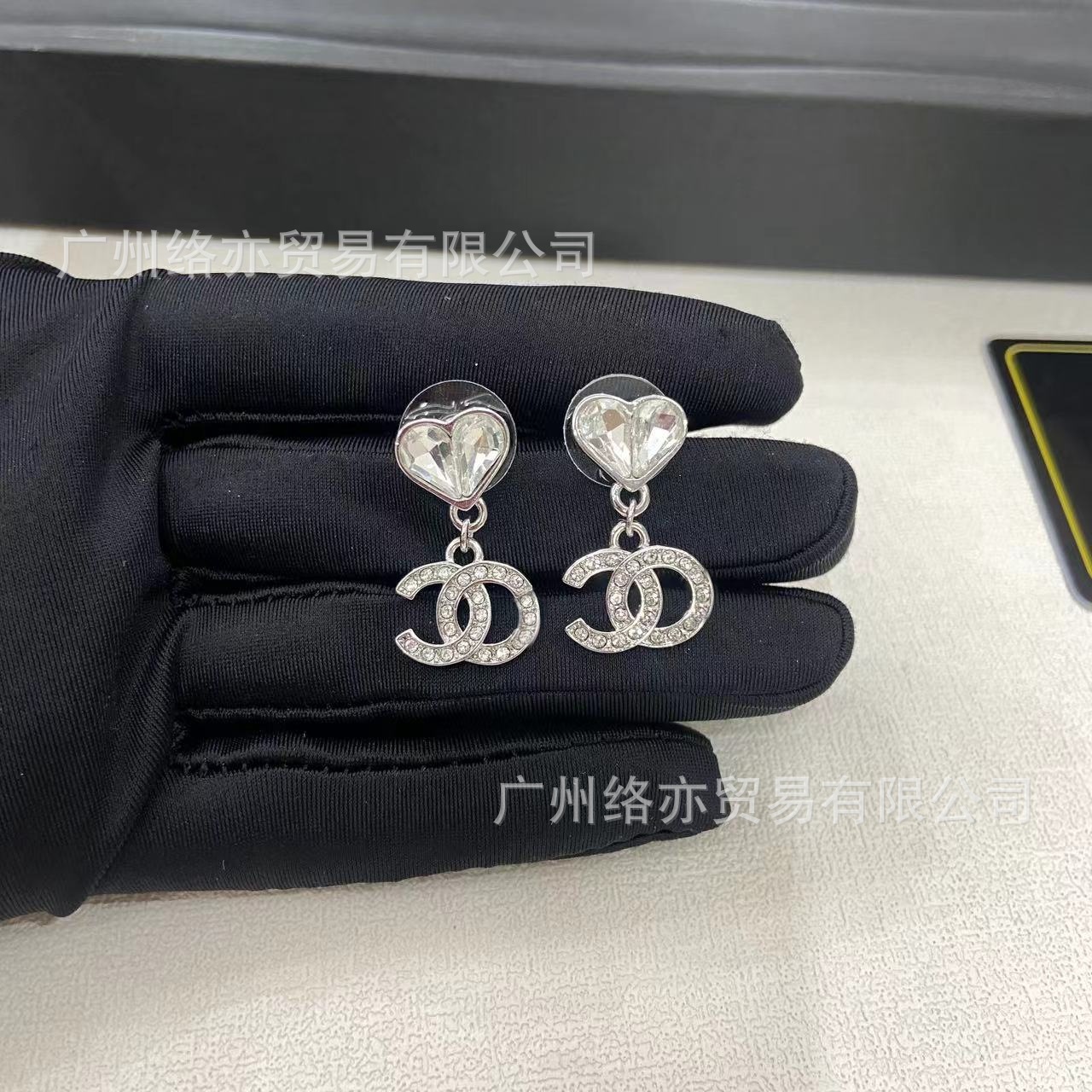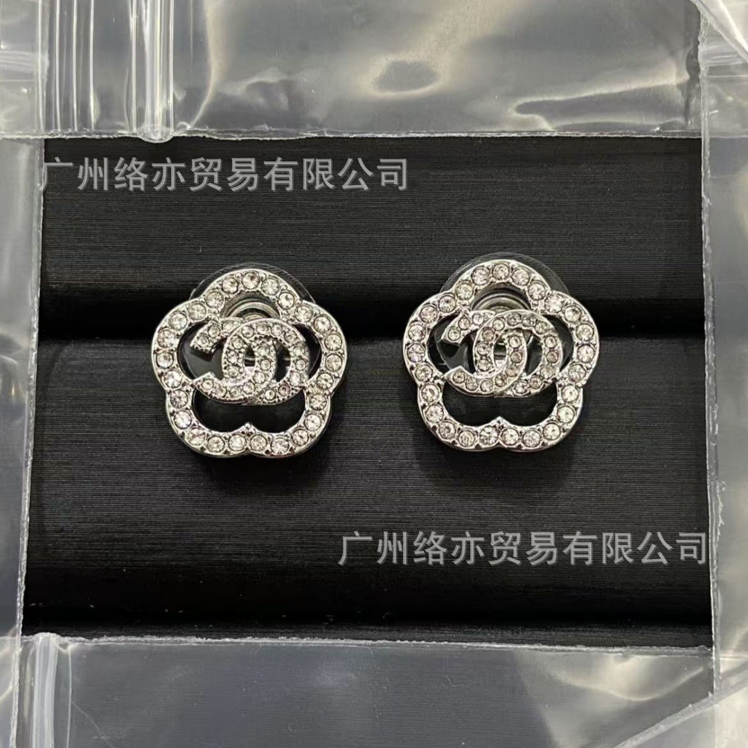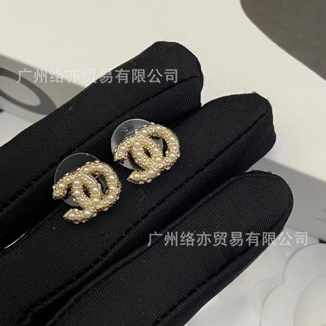高版本香家镶钻双C耳钉爱心心形香奶奶耳钉时尚百搭小香风耳饰女