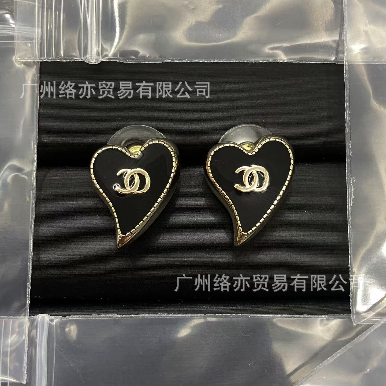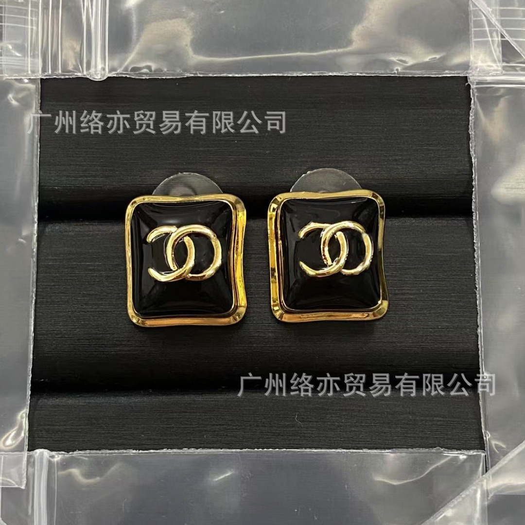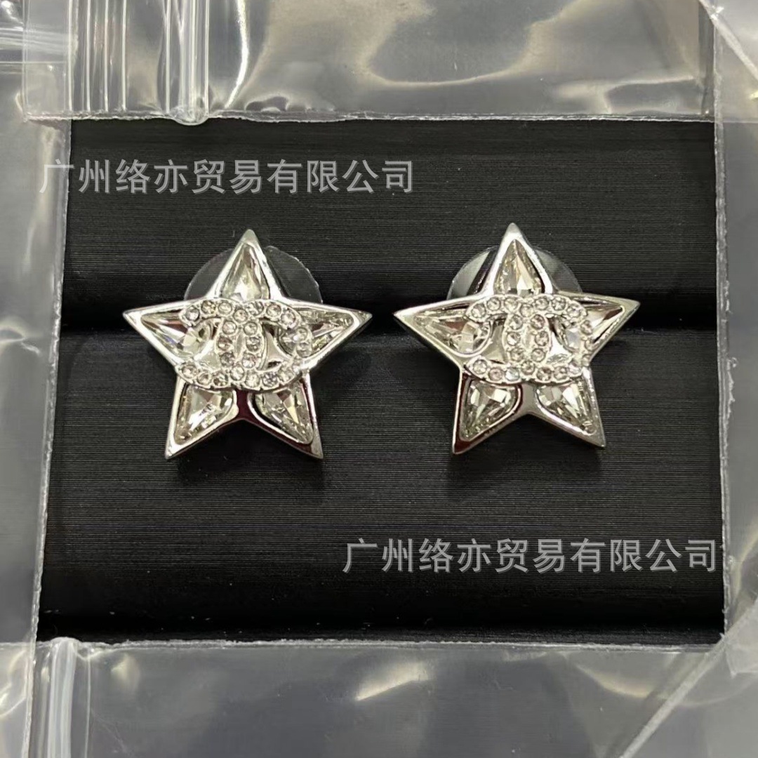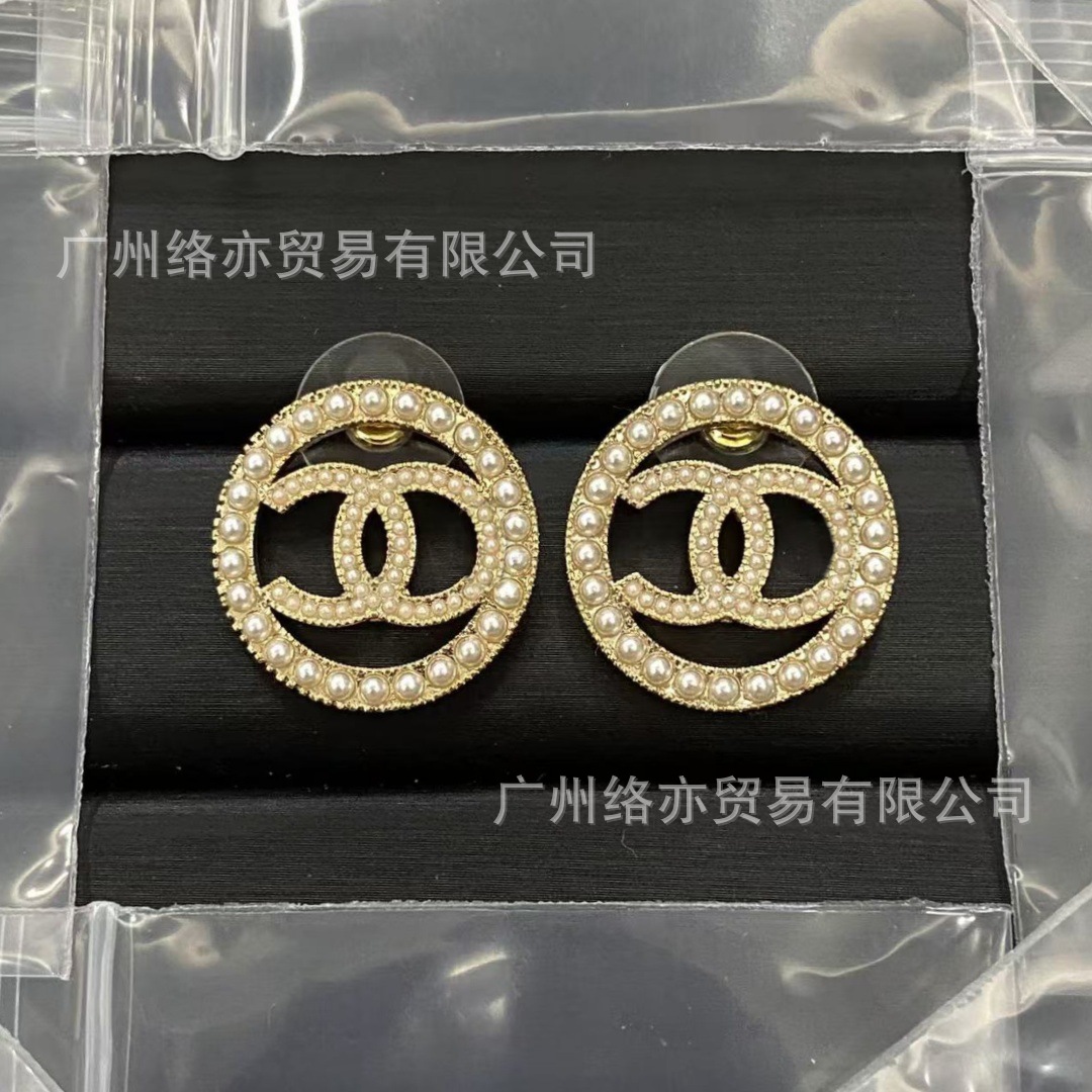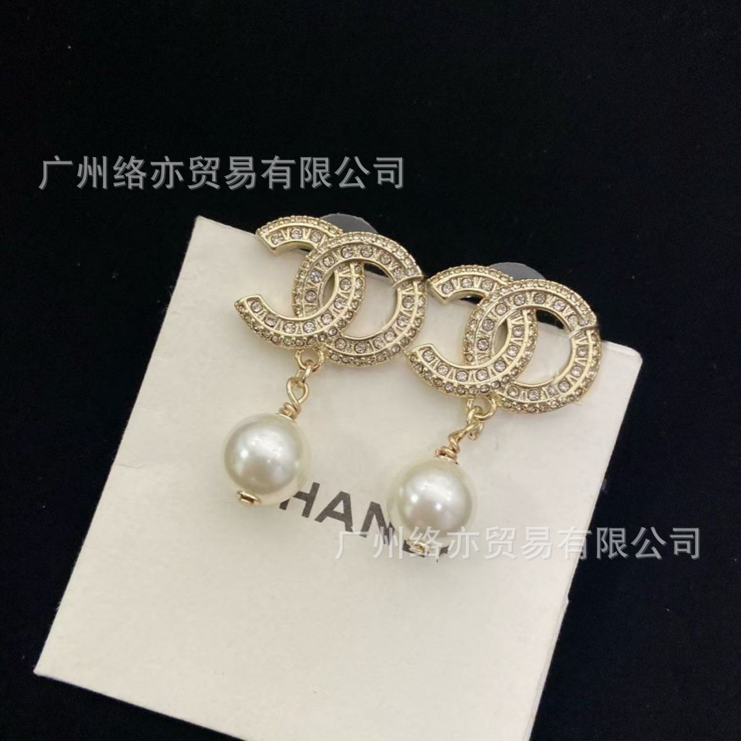 高版本香家镶钻双C耳钉爱心心形香奶奶耳钉时尚百搭小香风耳饰女