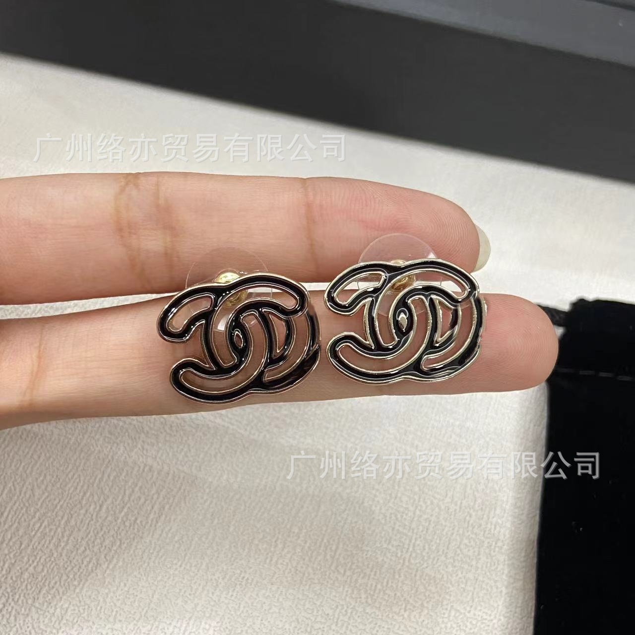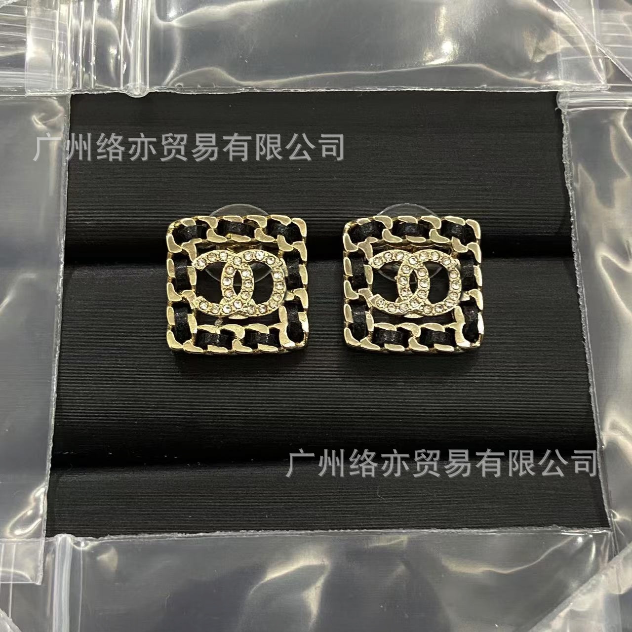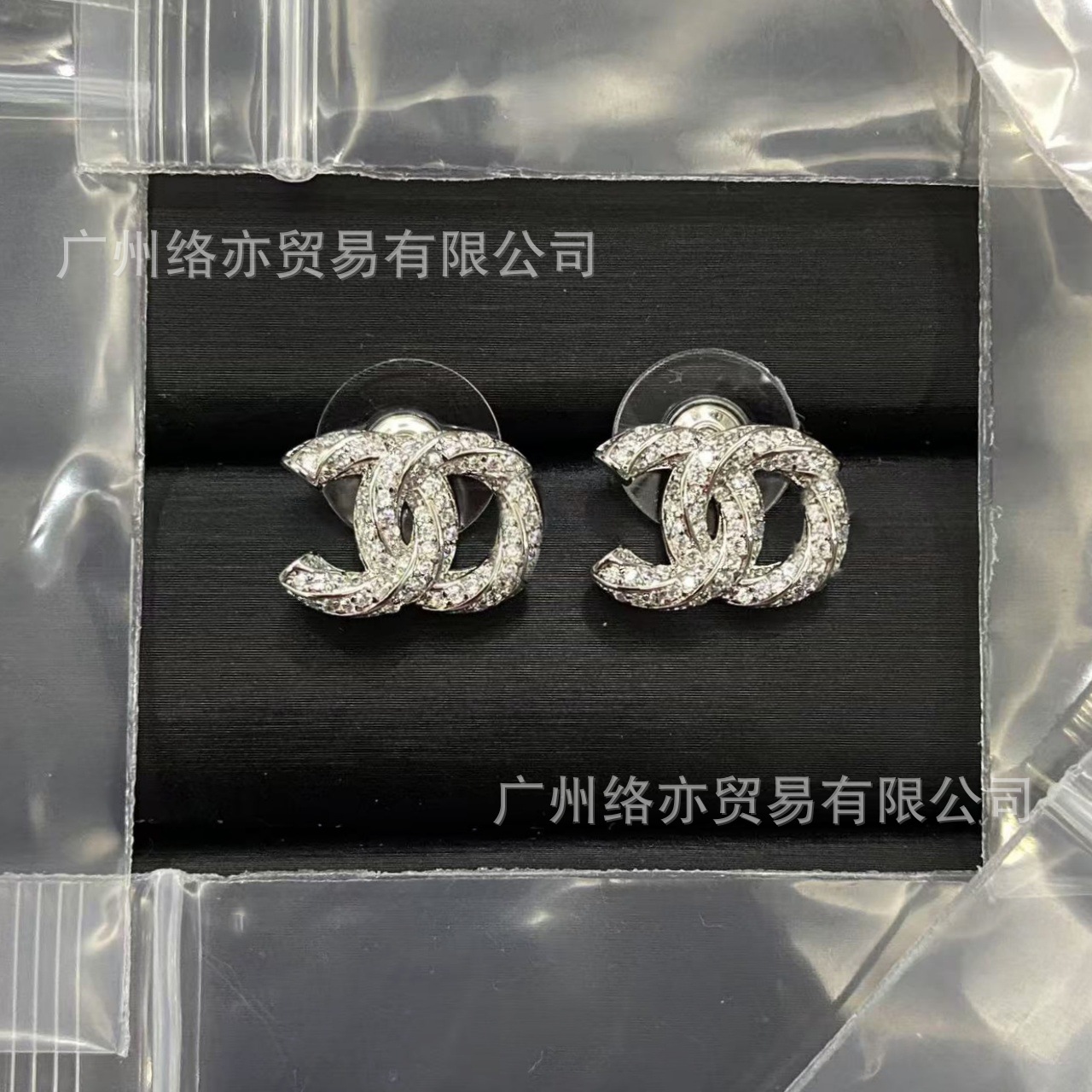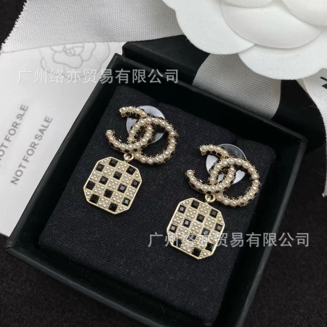 高版本香家镶钻双C耳钉爱心心形香奶奶耳钉时尚百搭小香风耳饰女