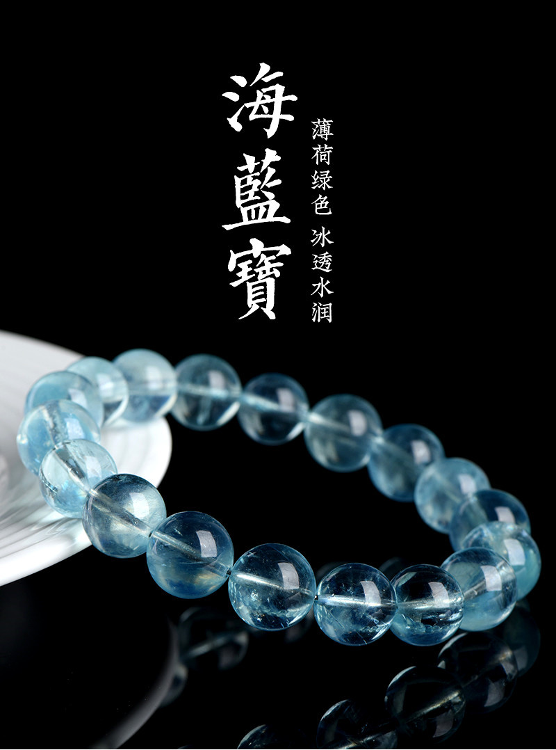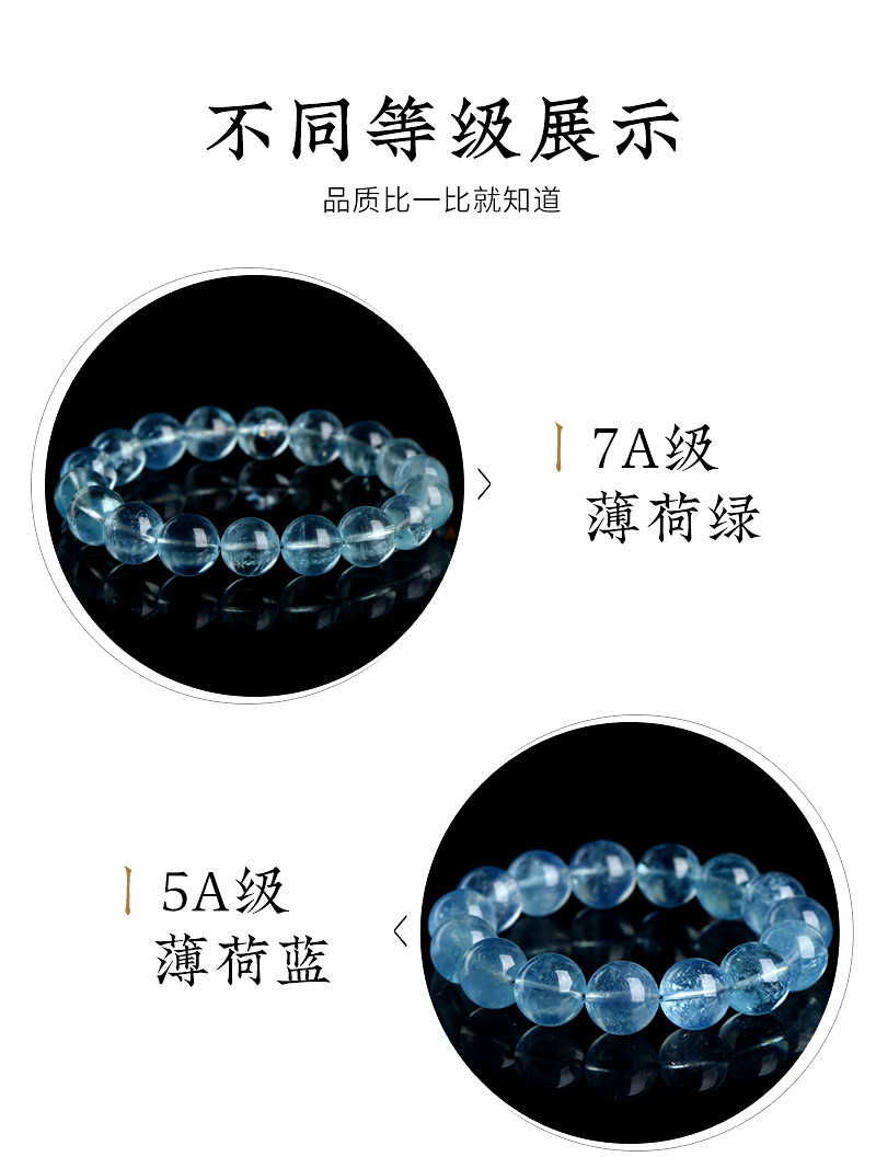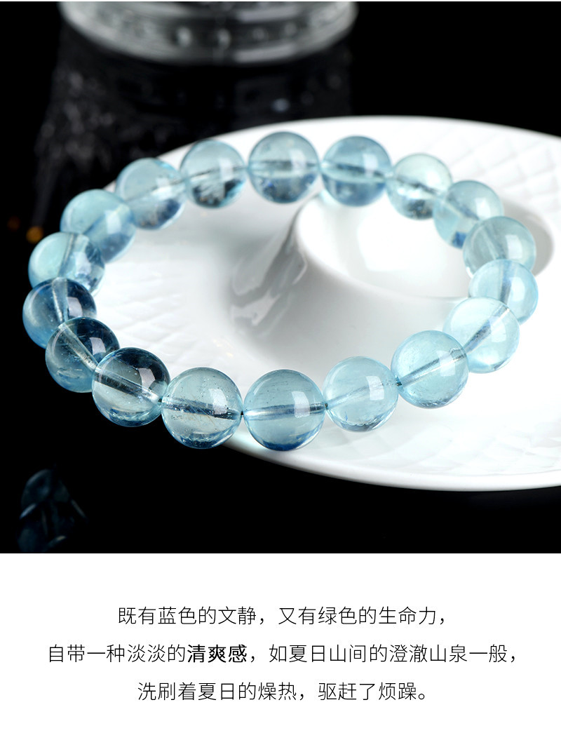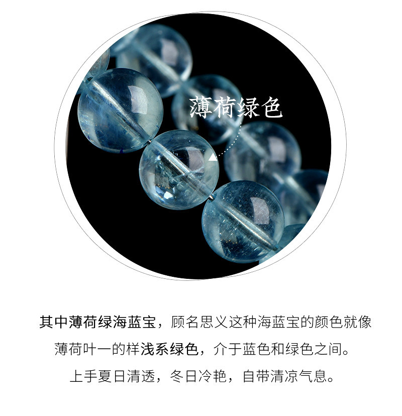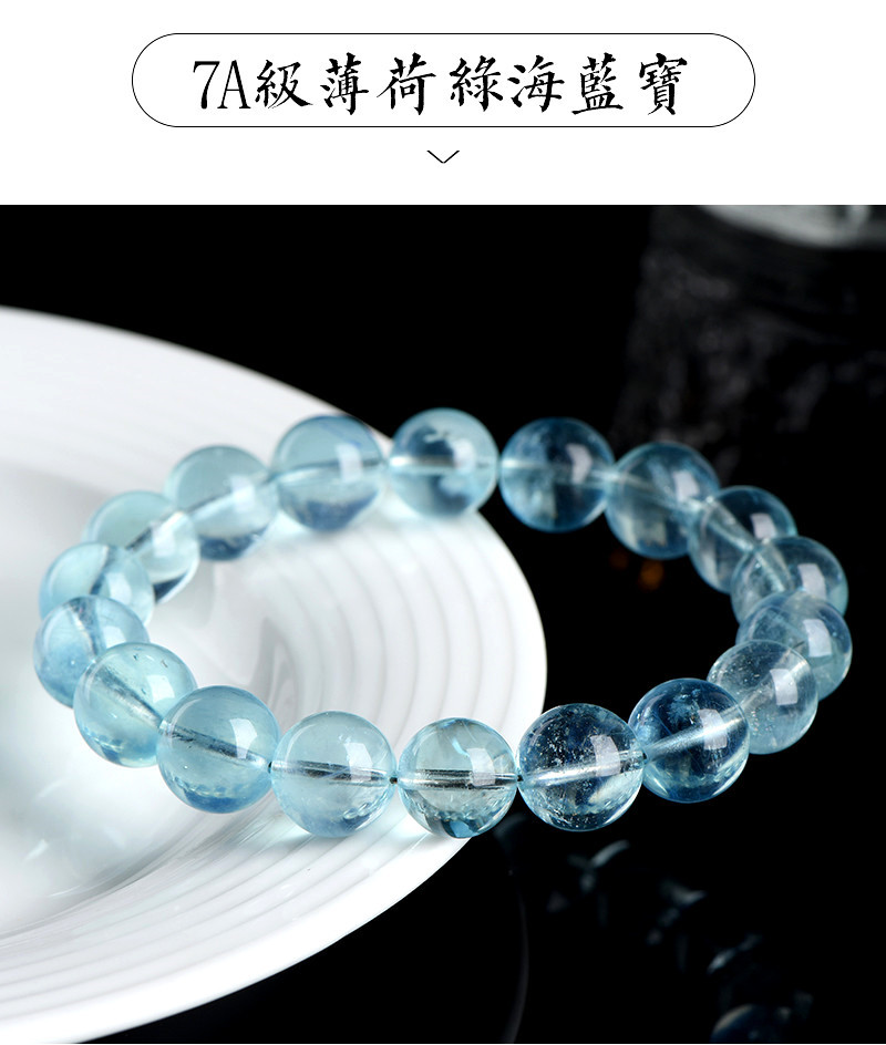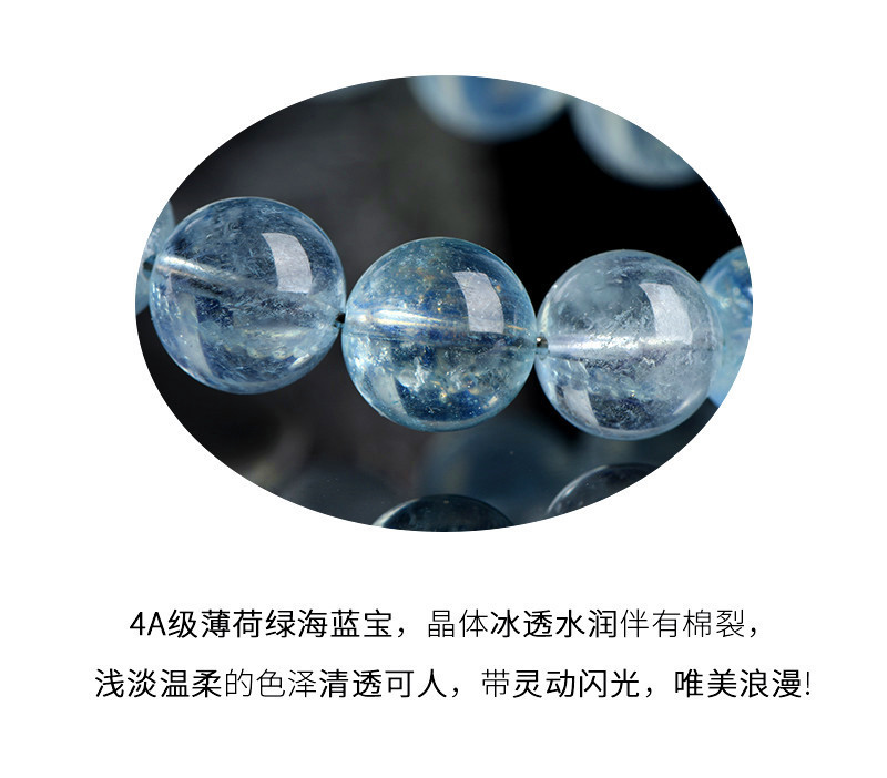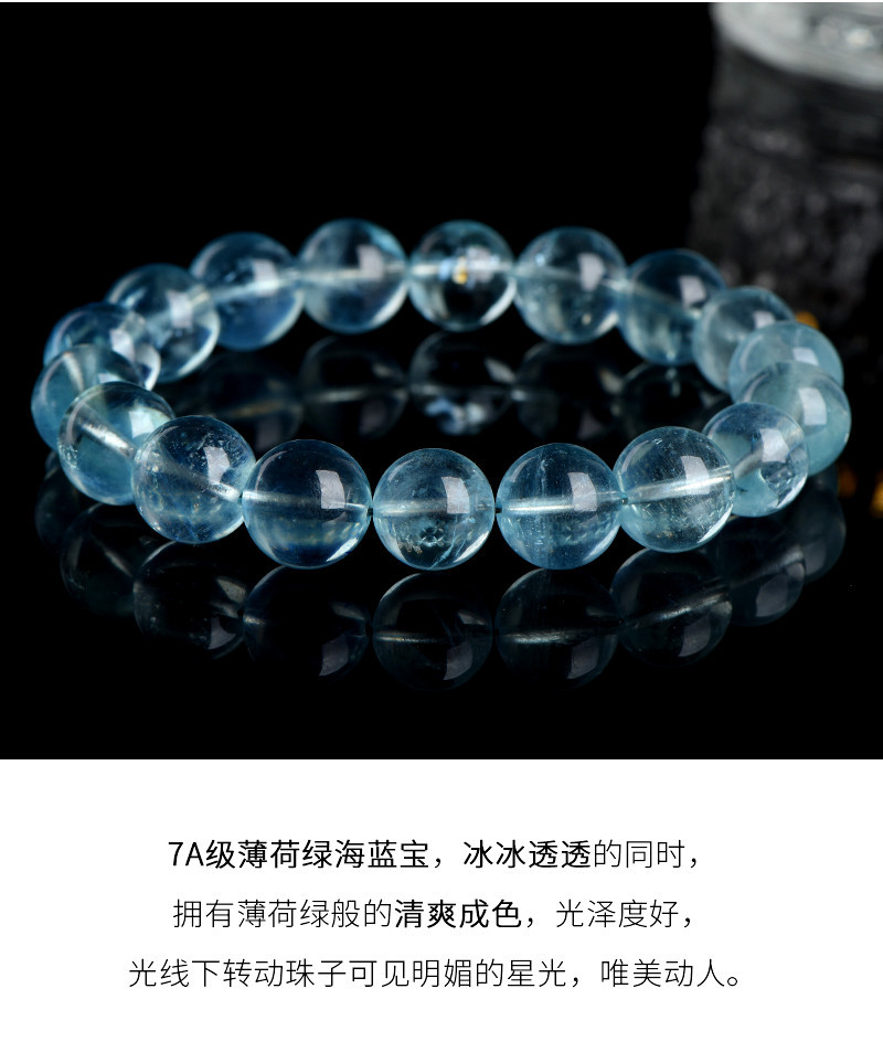 久雅水晶 天然7A级薄荷绿色海蓝宝圆珠手串 冰种绿色海蓝宝手链