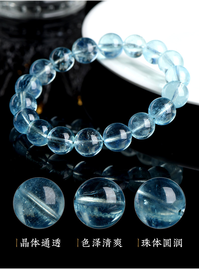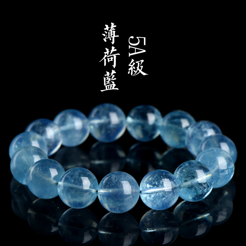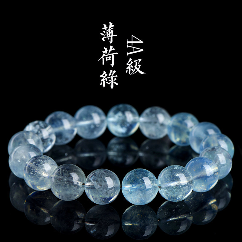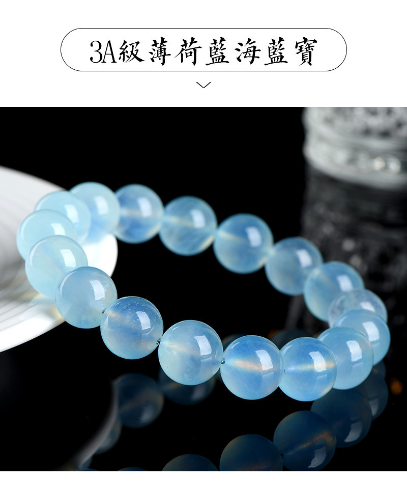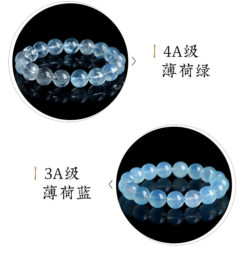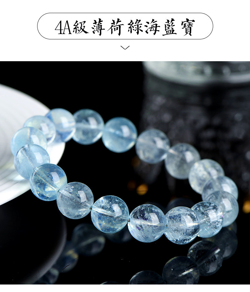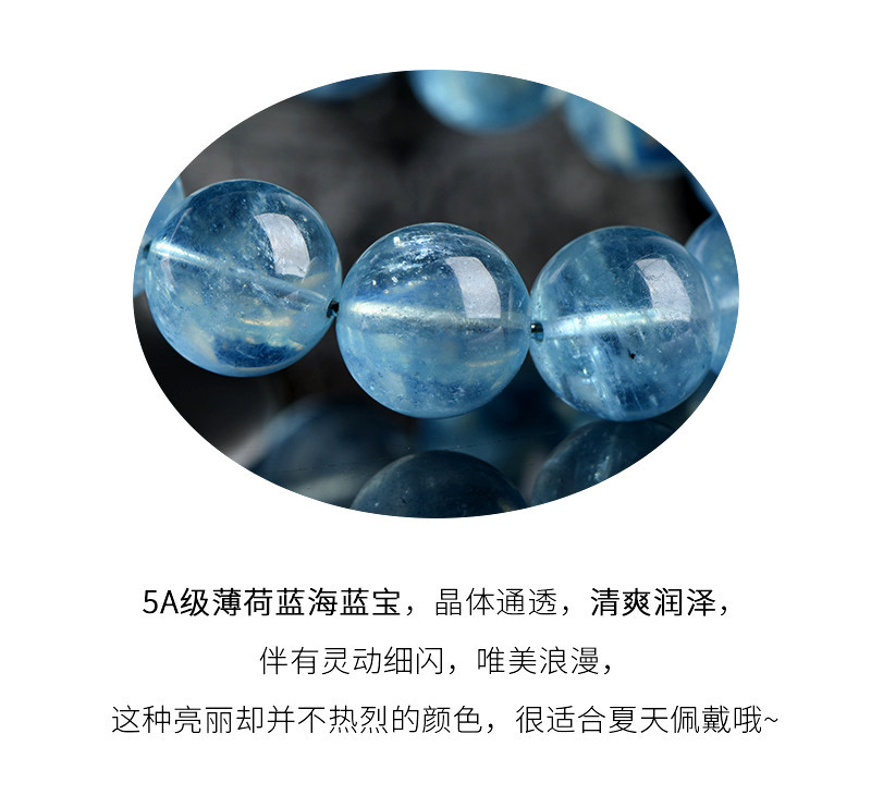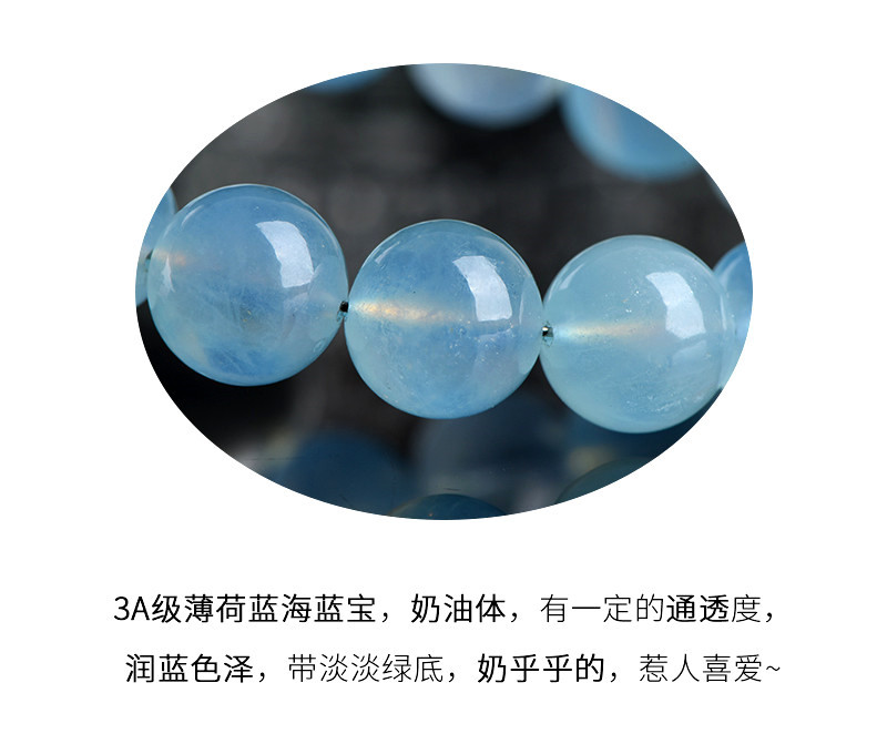 久雅水晶 天然7A级薄荷绿色海蓝宝圆珠手串 冰种绿色海蓝宝手链