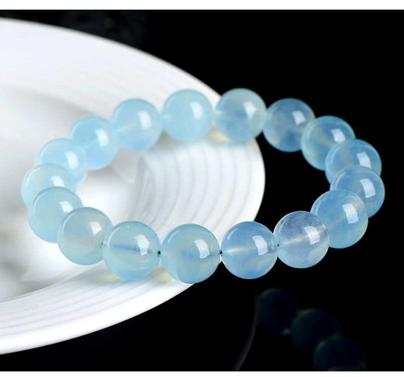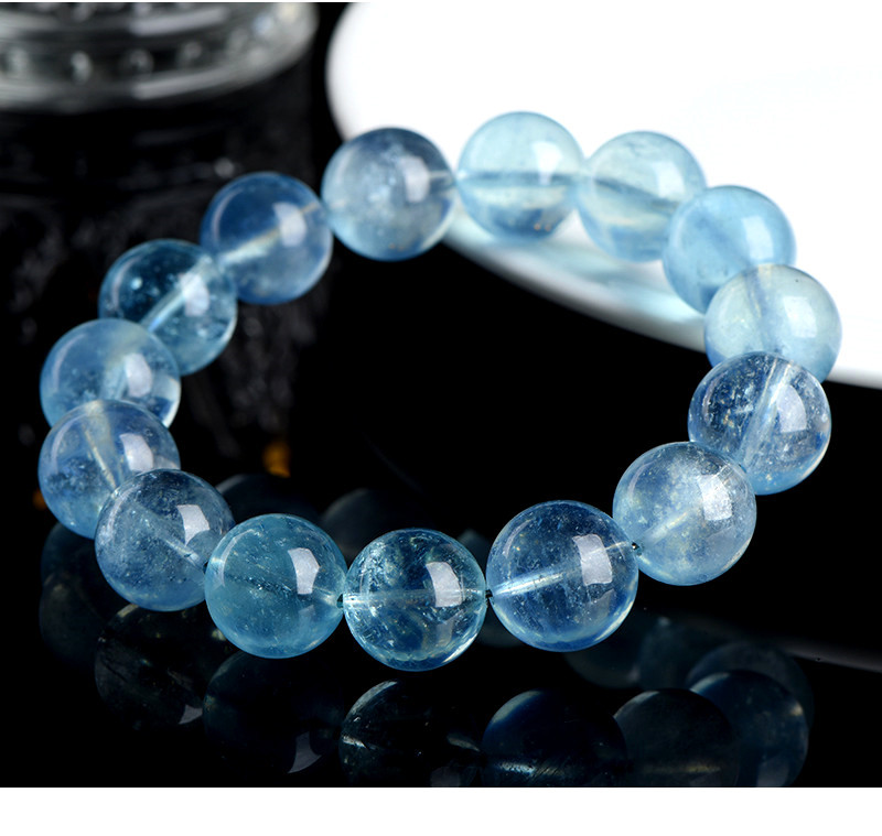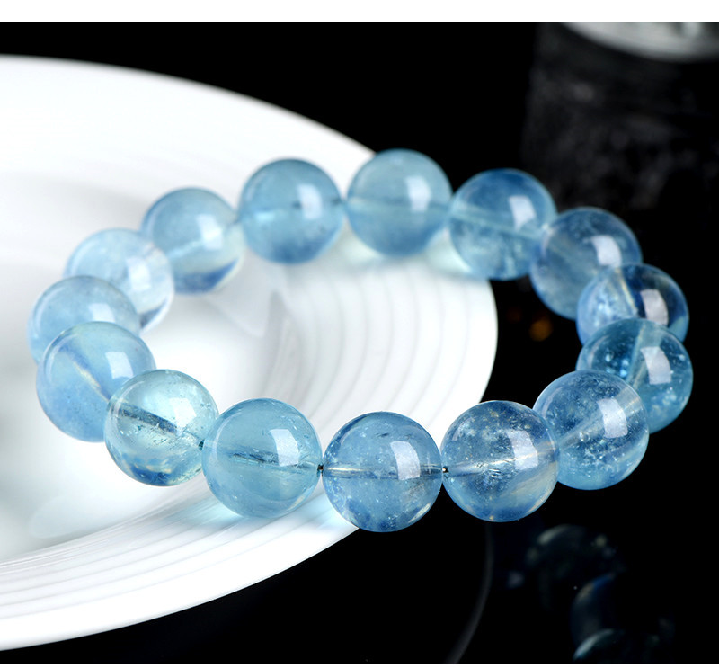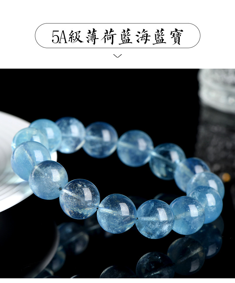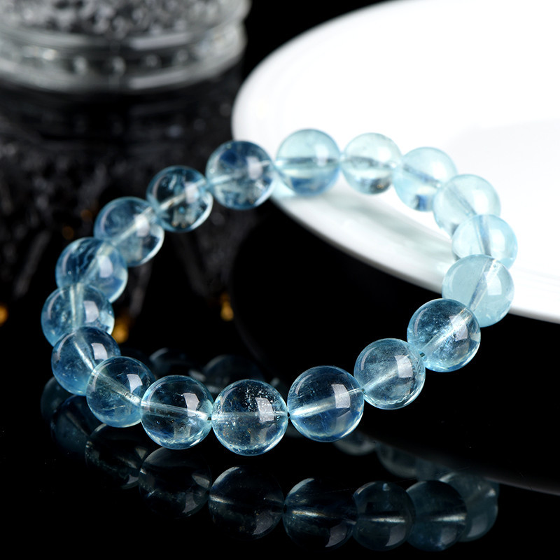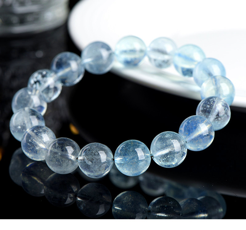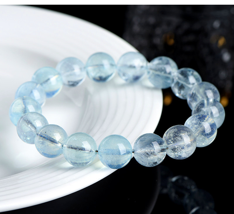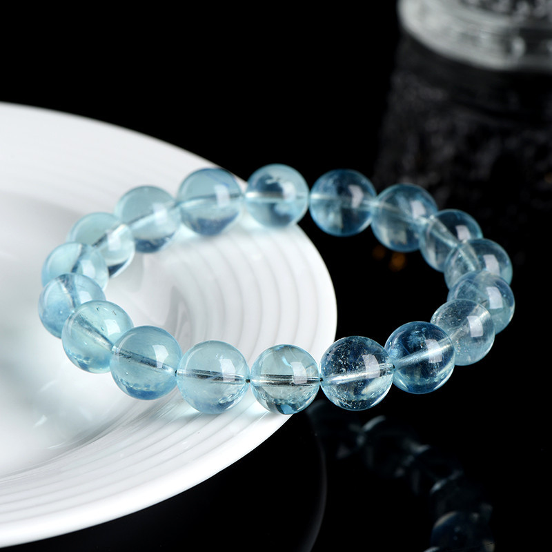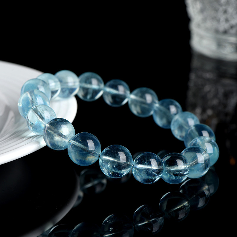 久雅水晶 天然7A级薄荷绿色海蓝宝圆珠手串 冰种绿色海蓝宝手链