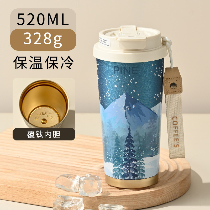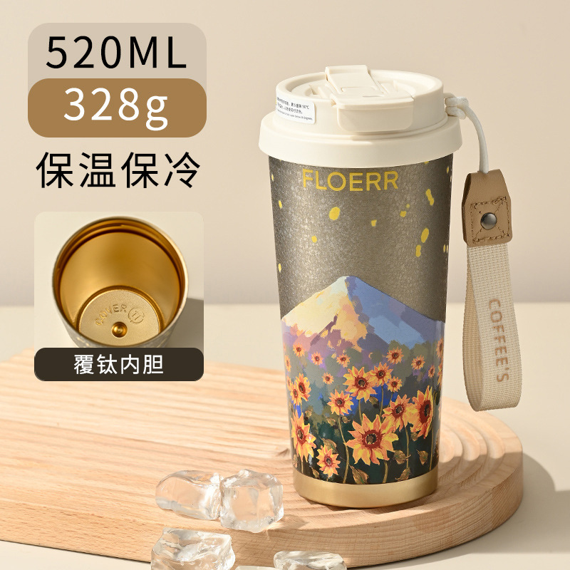 316材质铃兰花保温杯高颜值水杯吸管杯大容量带茶漏双饮咖啡杯