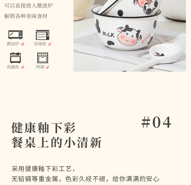 ins高颜值陶瓷米饭碗可爱卡通釉下彩家用沙拉碗饭碗儿童吃饭碗
