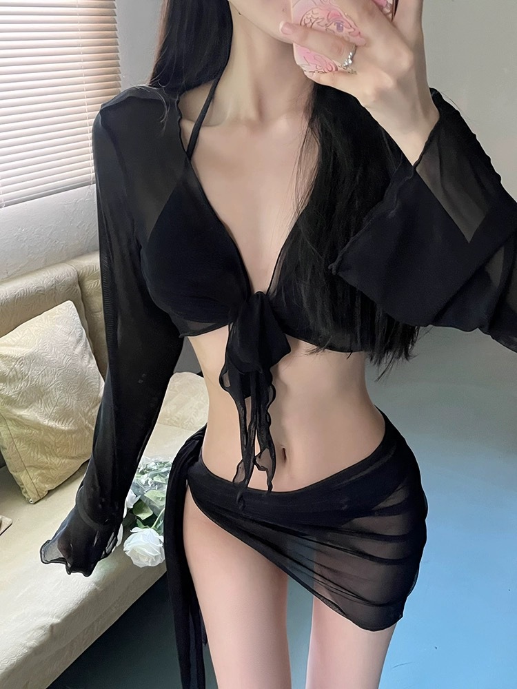 2024新款巴厘岛度假泰国红色比基尼四件套显瘦遮肉分体泳衣女显白