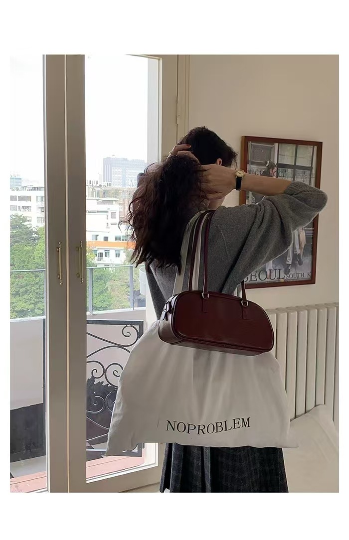 韩版秋冬新款气质女包复古油腊皮单肩腋下包法棍包