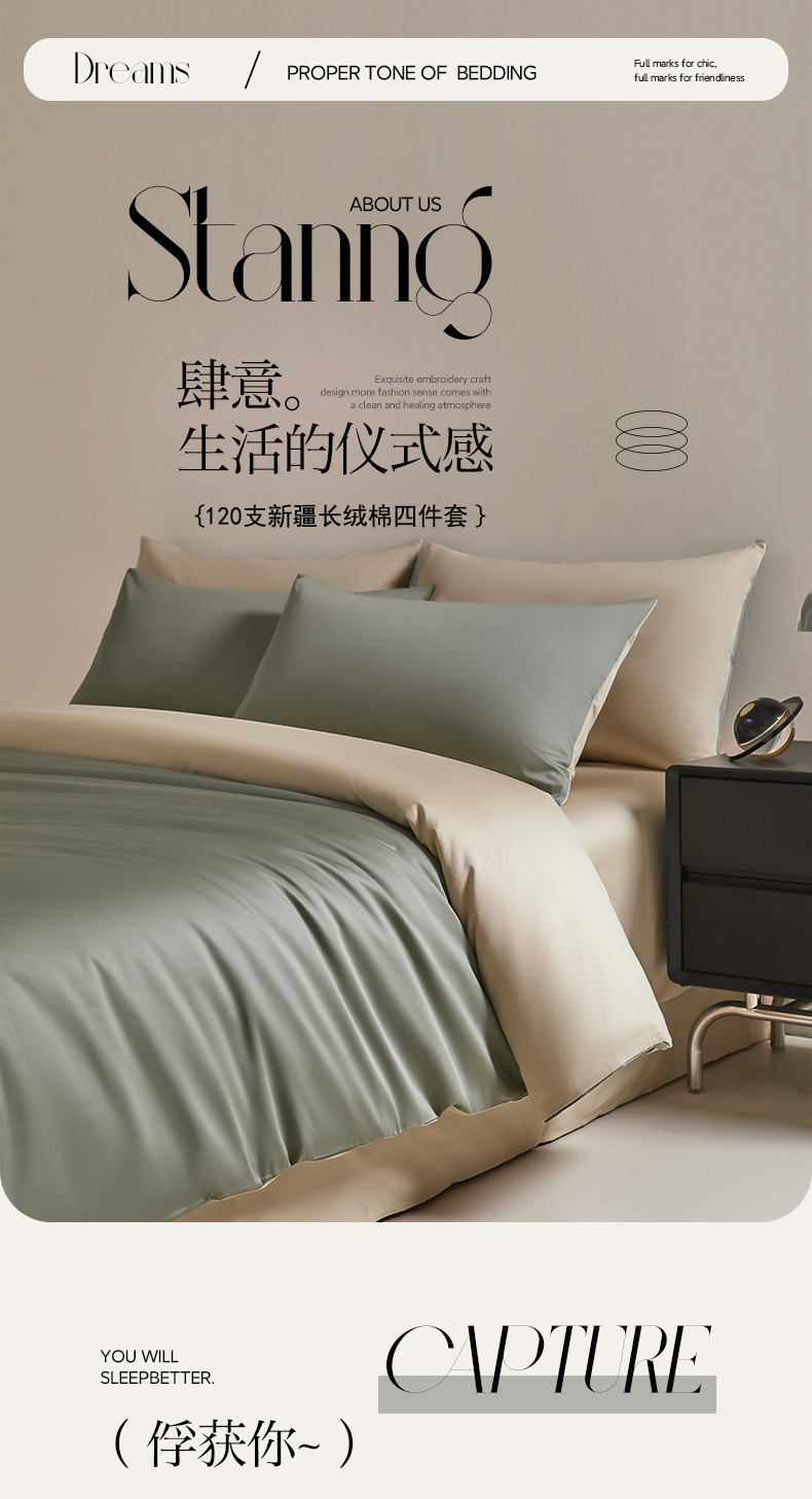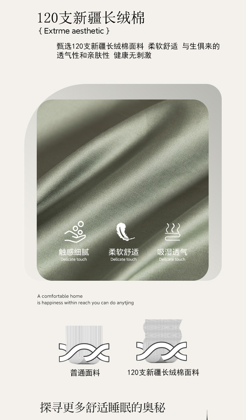 120支新疆长绒棉全棉四件套100纯棉被套床单高级感床笠款南通家纺