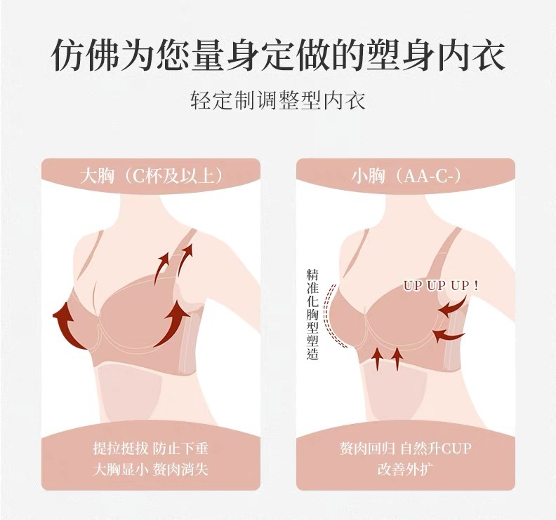广东汕头大码胸罩调整型薄款内衣女大胸显小聚拢收副乳防下垂文胸
