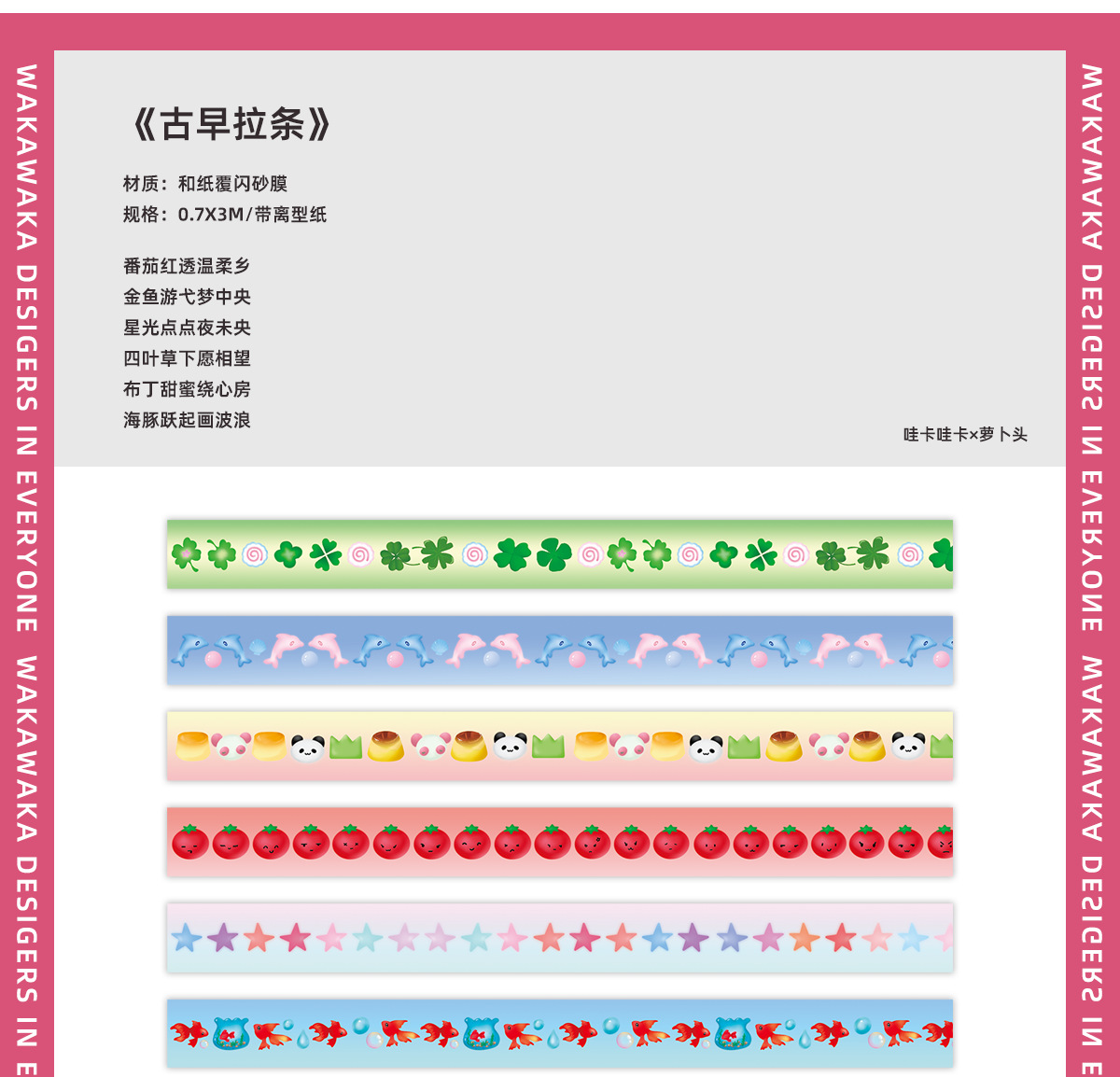 哇卡哇卡原创和纸胶带古早拉条可爱防水ins整卷分装手帐素材装饰
