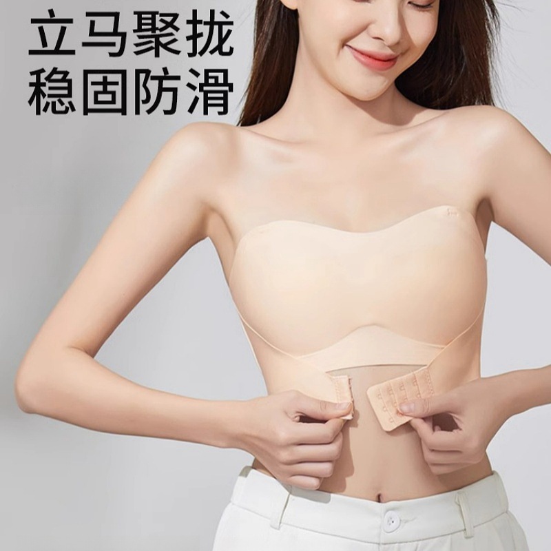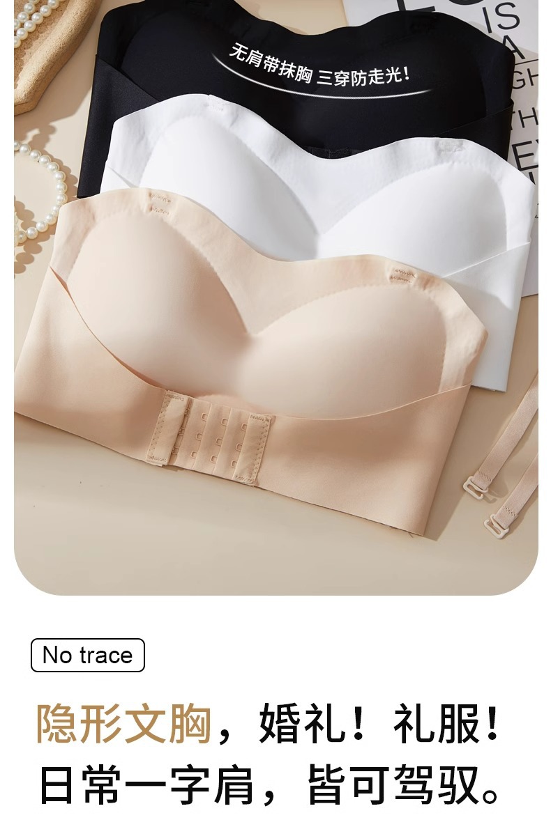 无肩带内衣女聚拢小胸防滑裹胸不掉无痕前扣式抹胸隐形美背文胸罩