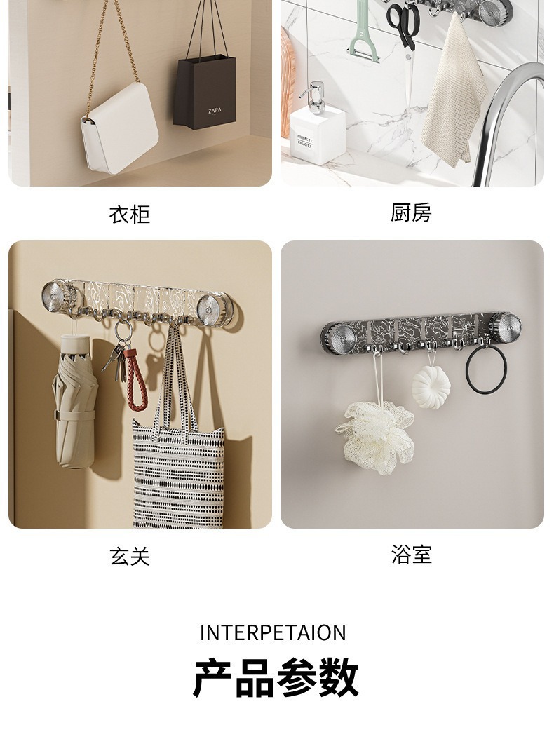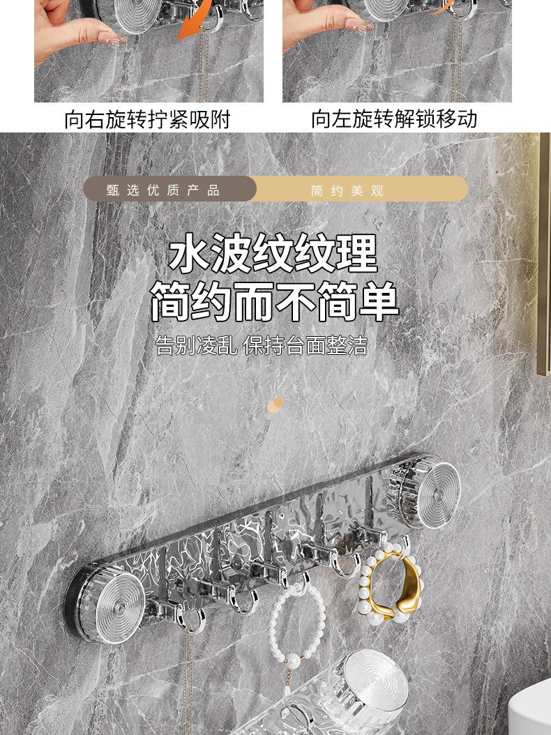旋转吸盘波纹连排挂钩免打孔强力承重浴室卫生间门后墙壁无痕粘钩