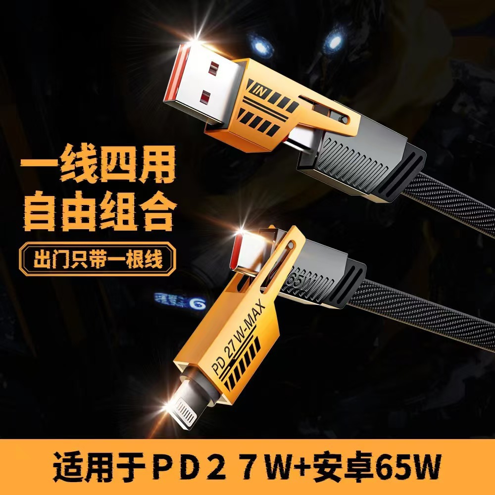 二拖二机甲四合一充电线适用苹果华为小米vivo快充手机数据线