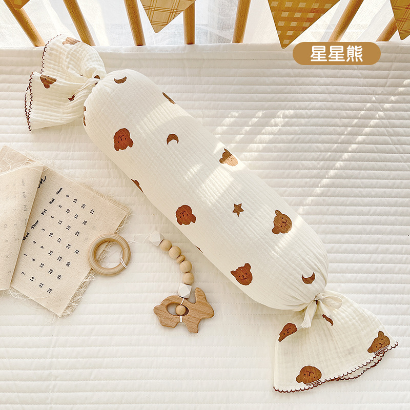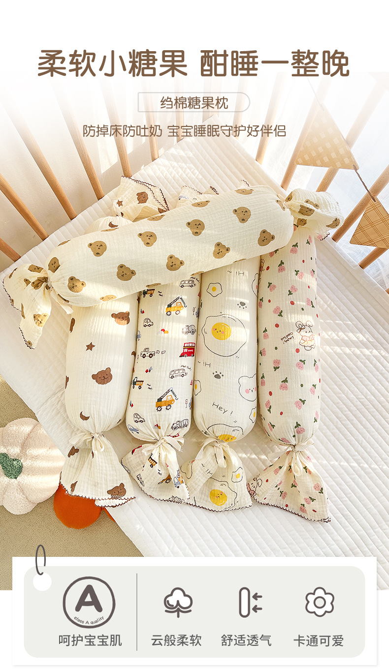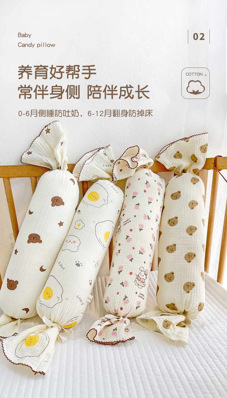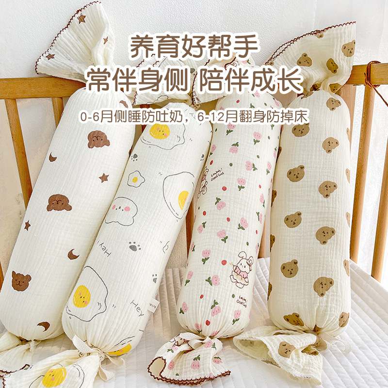 婴儿糖果枕圆柱形枕头长条抱枕防呛奶夹腿侧睡纱布枕头可拆洗挡枕