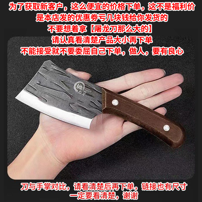这款刀设计的初衷,是方便开鱼肚,刮鱼鳞的,因为切个鱼,用太大的刀,第一会累,第二不方便,所以整个产品,较小,请购买的各位老板,认真看清楚【刀与手掌的对比图】【刀具的尺寸图】为了避免不必要的误会,请一定看清楚后再下单。
