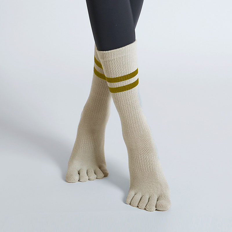 专业瑜伽袜中筒全棉女士五指袜分趾防滑地板袜普拉提袜