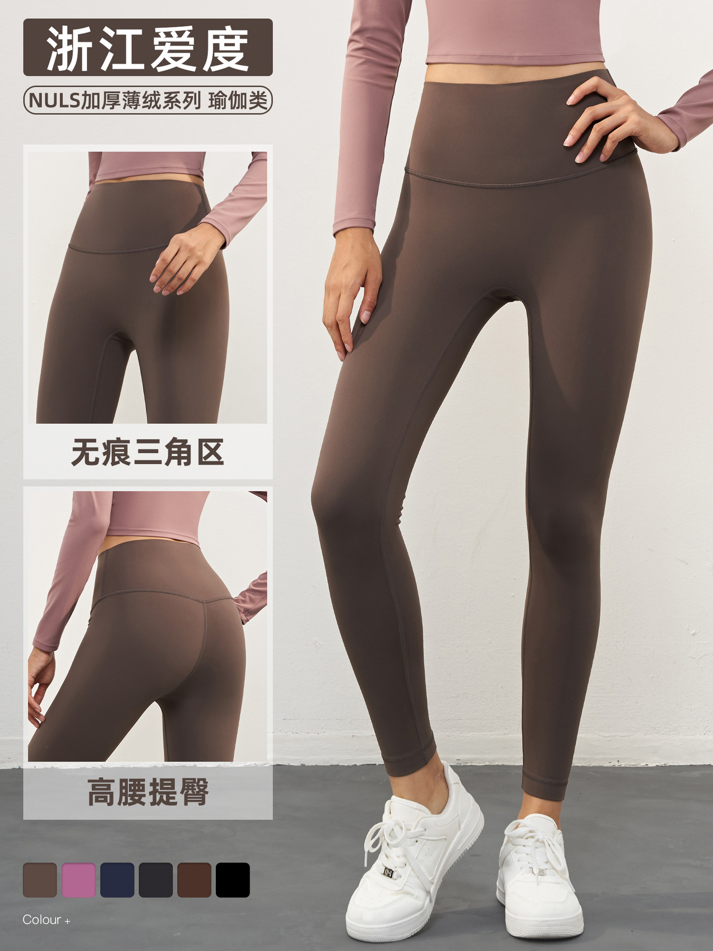 Nuls加厚薄绒裸感秋冬瑜伽裤女高腰无痕运动紧身裤蜜桃提臀健身裤